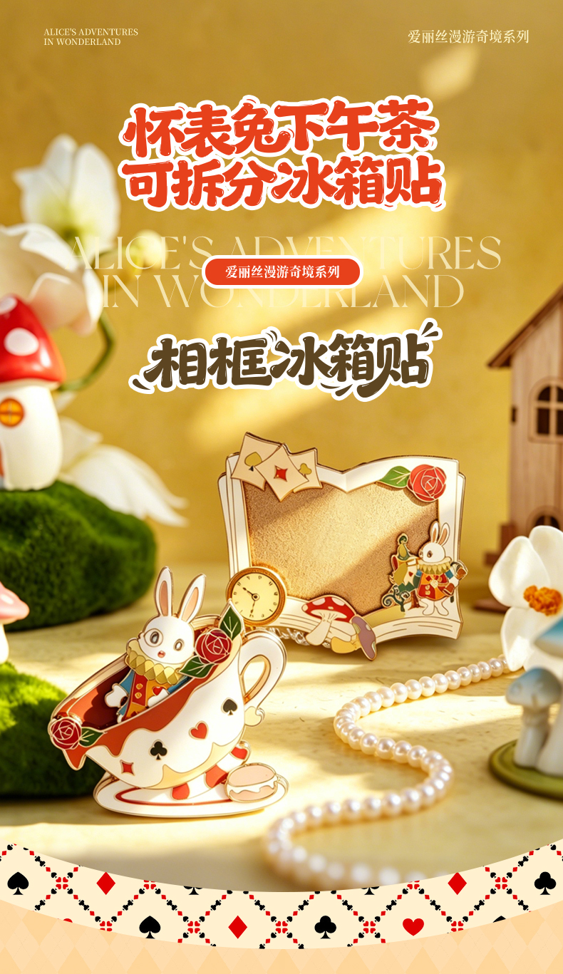大英博物馆 爱丽丝漫游奇境系列 怀表兔下午茶可拆分冰箱贴/相框冰箱贴
