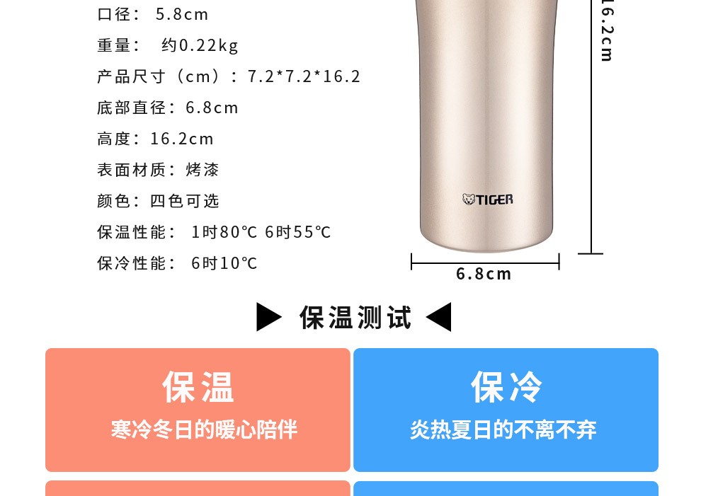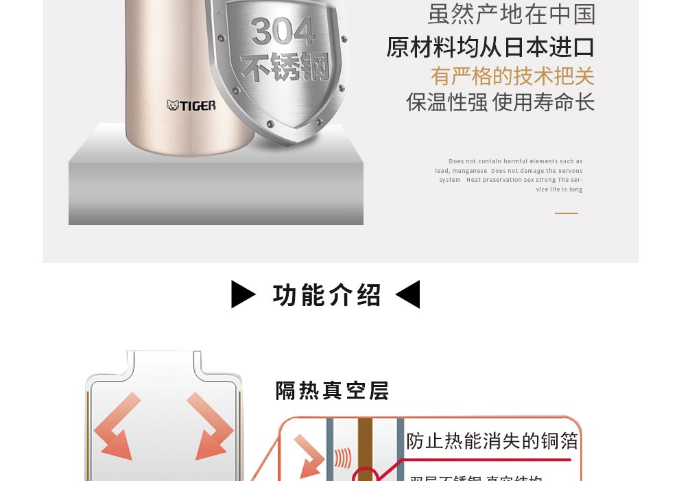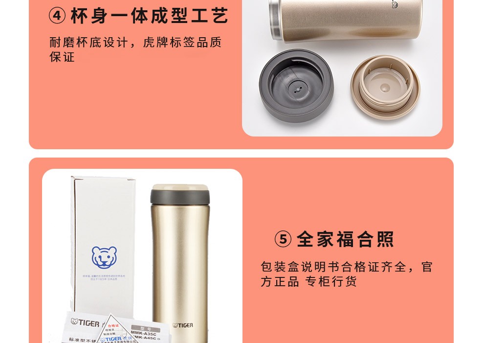 虎牌 真空不锈钢办公杯 男女时尚水杯保温杯 MMK-A35C