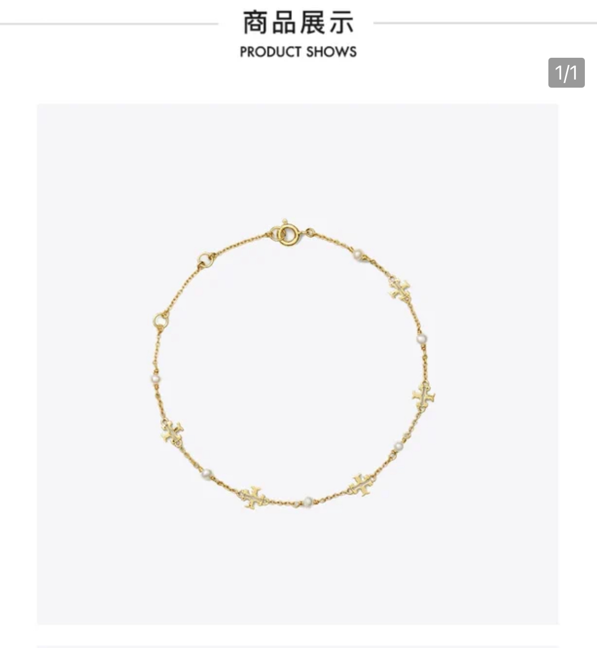 TORY BURCH 汤丽柏琦 KIRA 珍珠链条手链 136788精致金色链条,与斜面双 TLogo 相映生辉