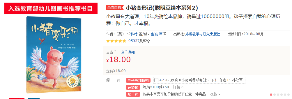 比如智慧成长大礼包中的《小猪变形记》,就是【教育部幼儿园图画书推荐书目】,累计单册销售超过一千万册!