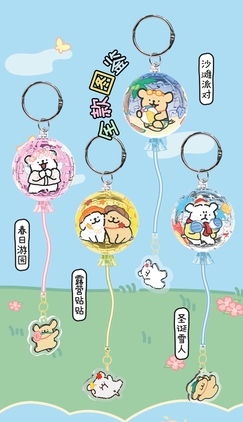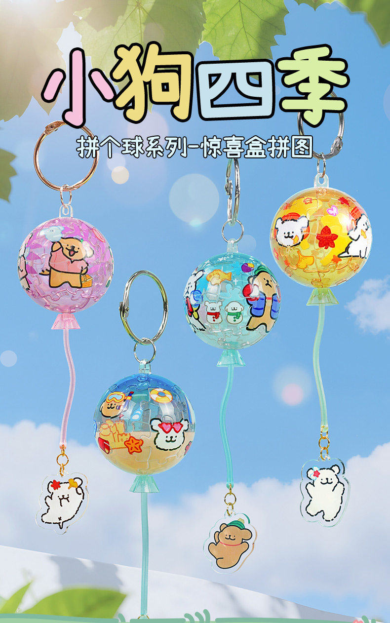 TOi图益-线条小狗-拼个球系列-小狗四季-拼图盲盒(拍4发端盒)