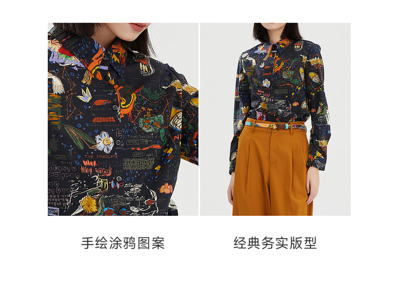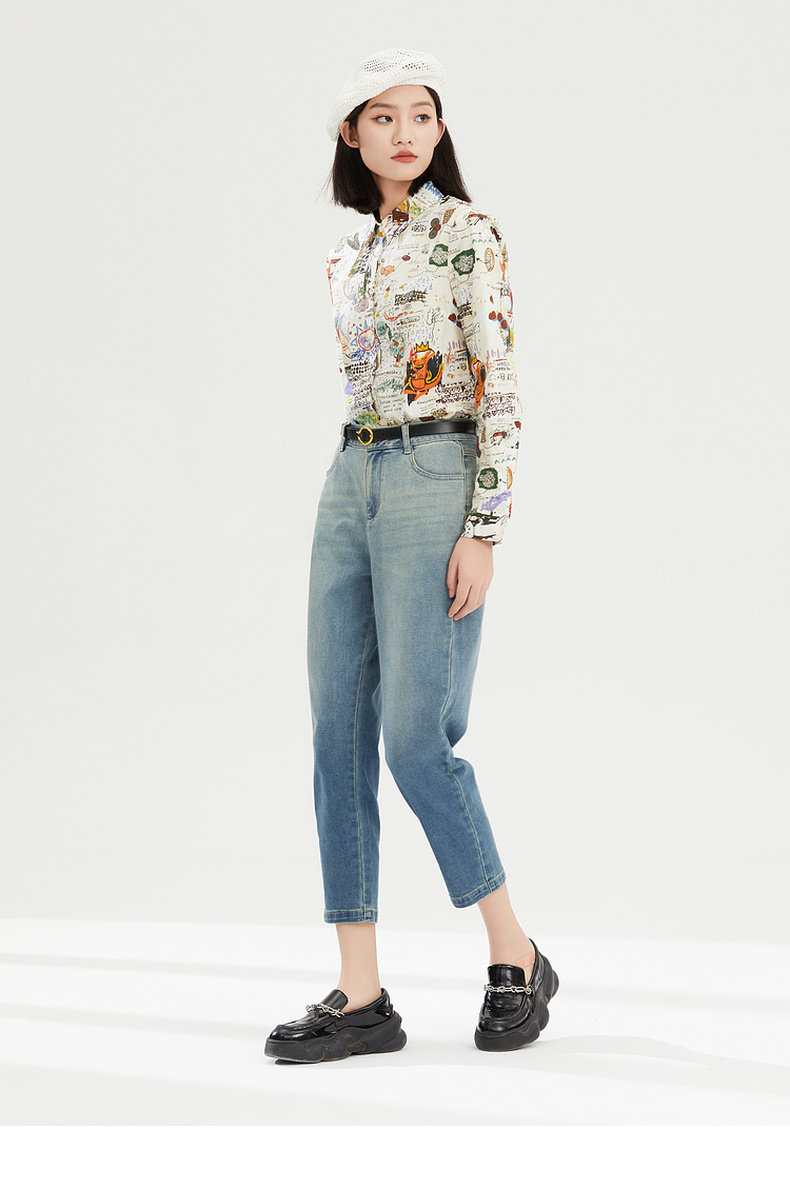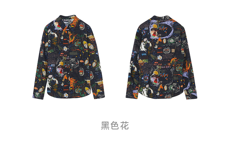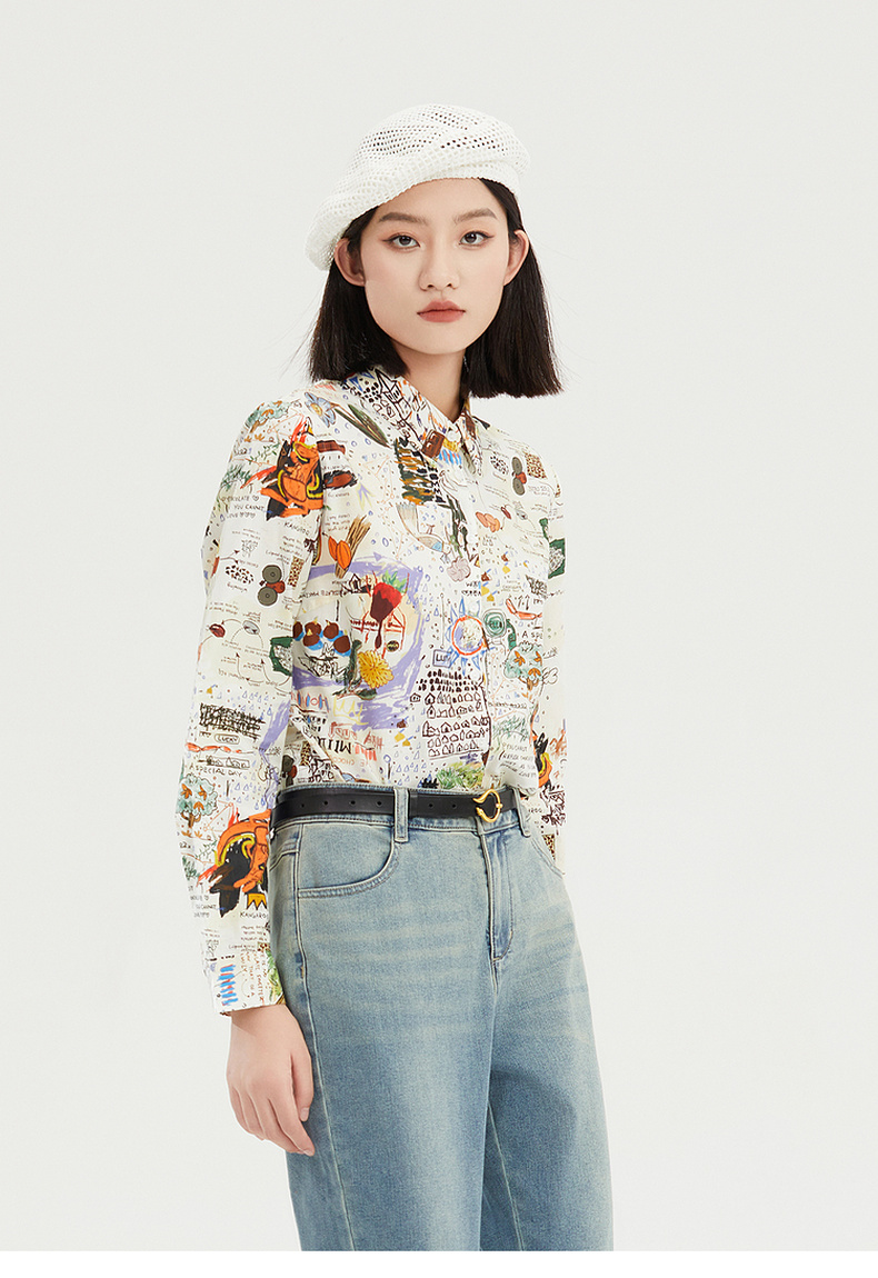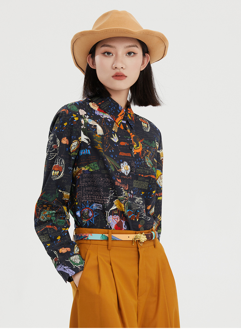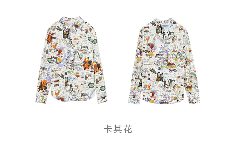 谜底花色衬衫长袖女2023秋季新款复古百搭修身纯棉衬衣239MC7319