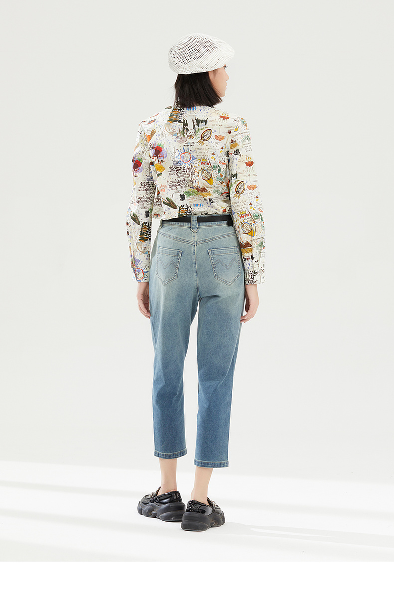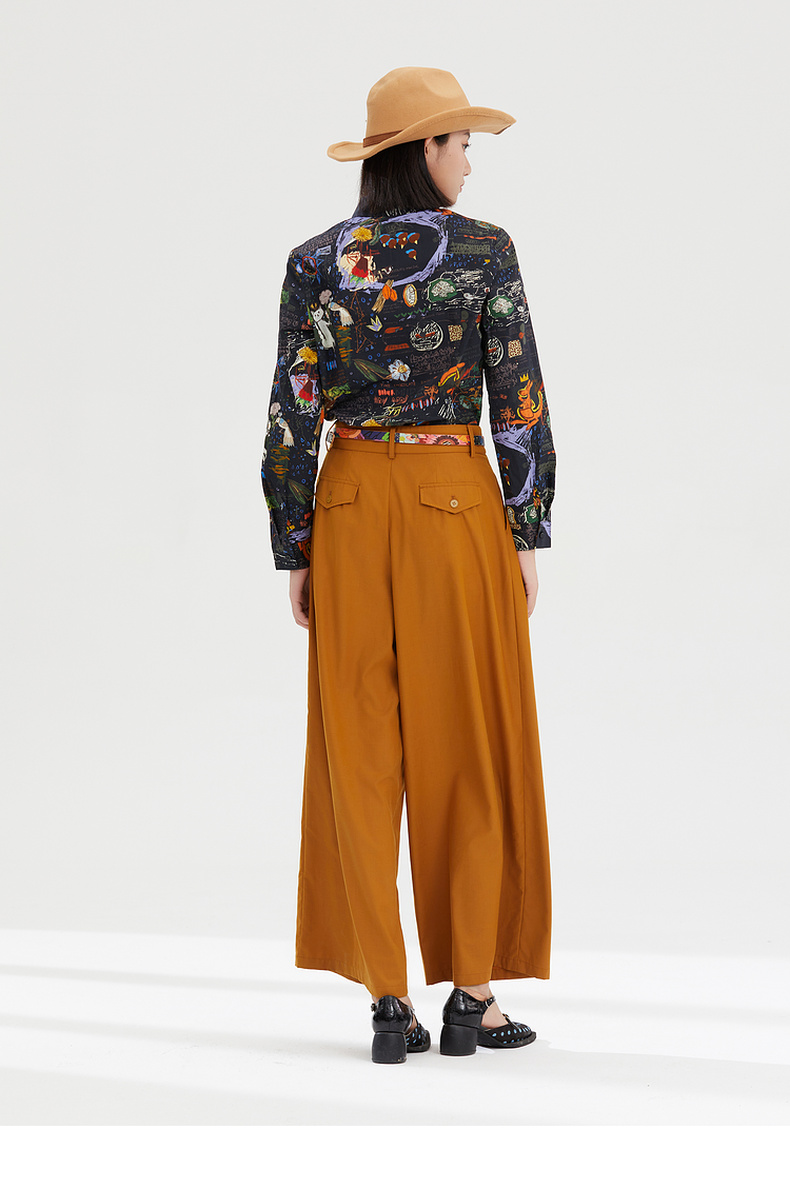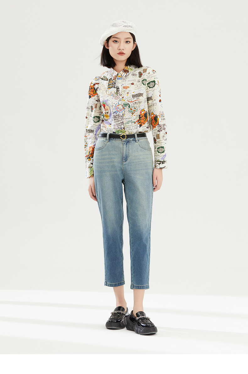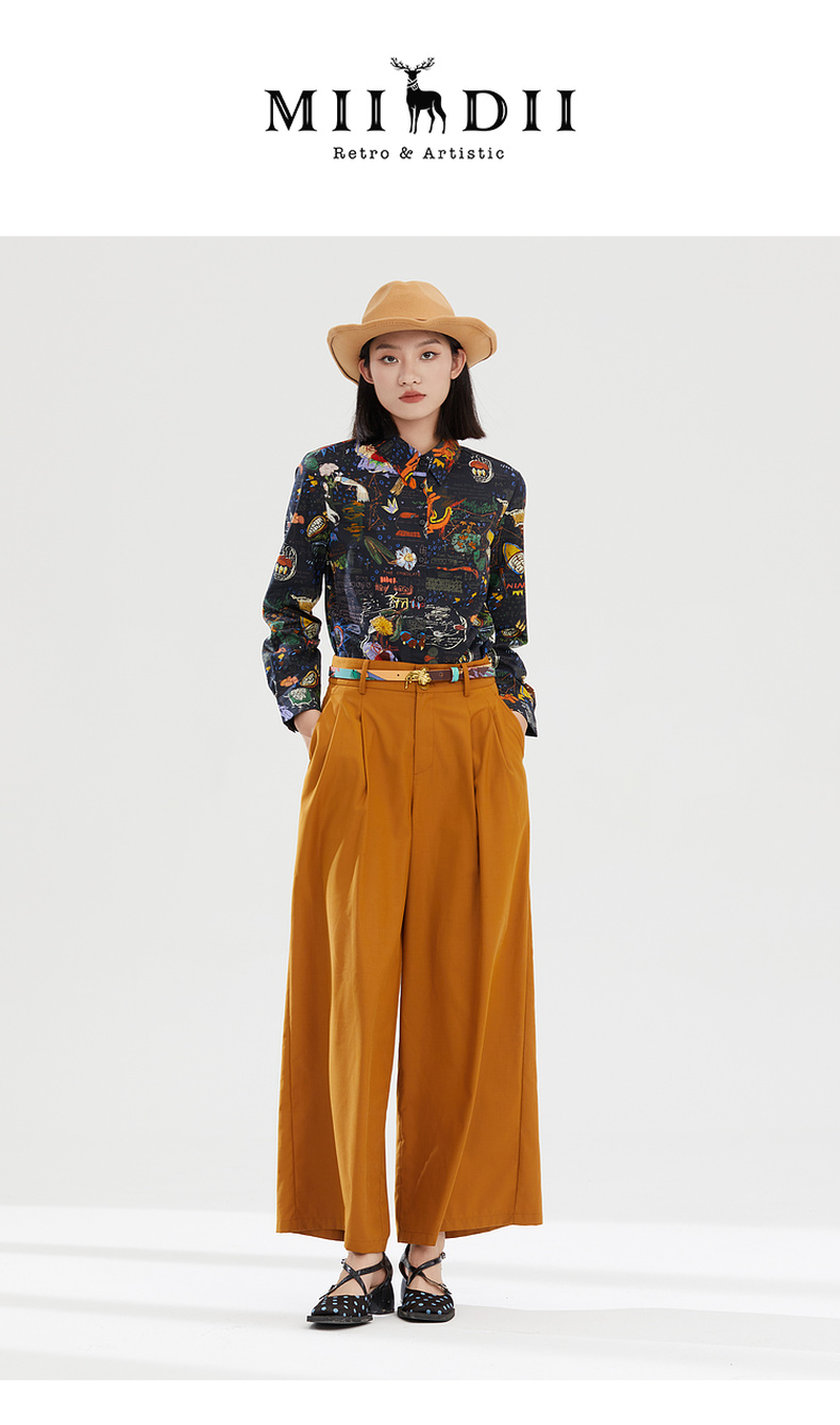 谜底花色衬衫长袖女2023秋季新款复古百搭修身纯棉衬衣239MC7319