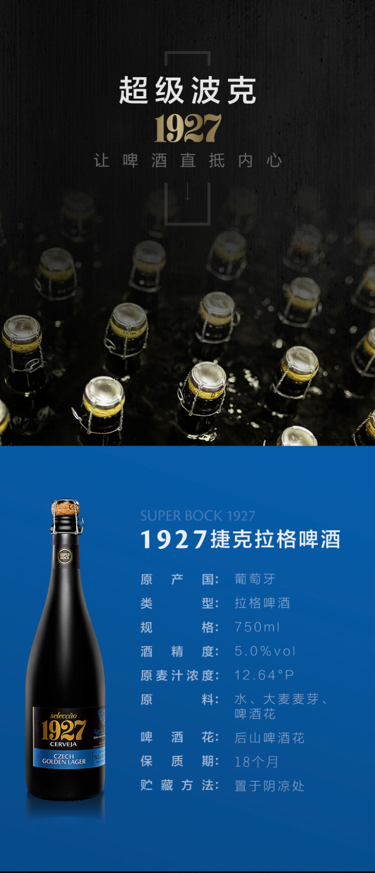 【臻选好酒】超级波克Super Bock 1927捷克拉格精酿啤酒750ml*2瓶装
