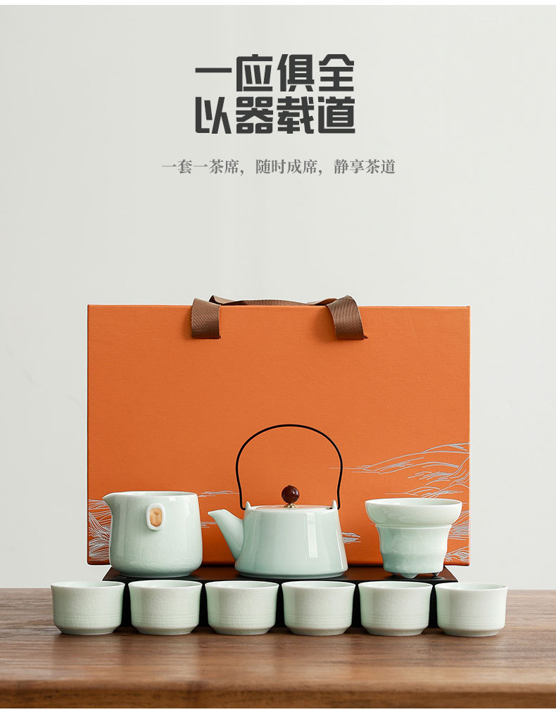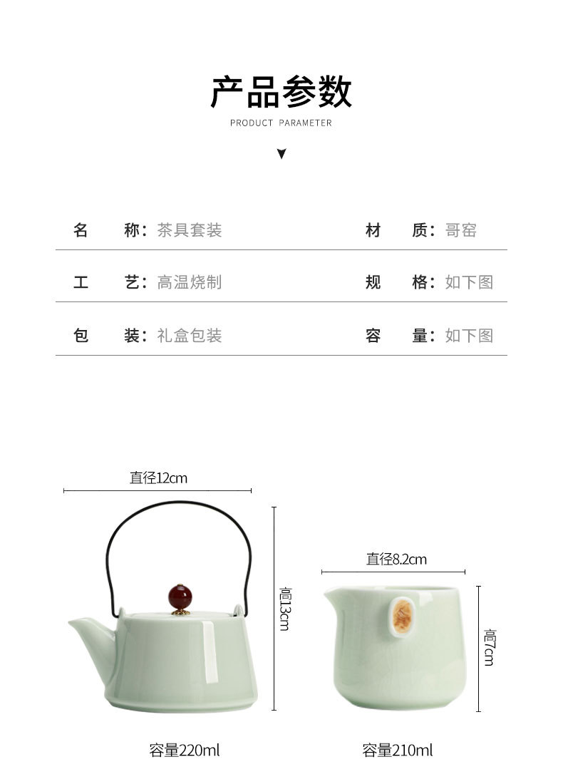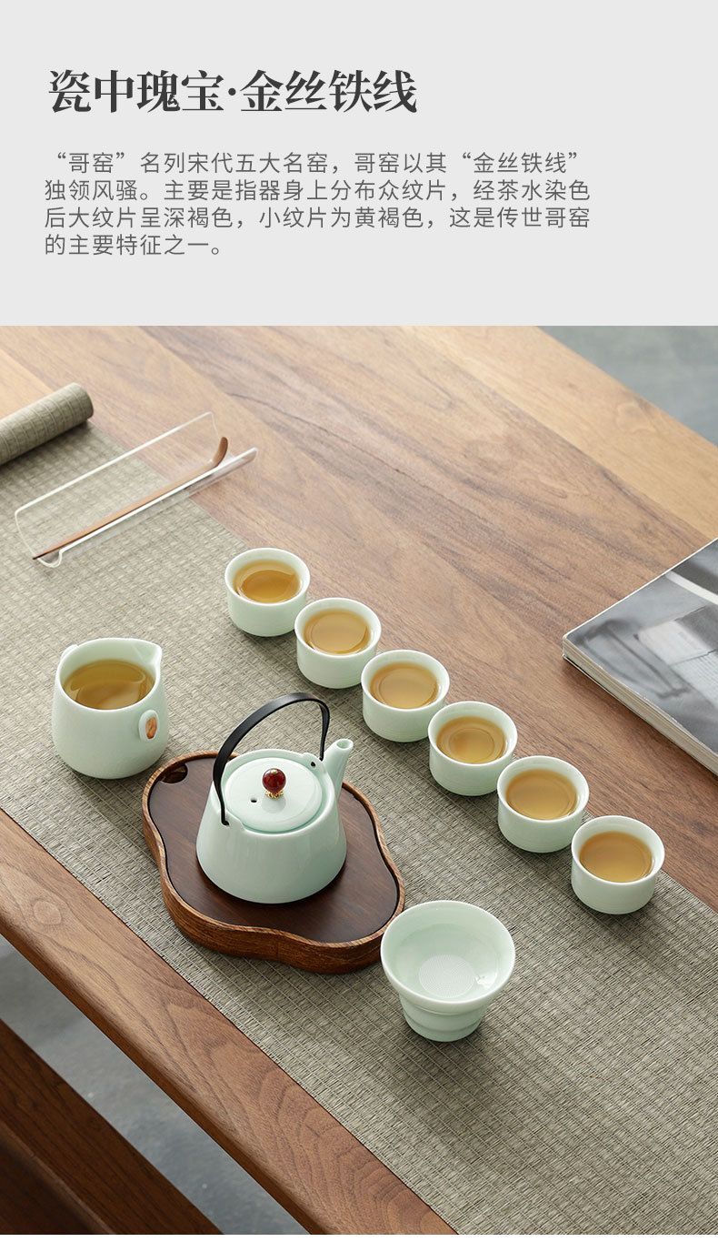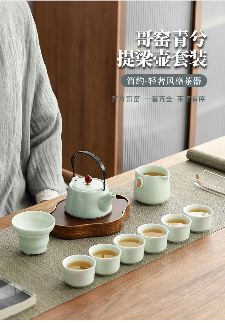 【哥窑提梁壶功夫茶具套装】家用陶瓷泡茶壶茶杯 送朋友长辈活动伴手礼品