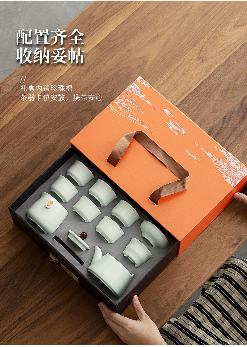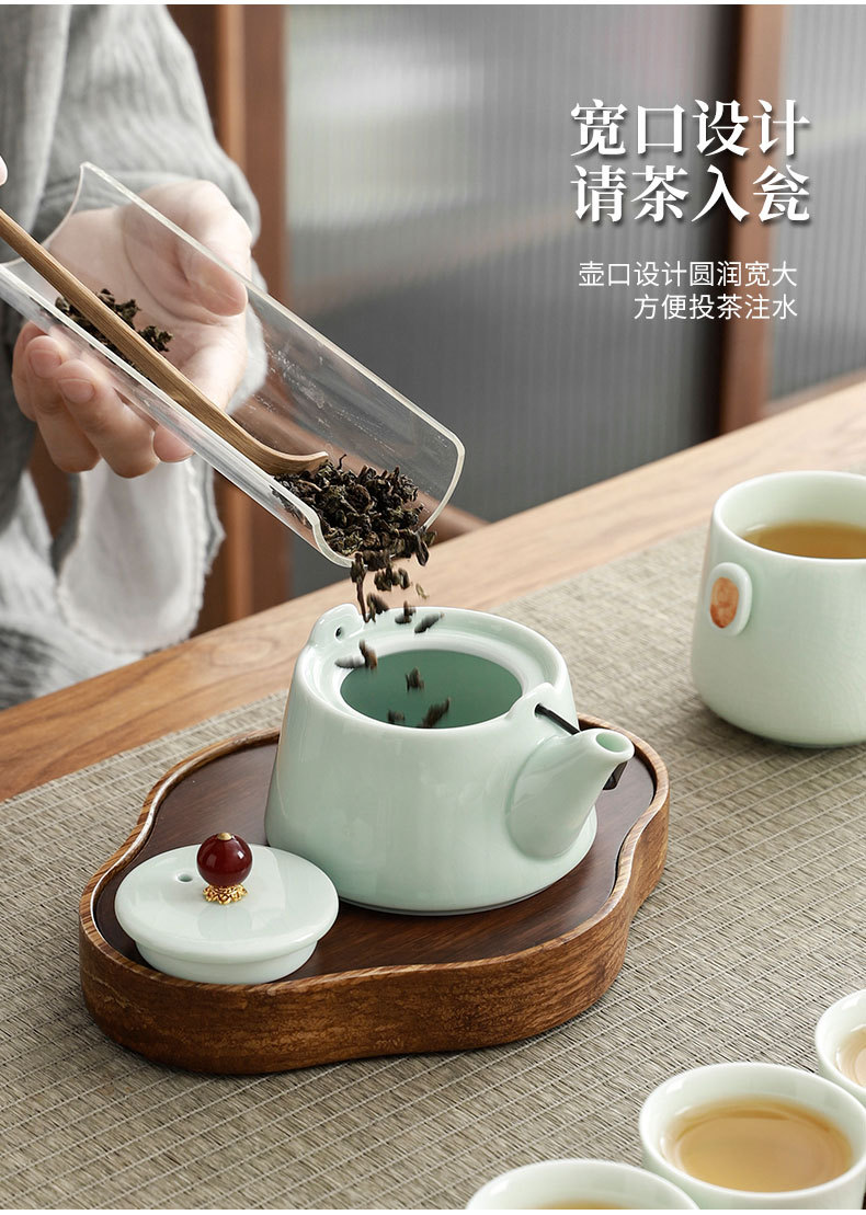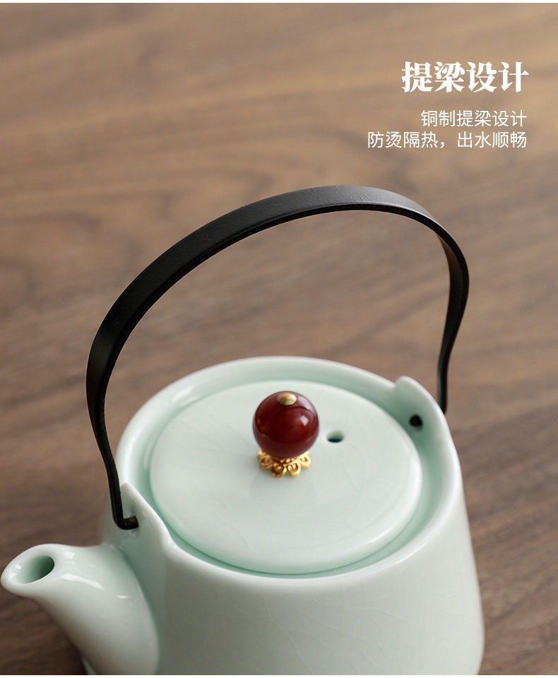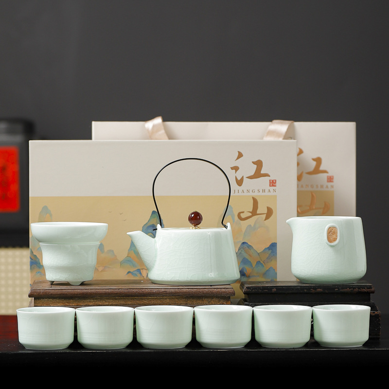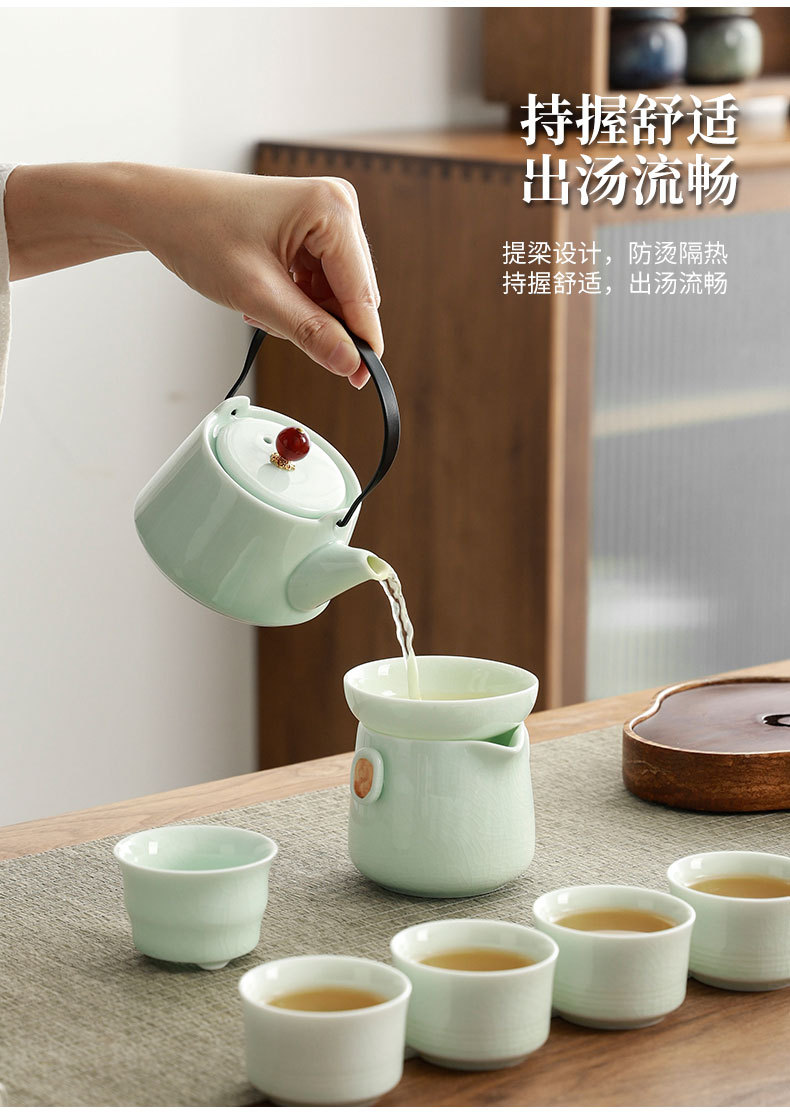 【哥窑提梁壶功夫茶具套装】家用陶瓷泡茶壶茶杯 送朋友长辈活动伴手礼品