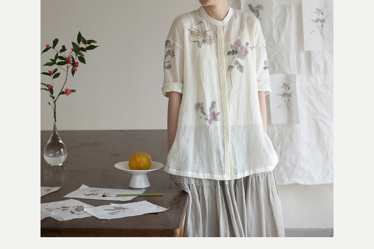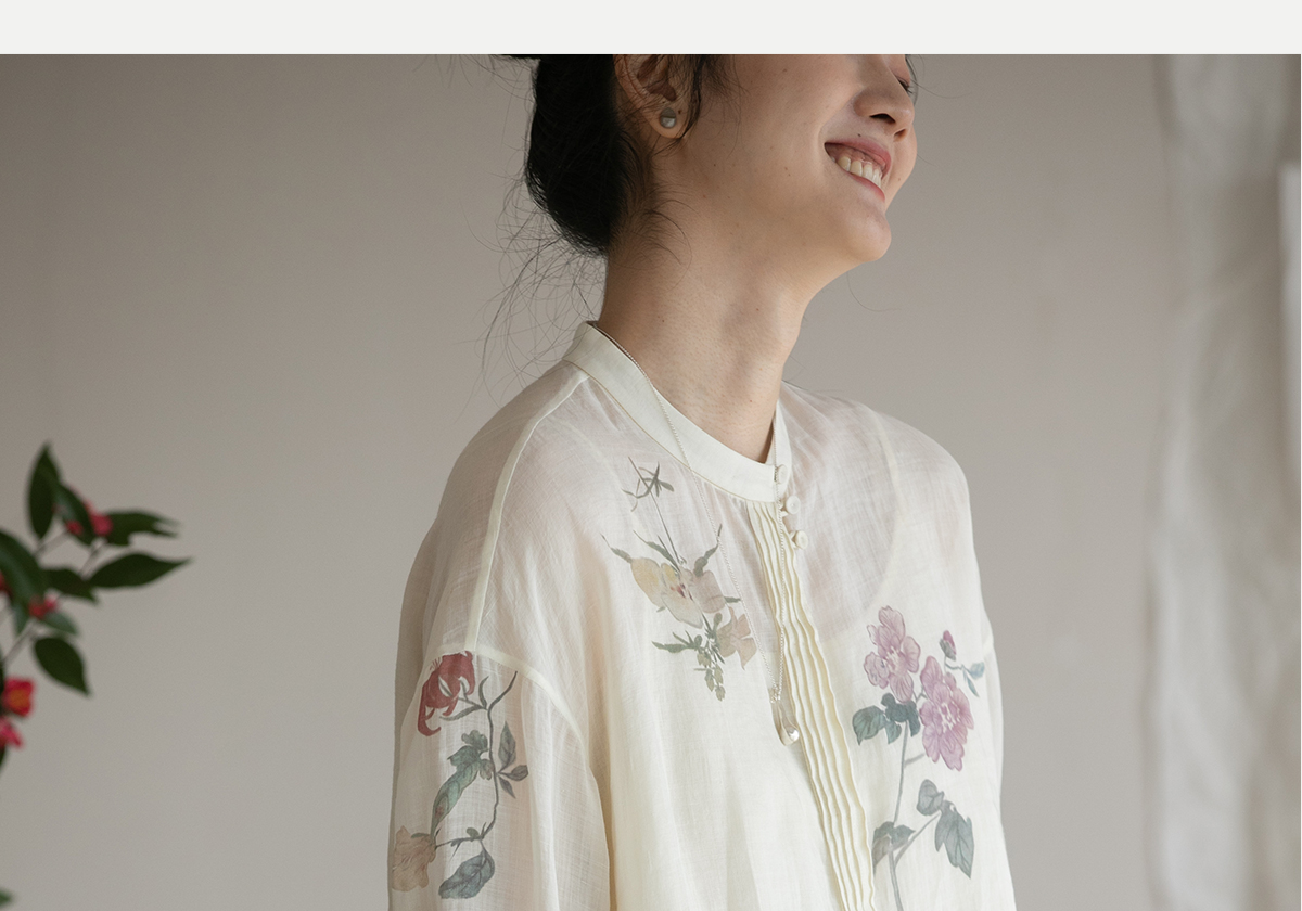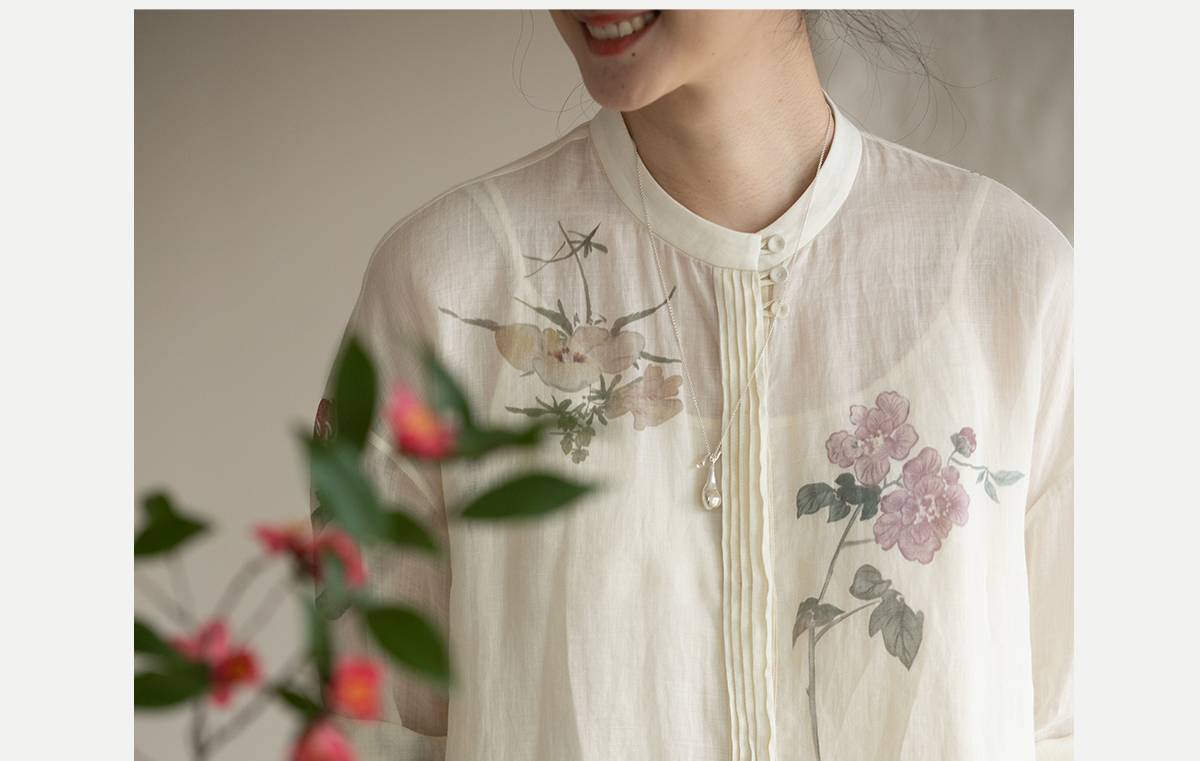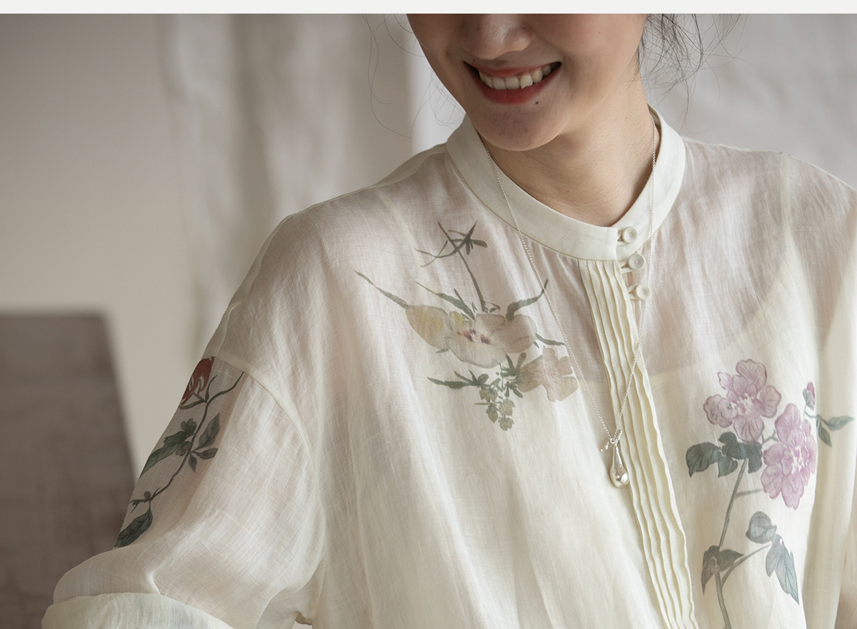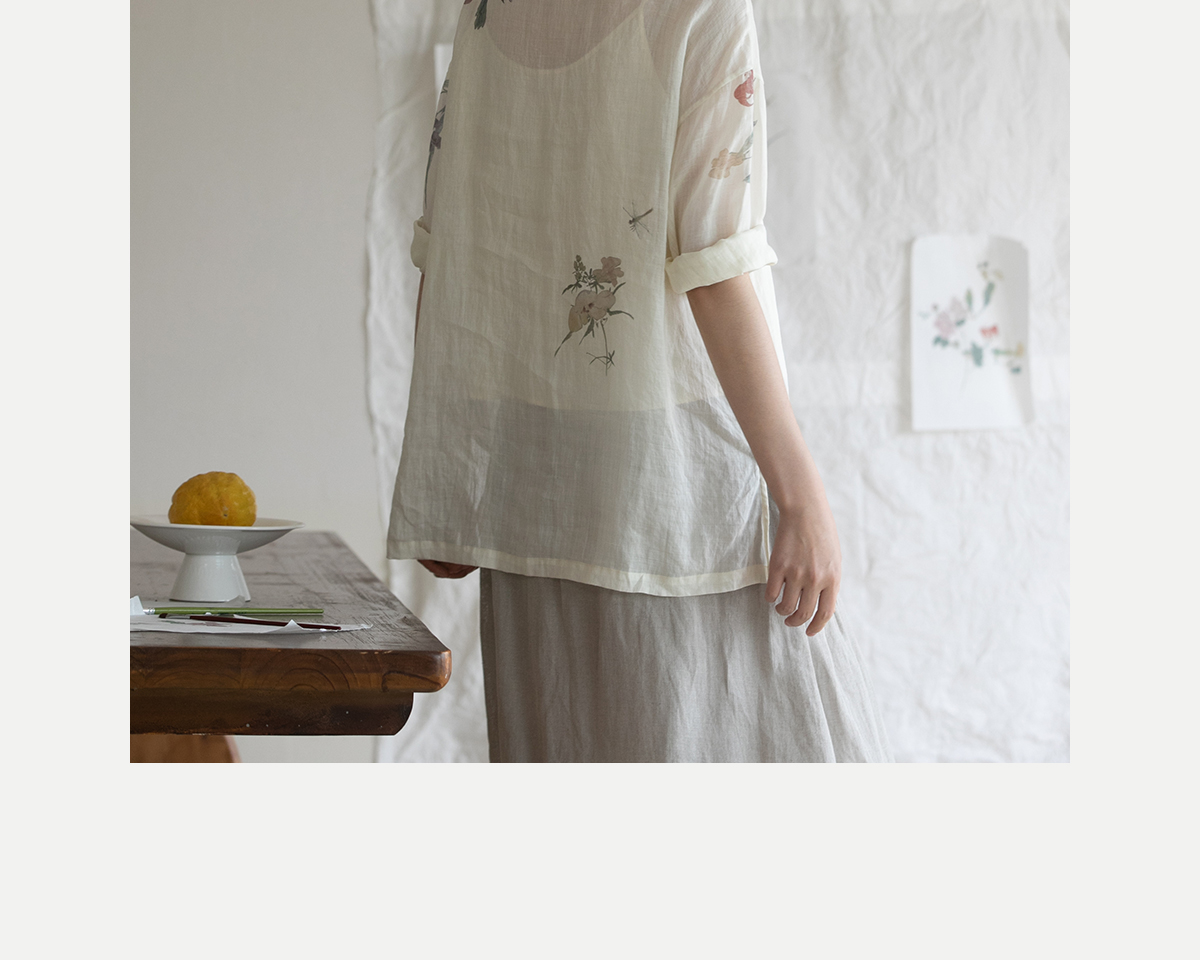 牧衣游原创 手工刺绣苎麻衬衫新款细腻轻薄百搭国画文艺衬衣 绿野