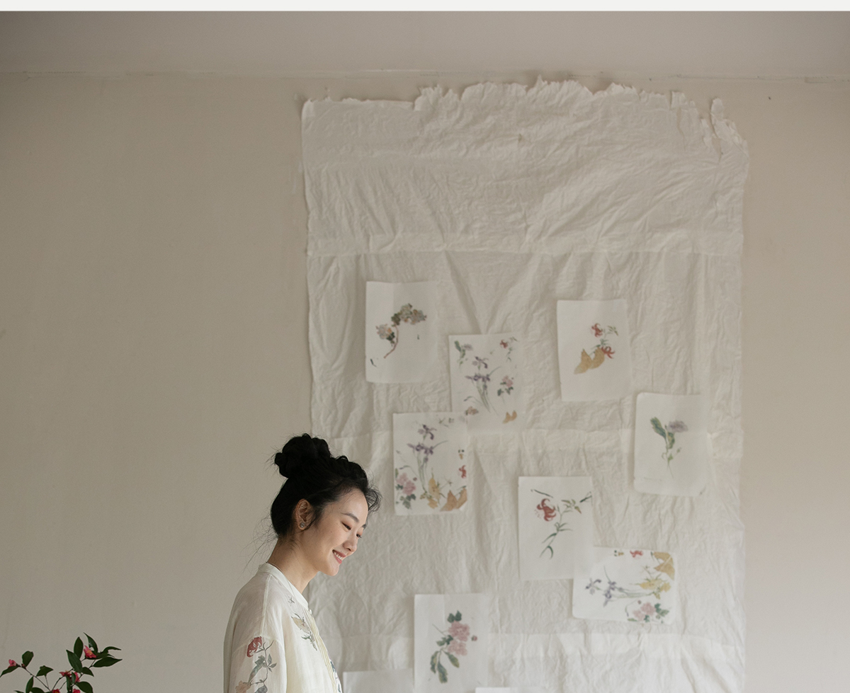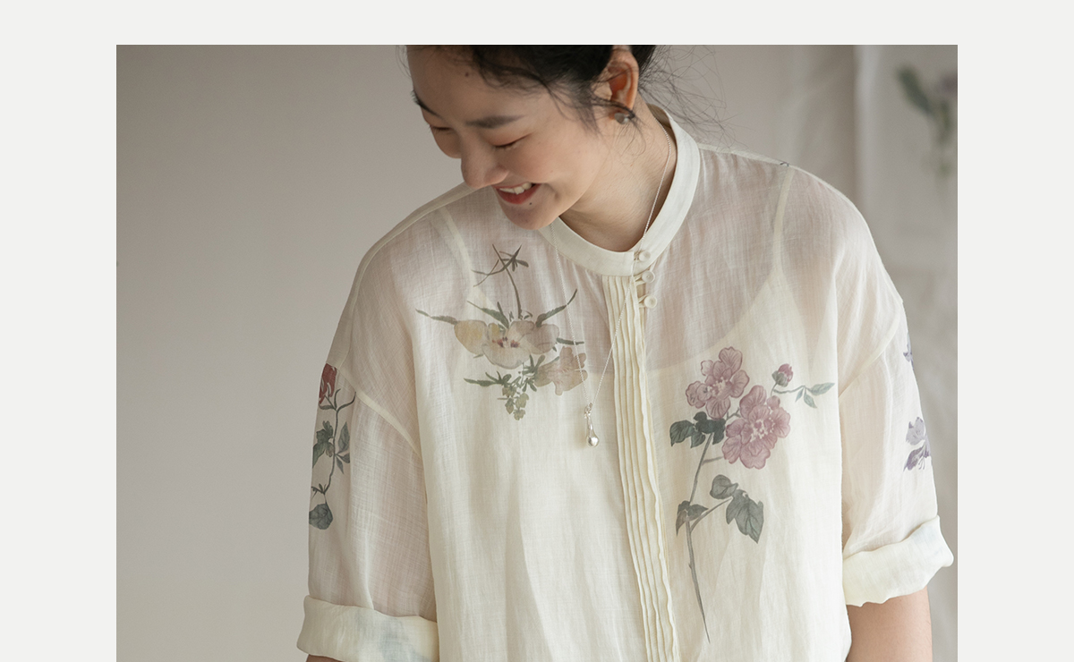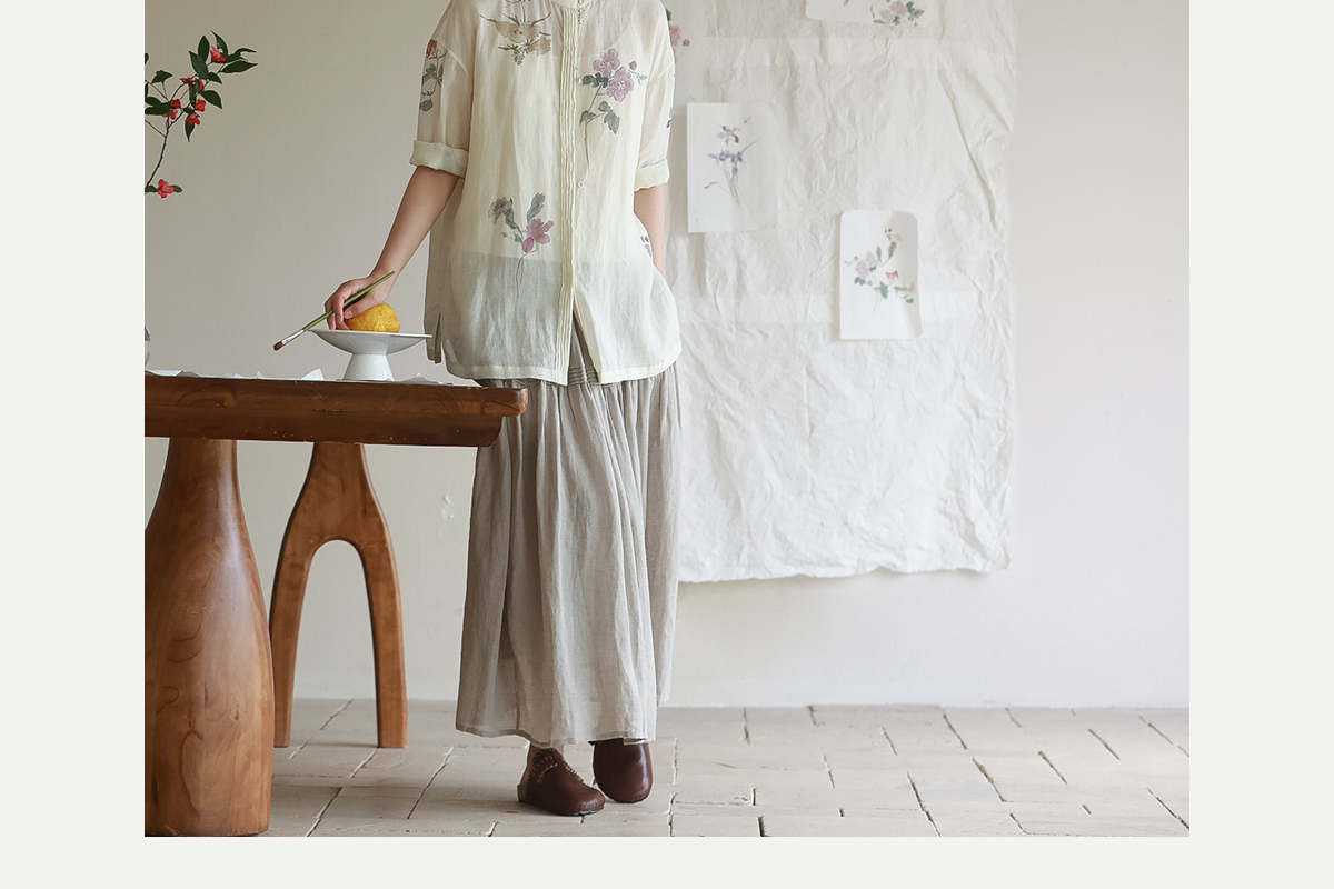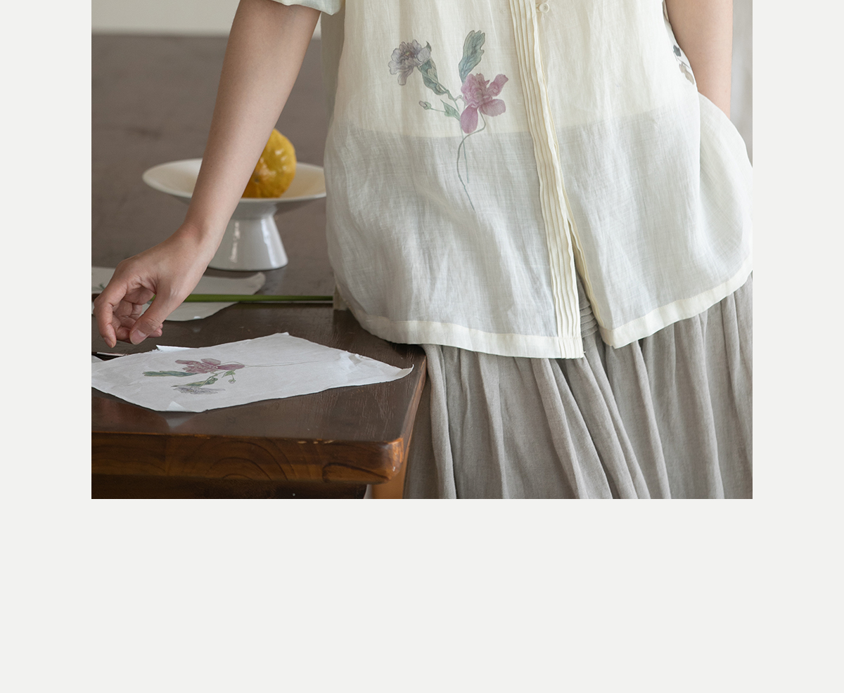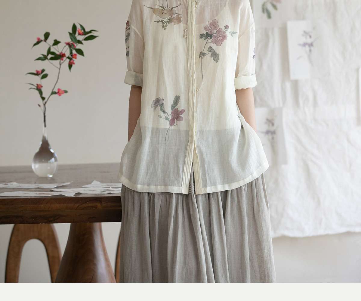 牧衣游原创 手工刺绣苎麻衬衫新款细腻轻薄百搭国画文艺衬衣 绿野
