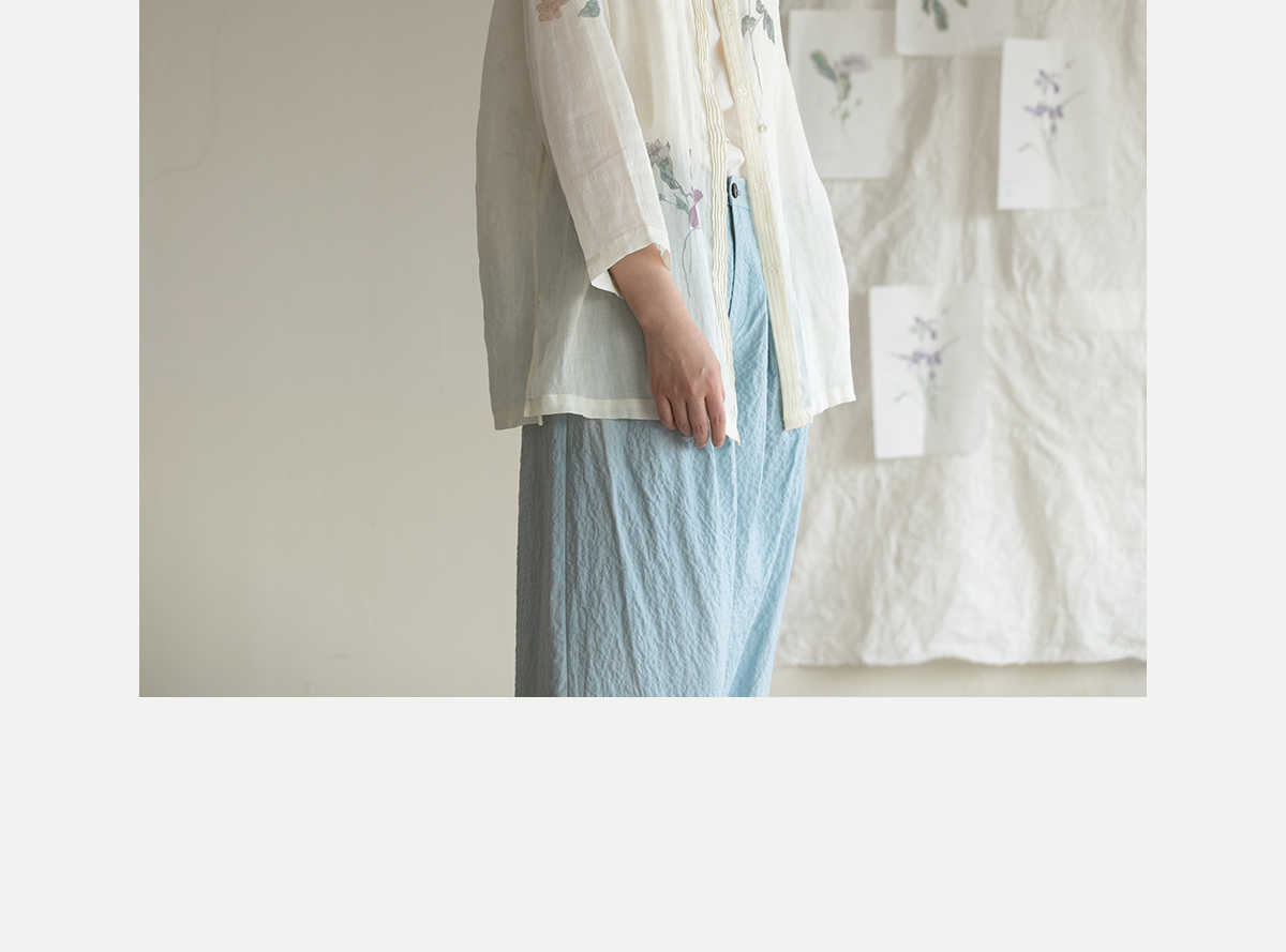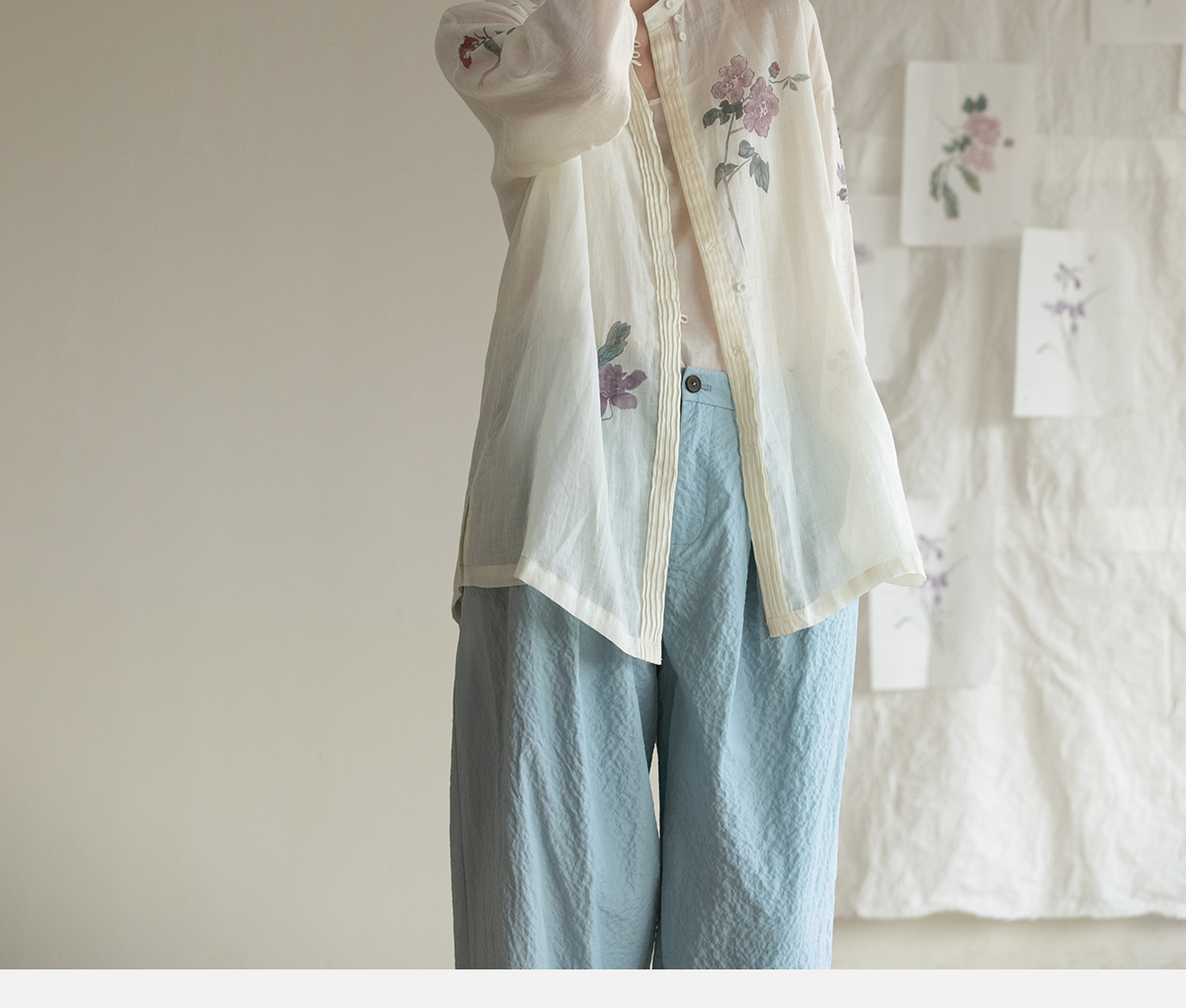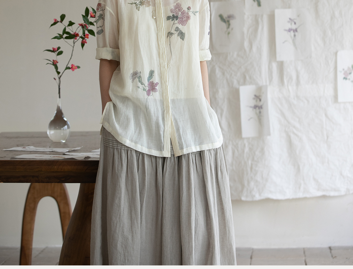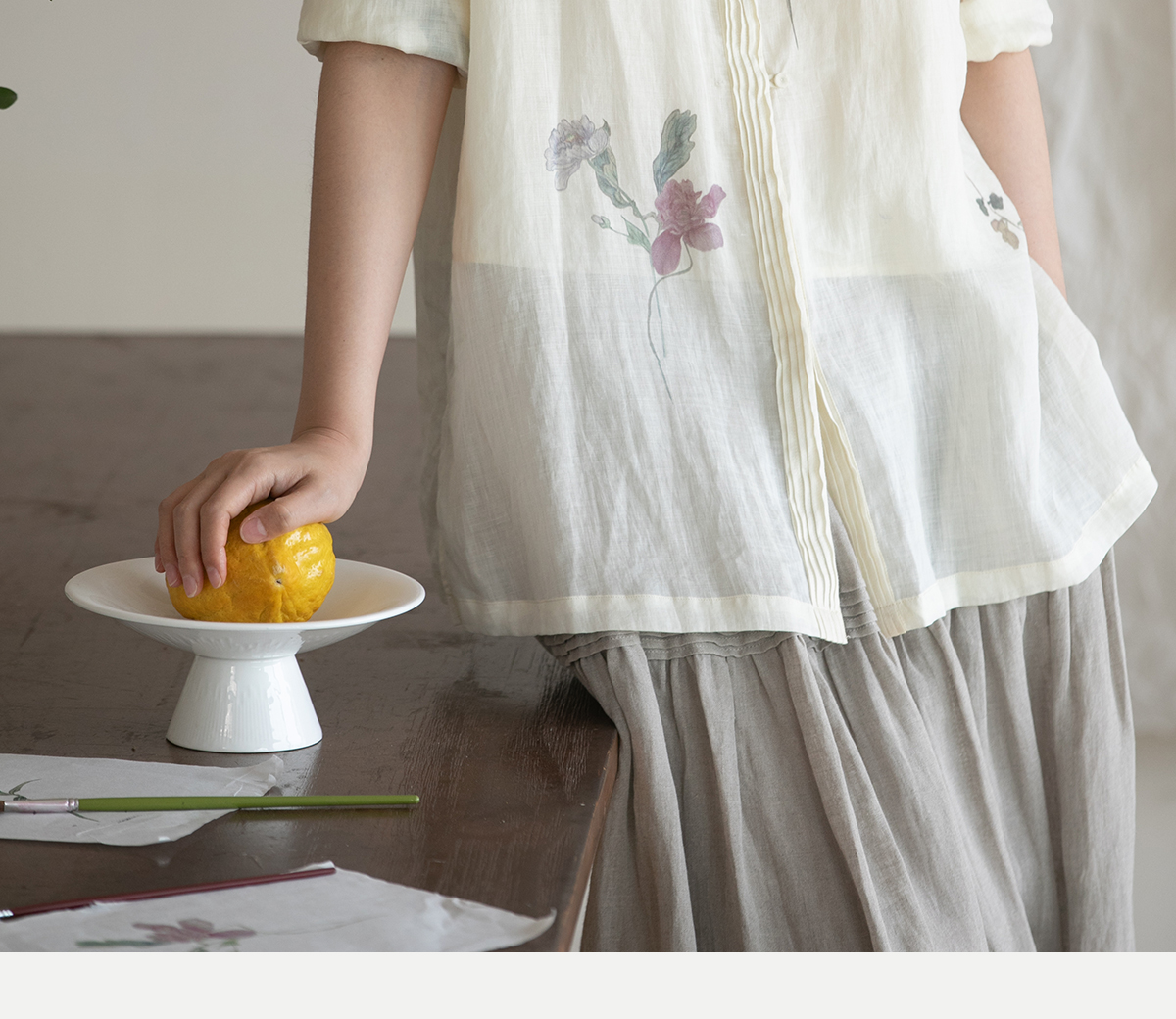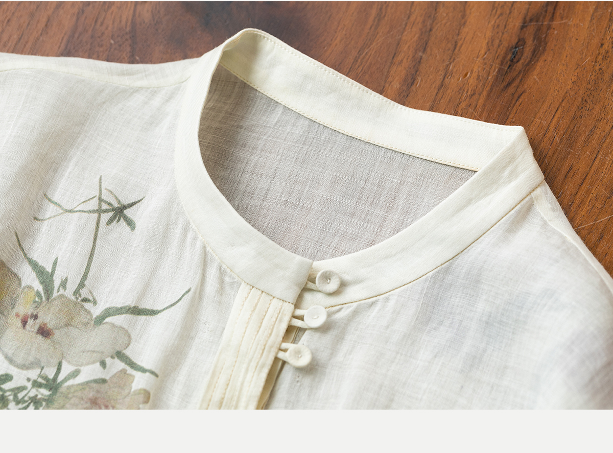牧衣游原创 手工刺绣苎麻衬衫新款细腻轻薄百搭国画文艺衬衣 绿野