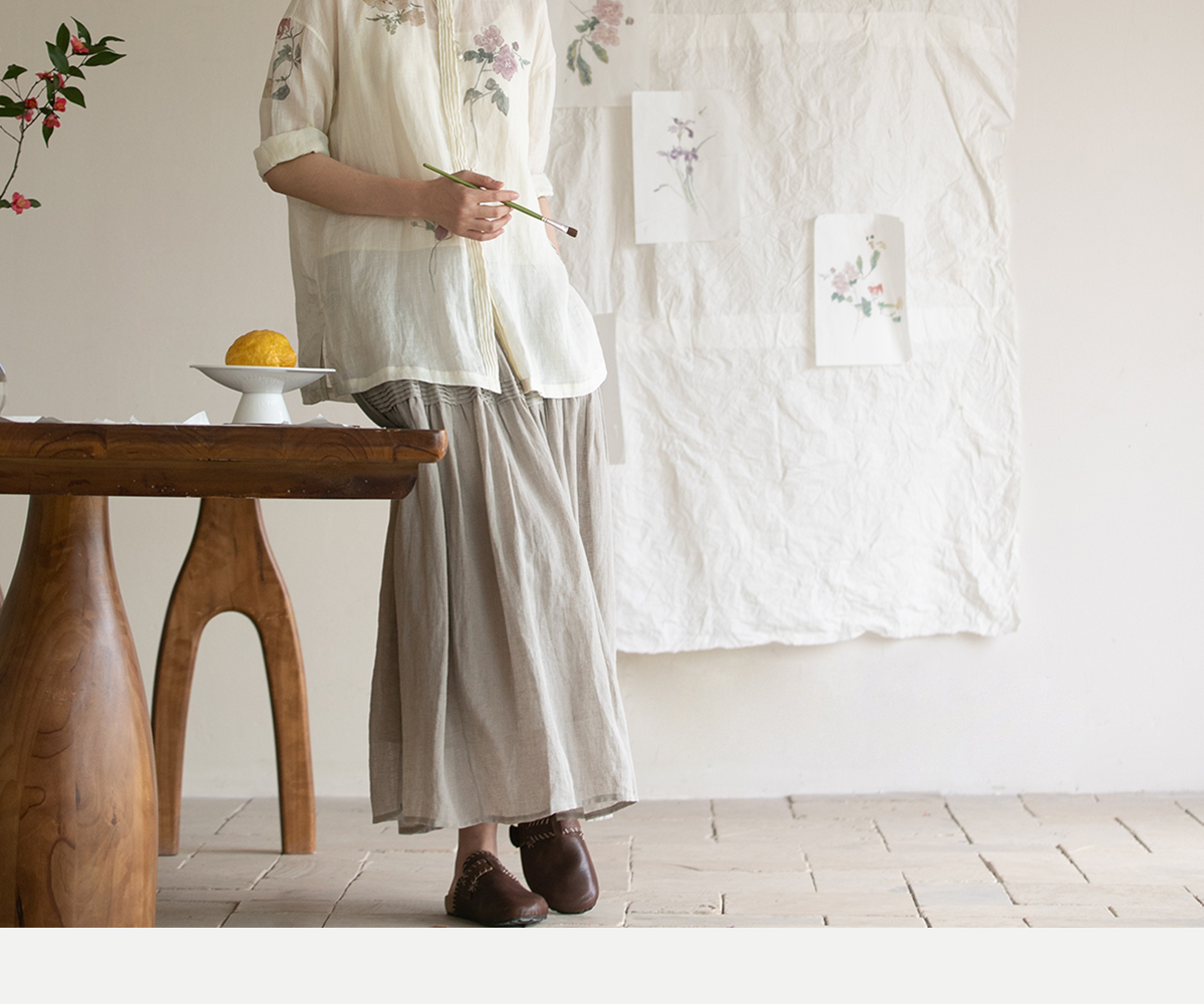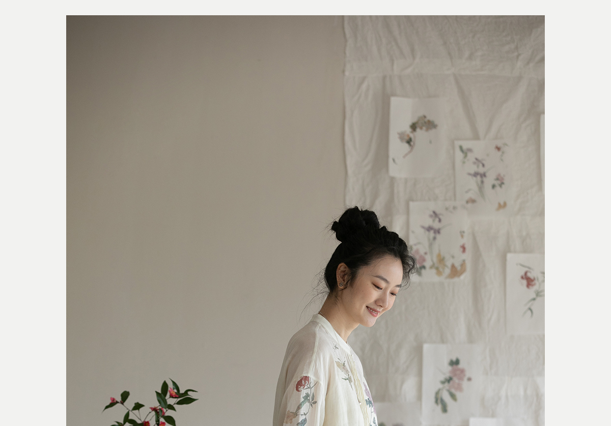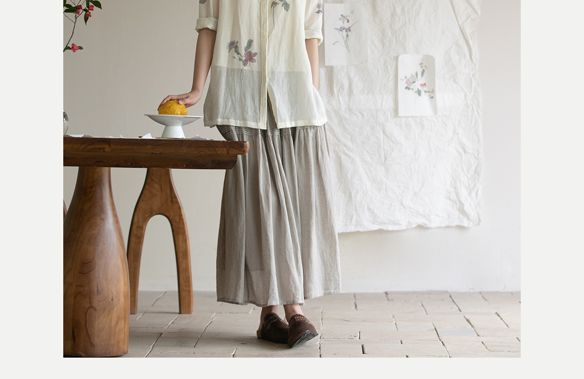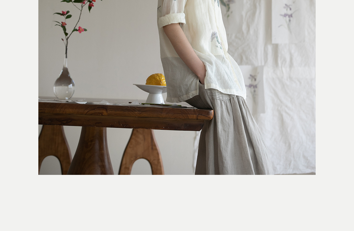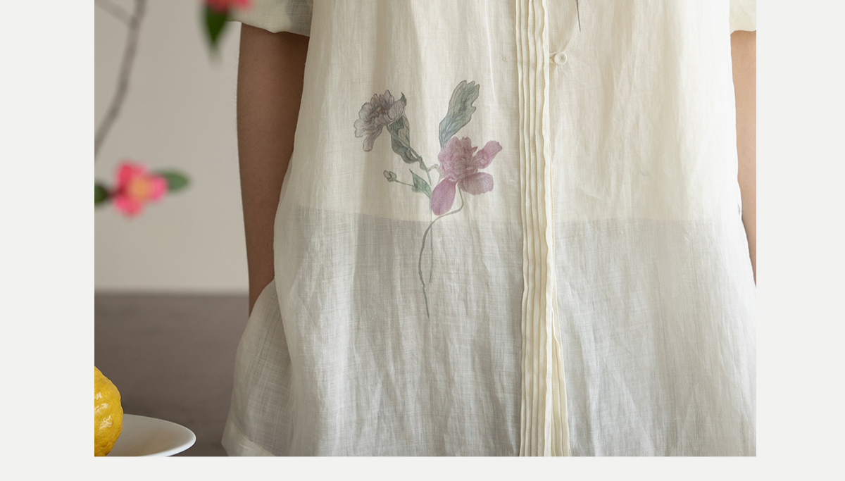 牧衣游原创 手工刺绣苎麻衬衫新款细腻轻薄百搭国画文艺衬衣 绿野