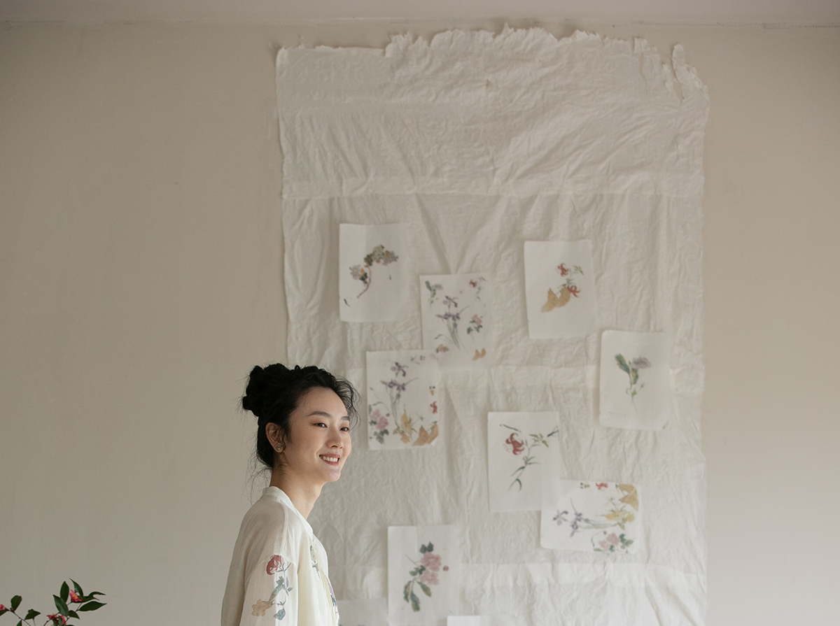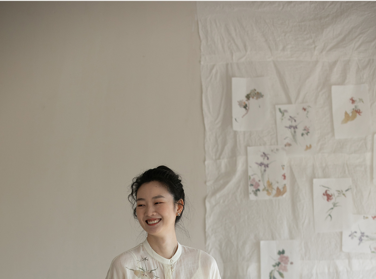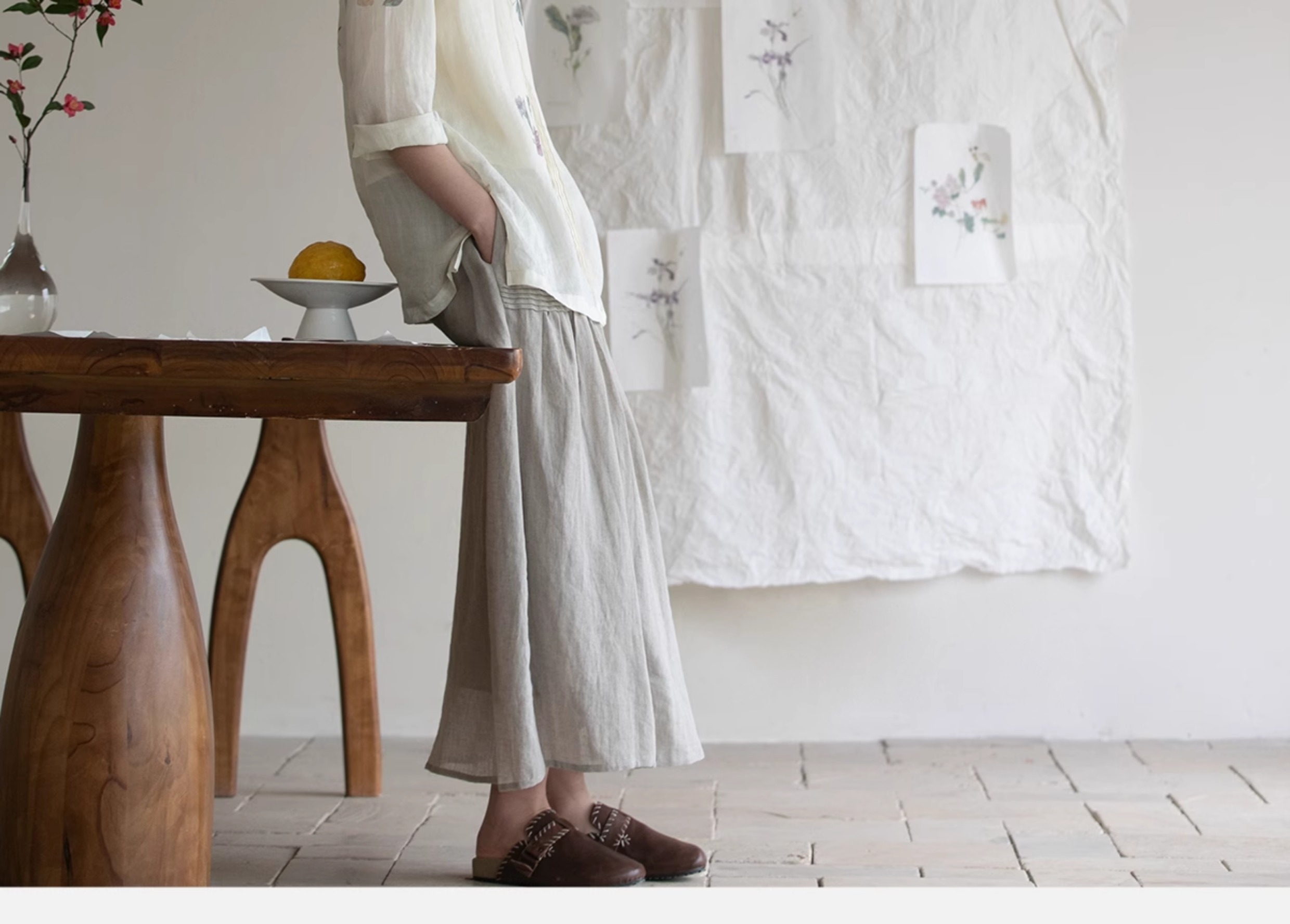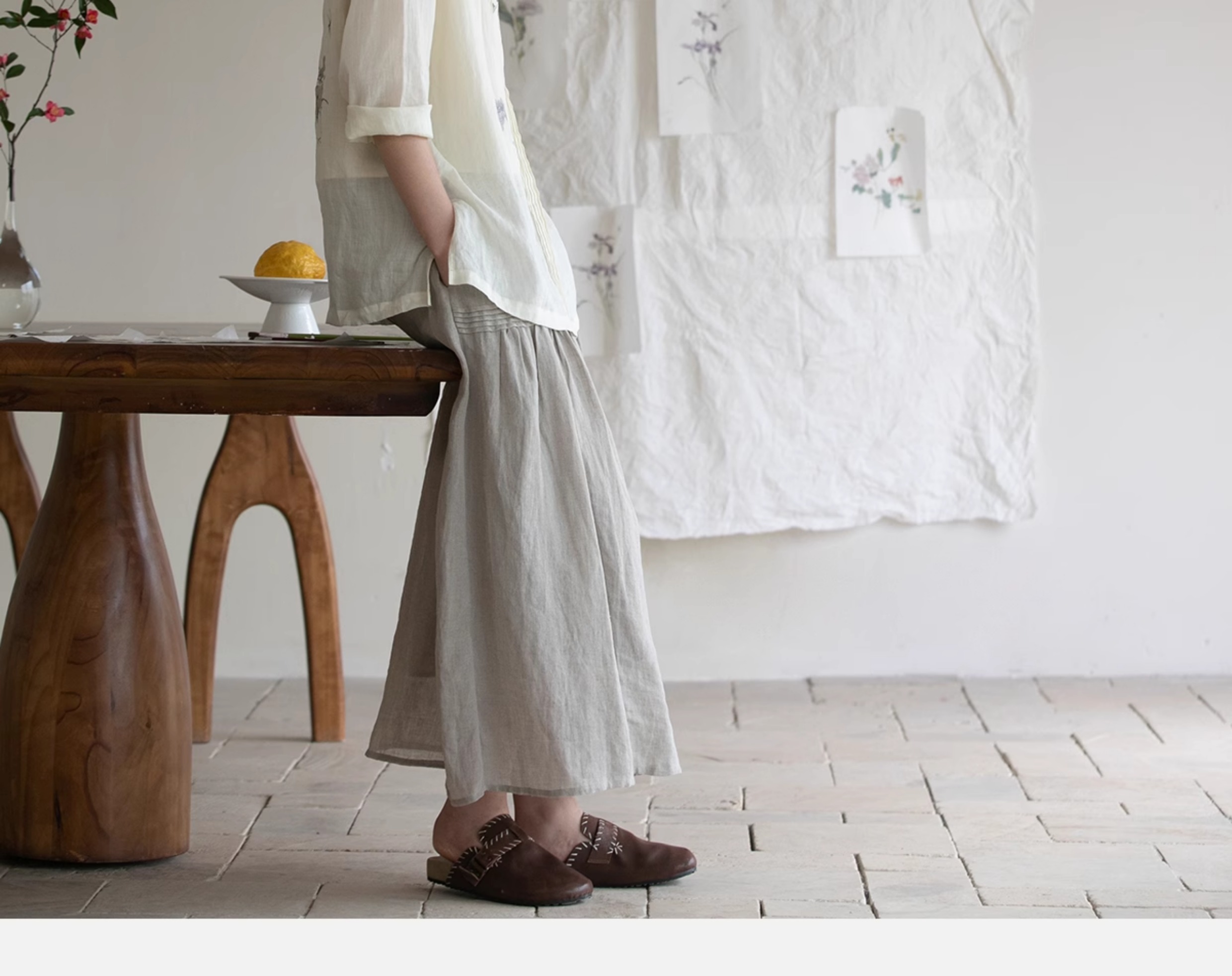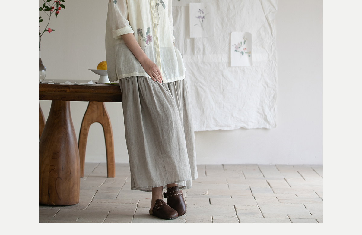 牧衣游原创 手工刺绣苎麻衬衫新款细腻轻薄百搭国画文艺衬衣 绿野
