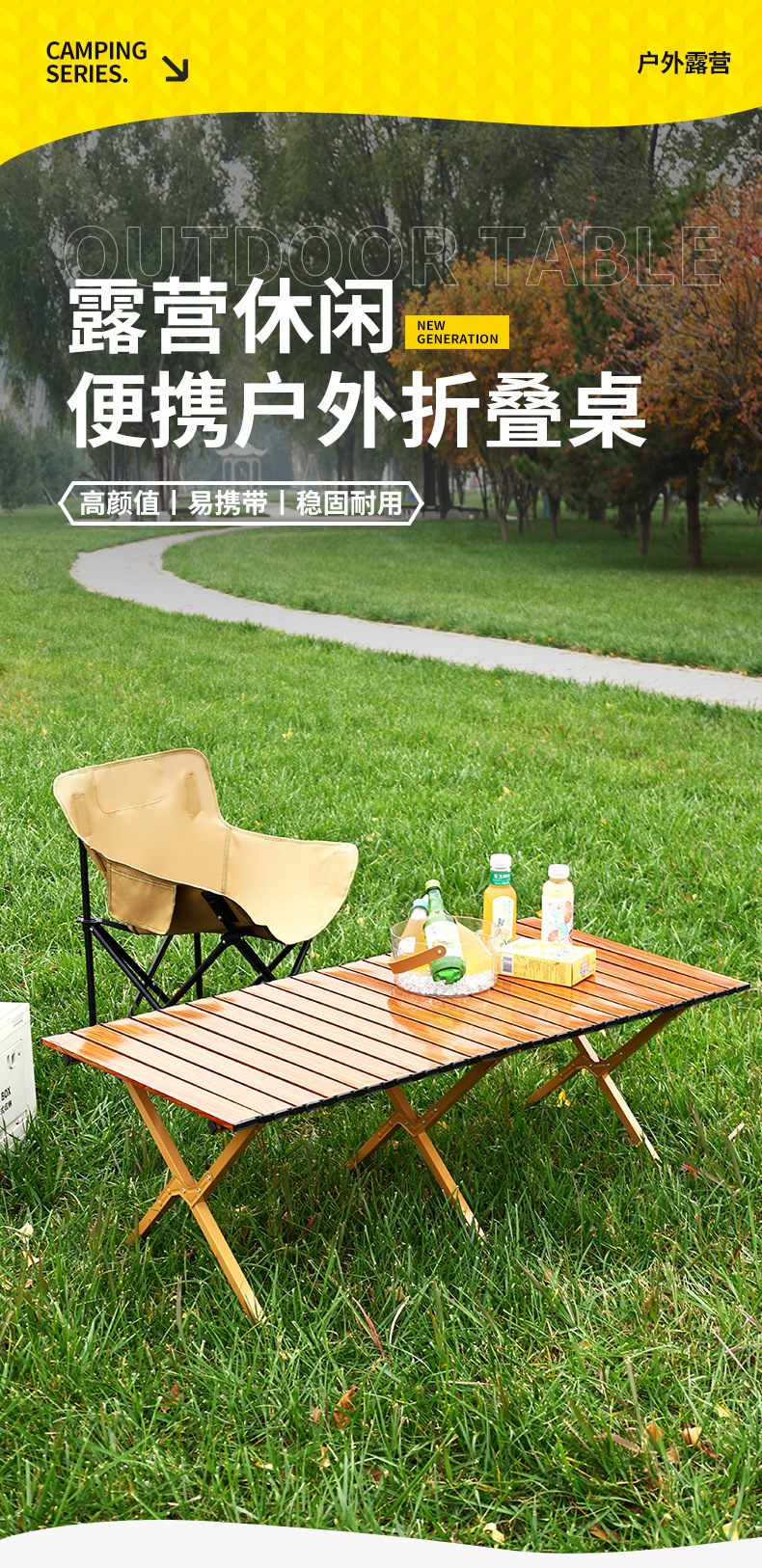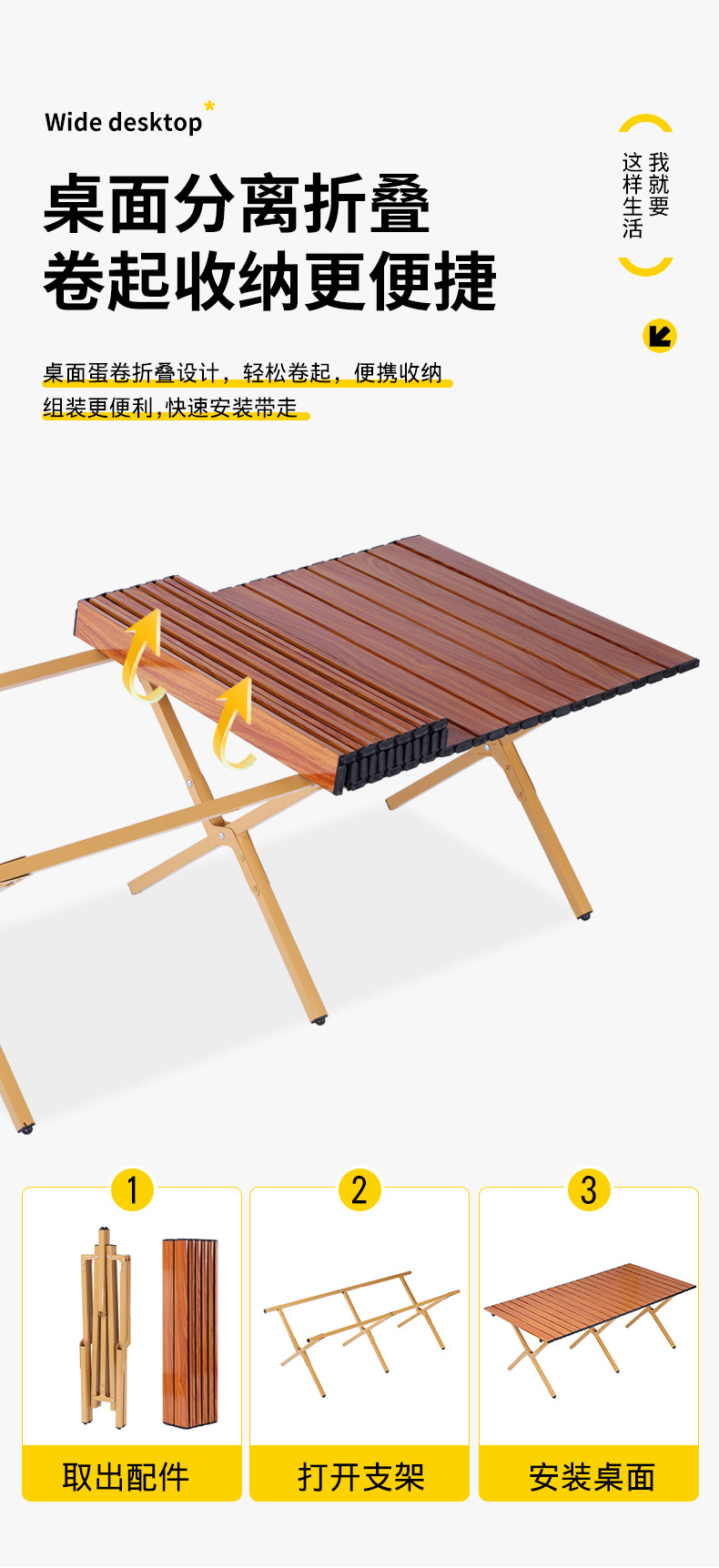 露营桌椅便携式折叠桌易安装蛋卷桌户外摆摊桌子旅游野营装备用品