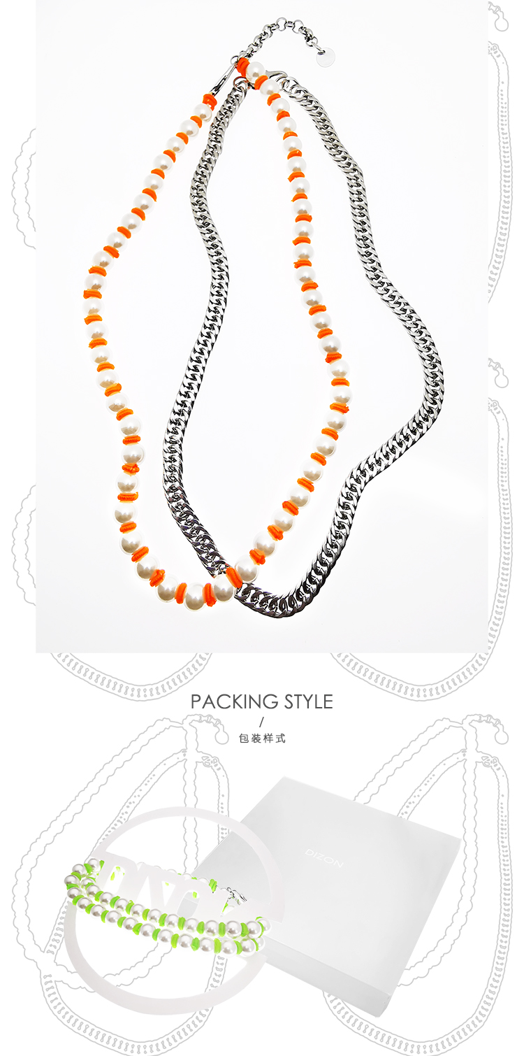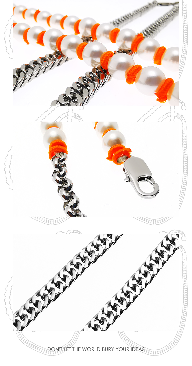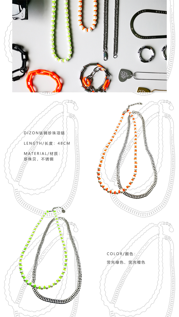 DI ZON高街钛钢hiphop项链嘻哈小众设计冷淡风 欧美男女珍珠项链