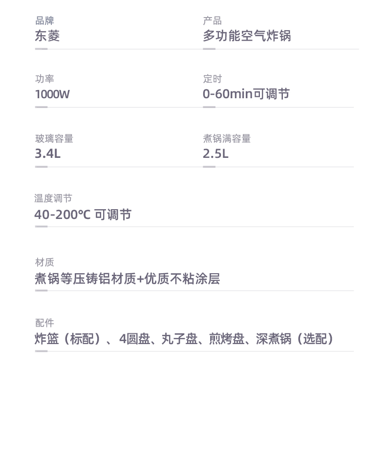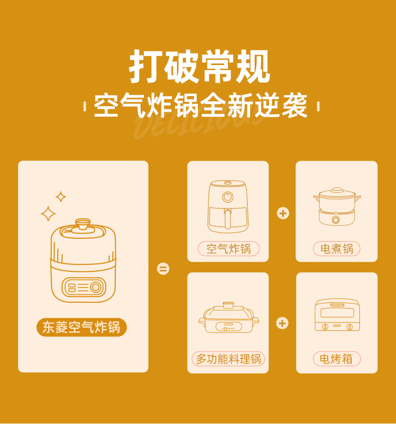 【已下架】一锅顶六锅 能换盘更方便 | 东菱多功能空气炸锅标配 家用2.5L大容量低脂健康 [福利品]