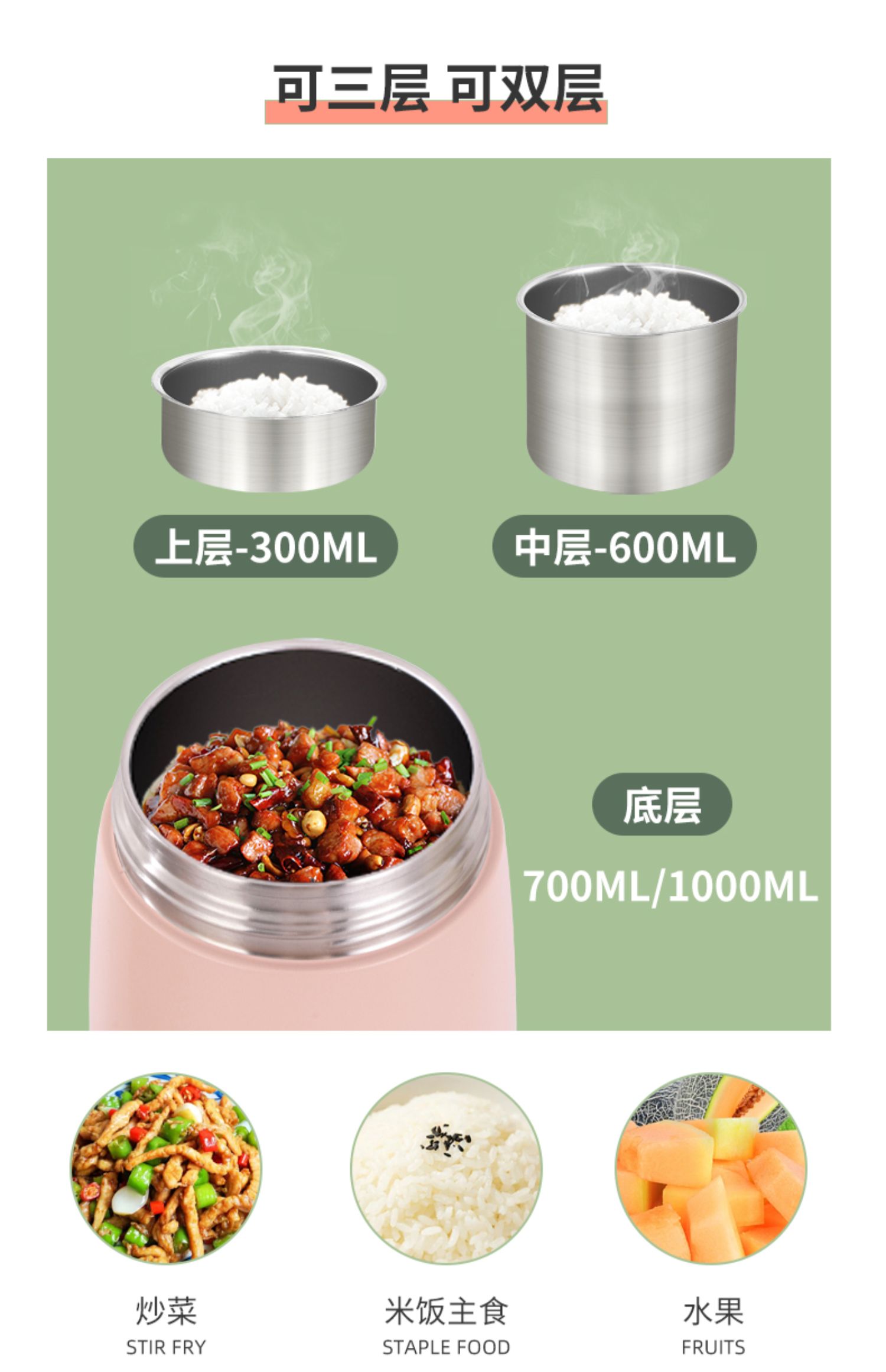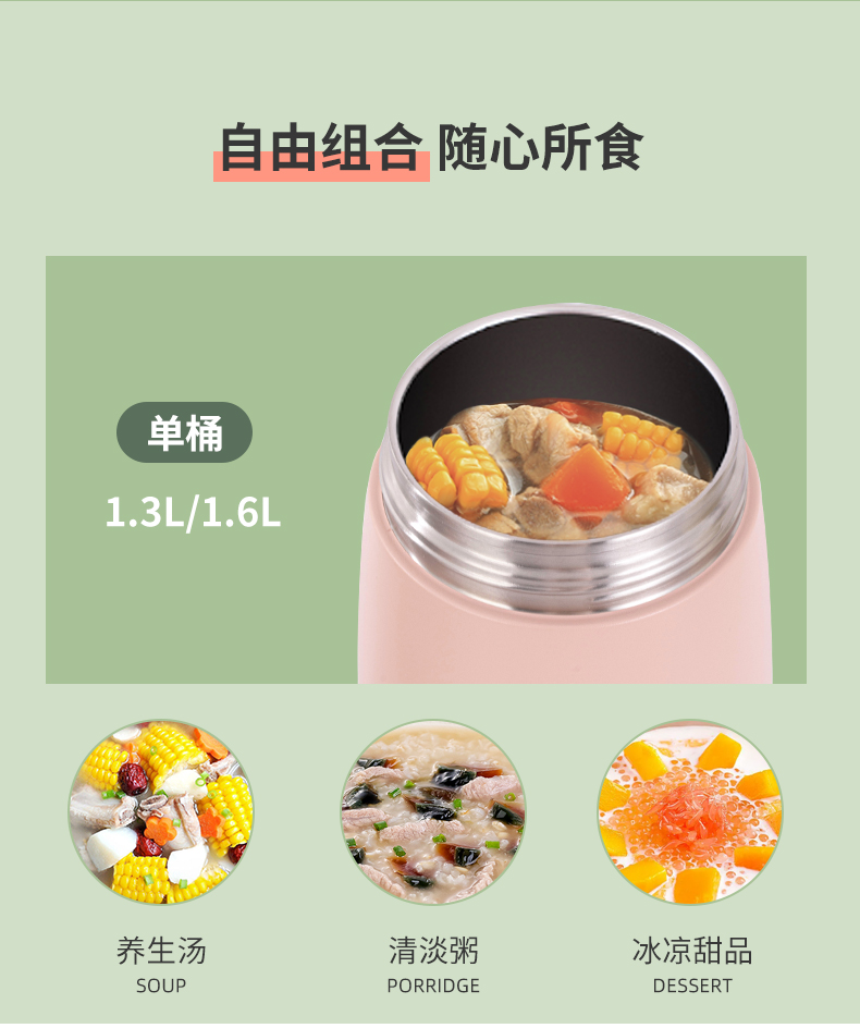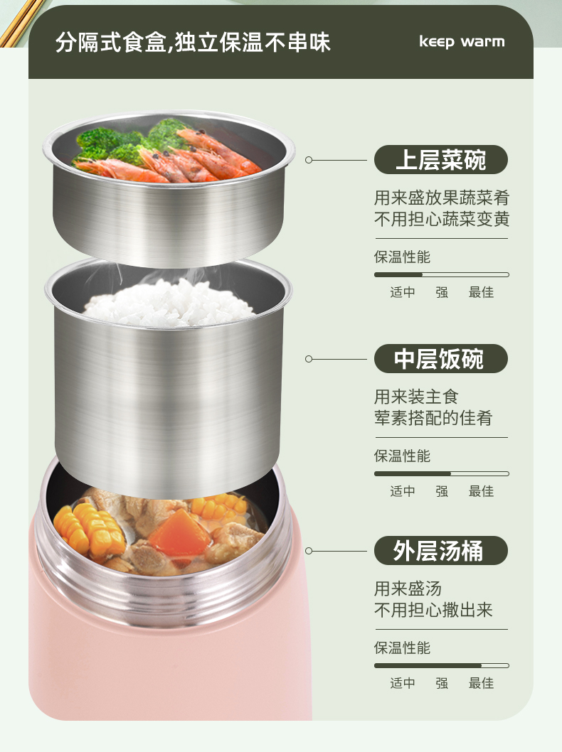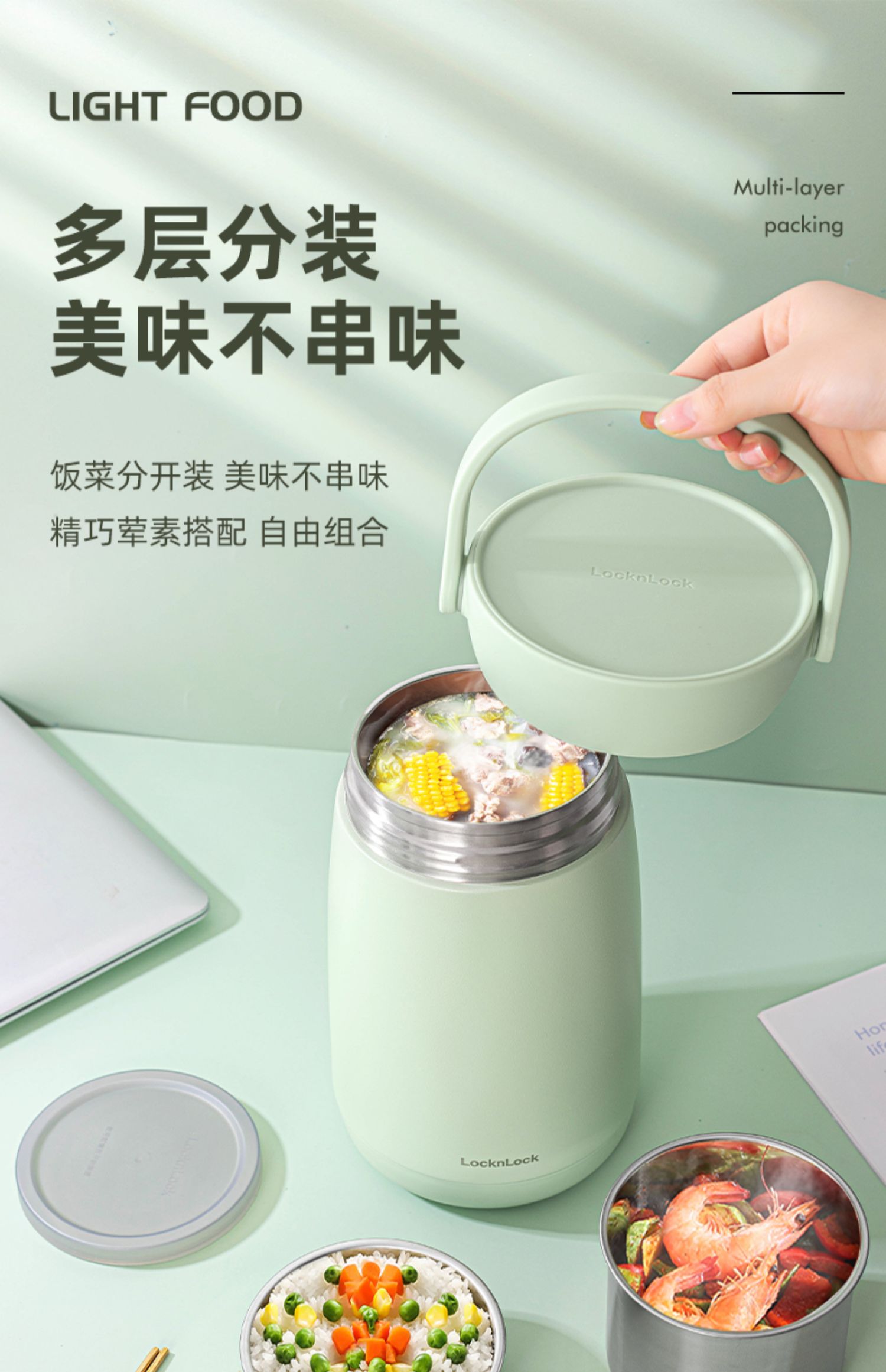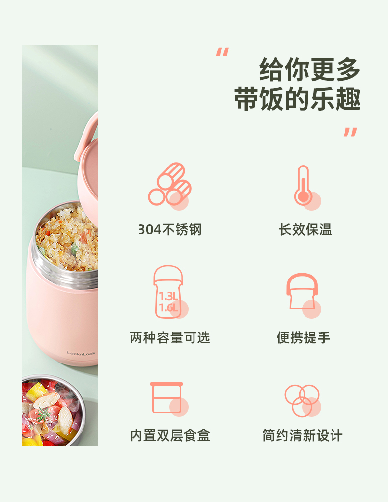 乐扣乐扣保温桶304不锈钢独立分层式家用上班族超长保温饭盒手提悠悠保温桶