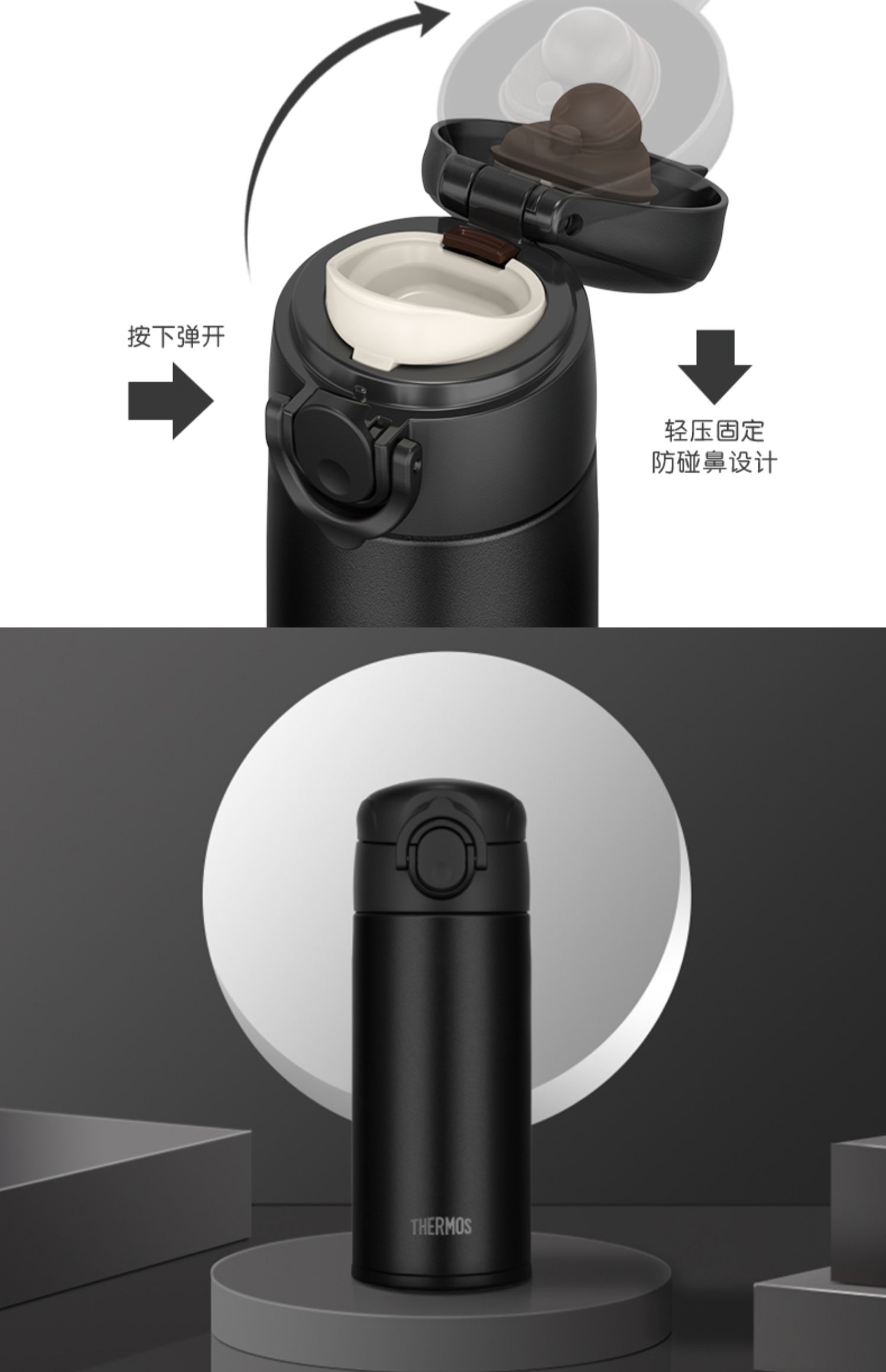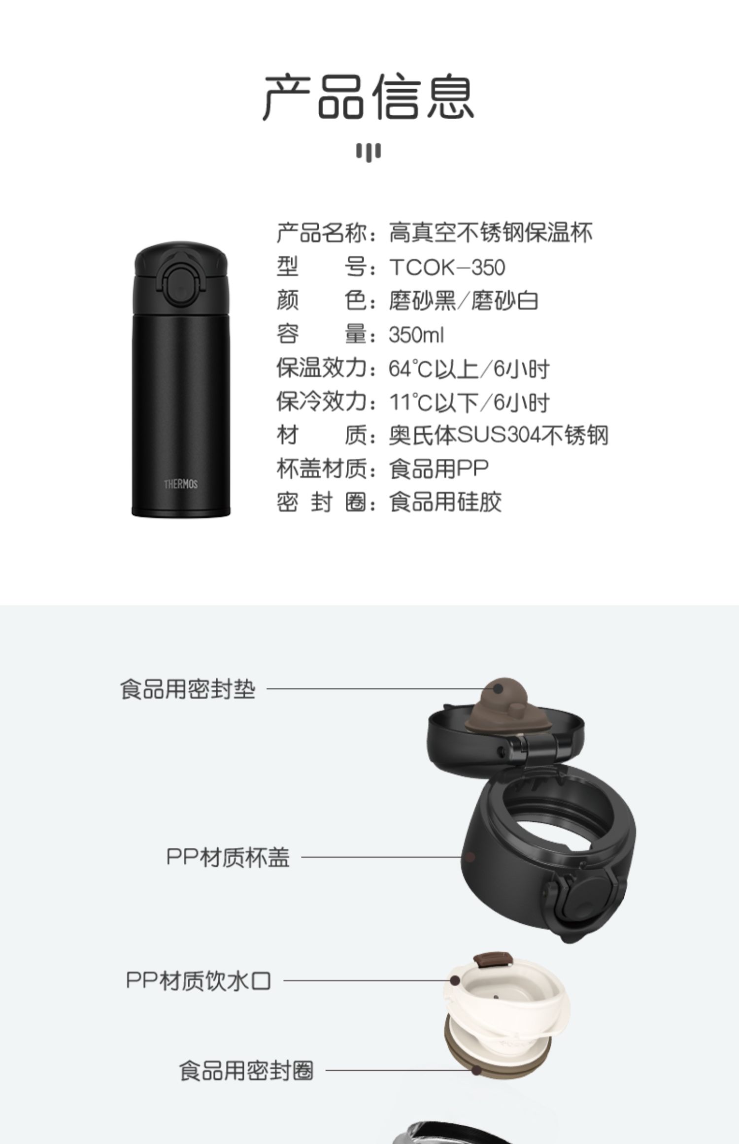 膳魔师不锈钢保温杯便携保冷简约弹盖杯TCOK-350 350ml