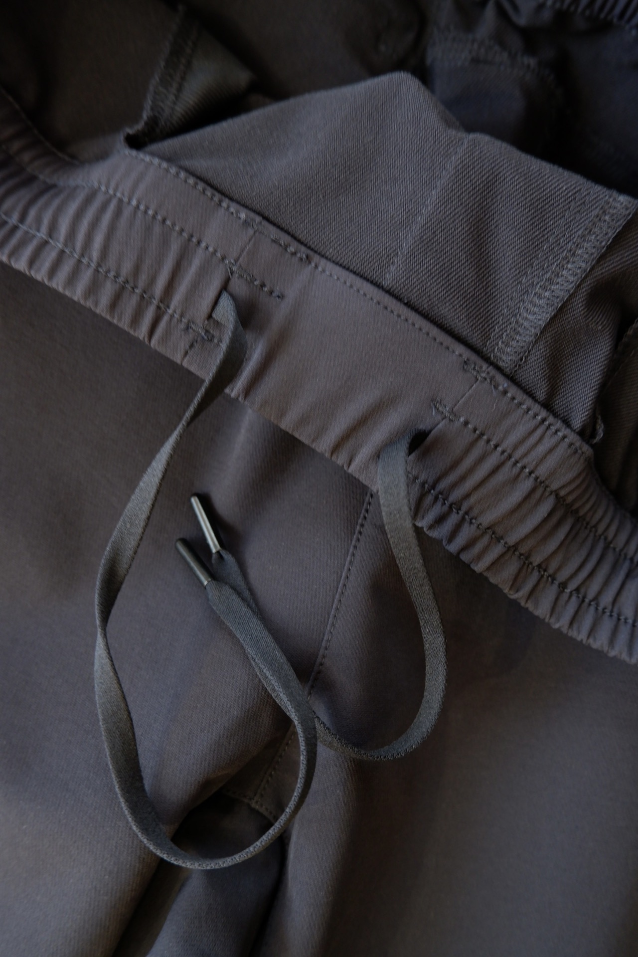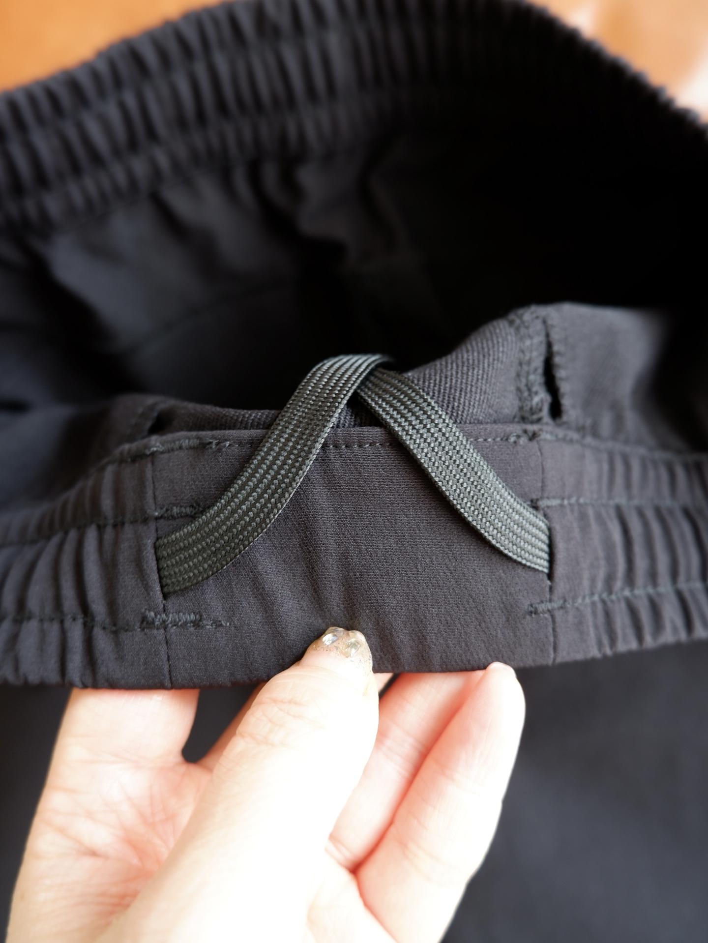 腰部做的抽绳设计, 抽绳在裤子里面,