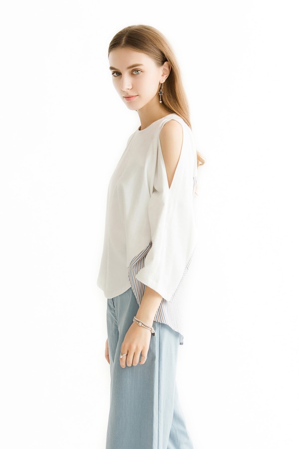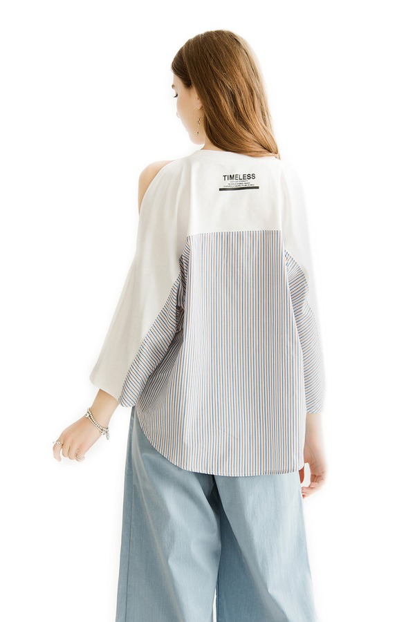 JUCY JUDY 条纹拼接挖肩T恤 1244