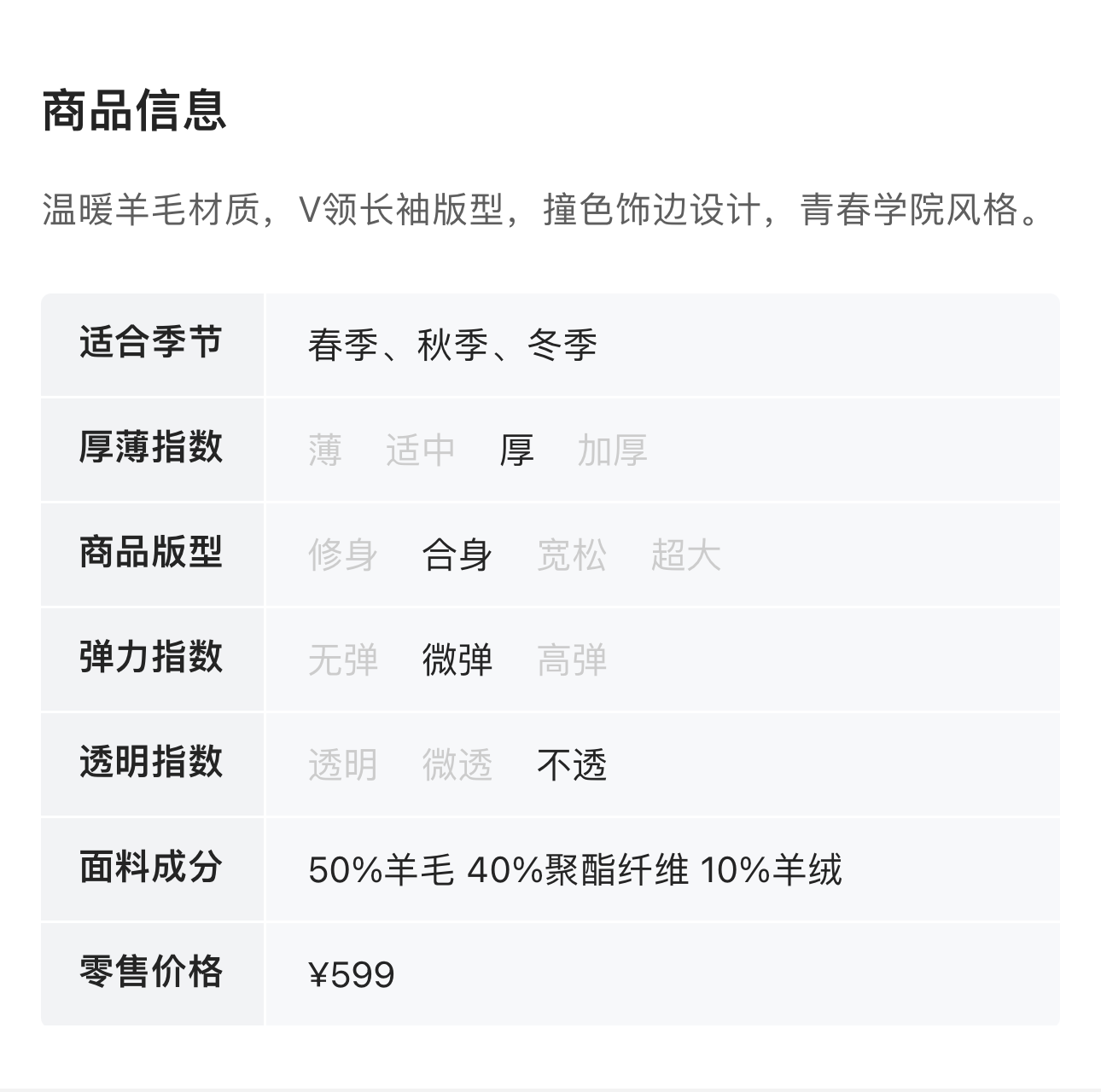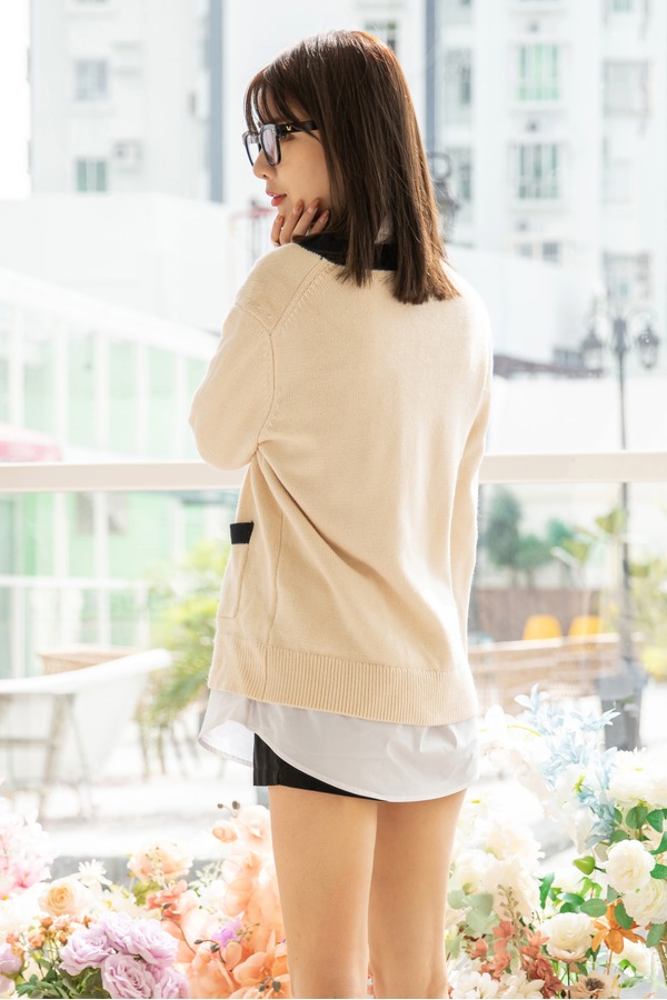 Stay2Weeks 撞色饰边V领长袖羊毛针织开衫 13858