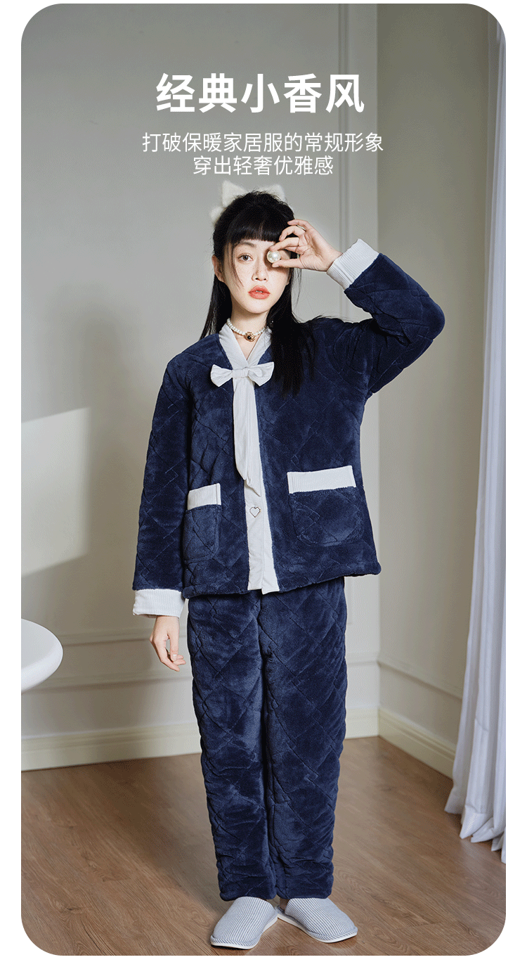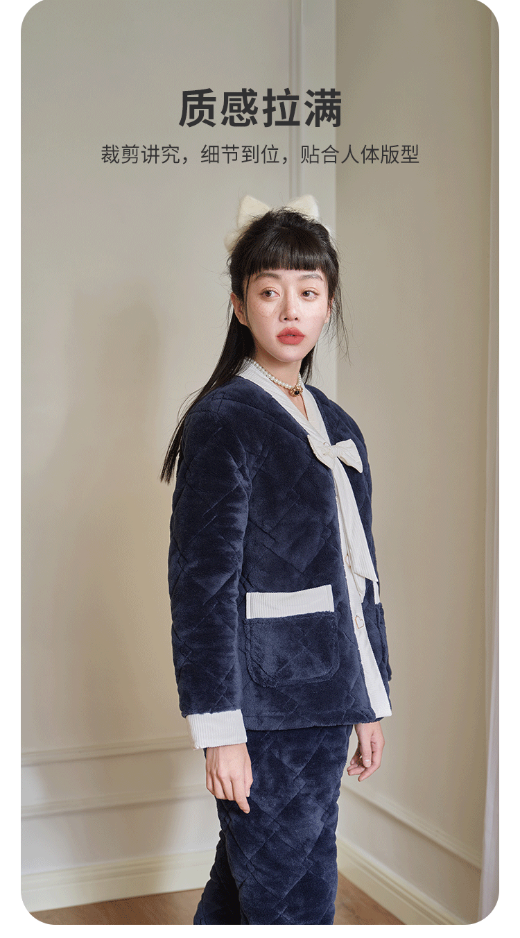 都市丽人舒适外出女士睡衣高端臻品长毛绒夹棉家居服LH21J2