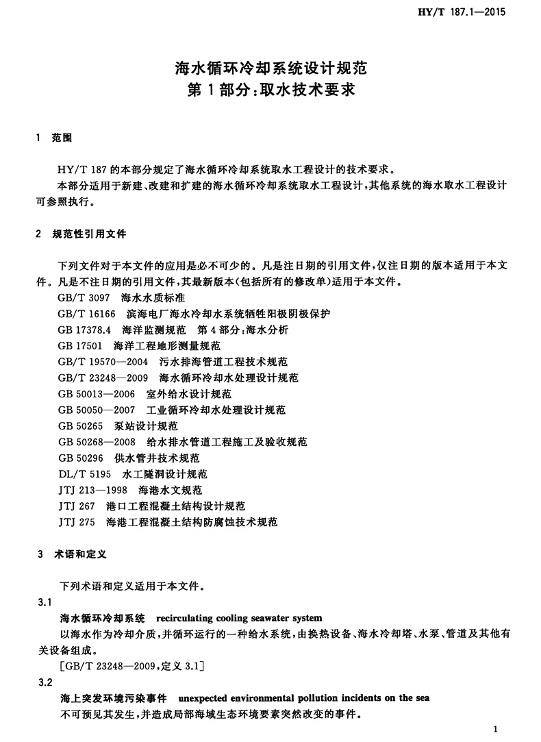 书名:海水循环冷却系统设计规范第1部分:取水技术要求