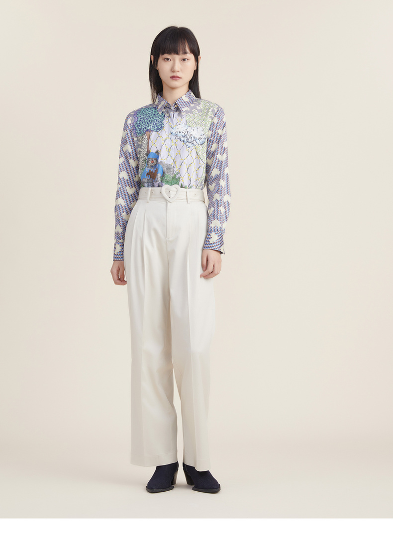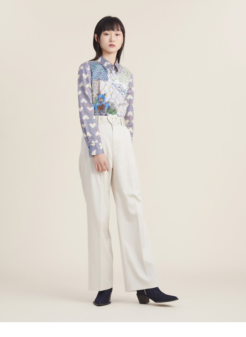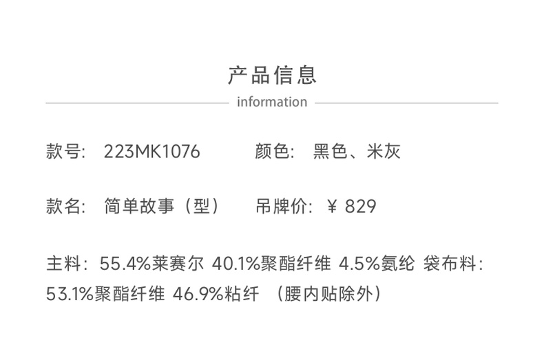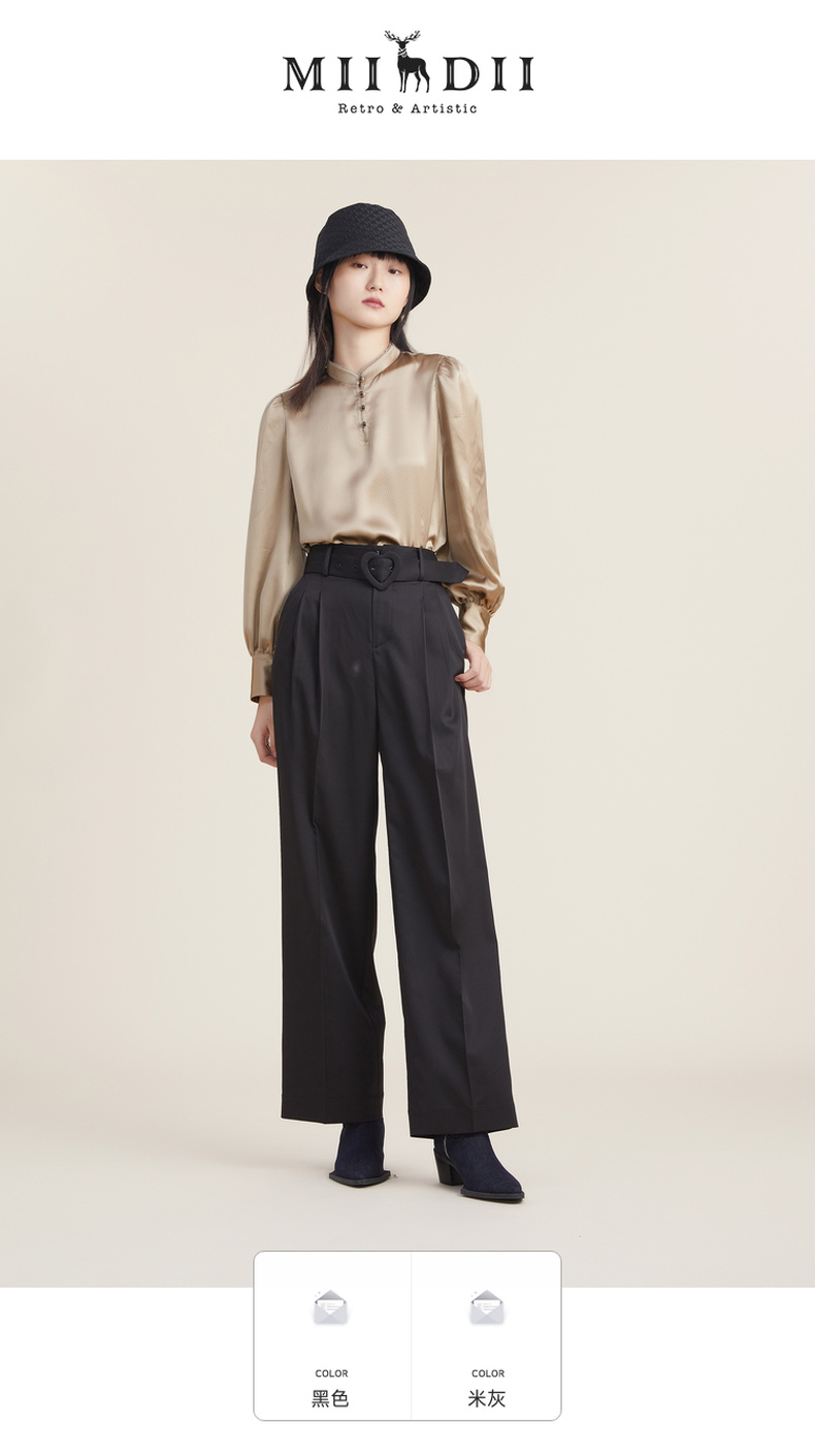 谜底直筒2022秋新款爱心裤带简约职场质感莱赛尔阔腿裤223MK1076