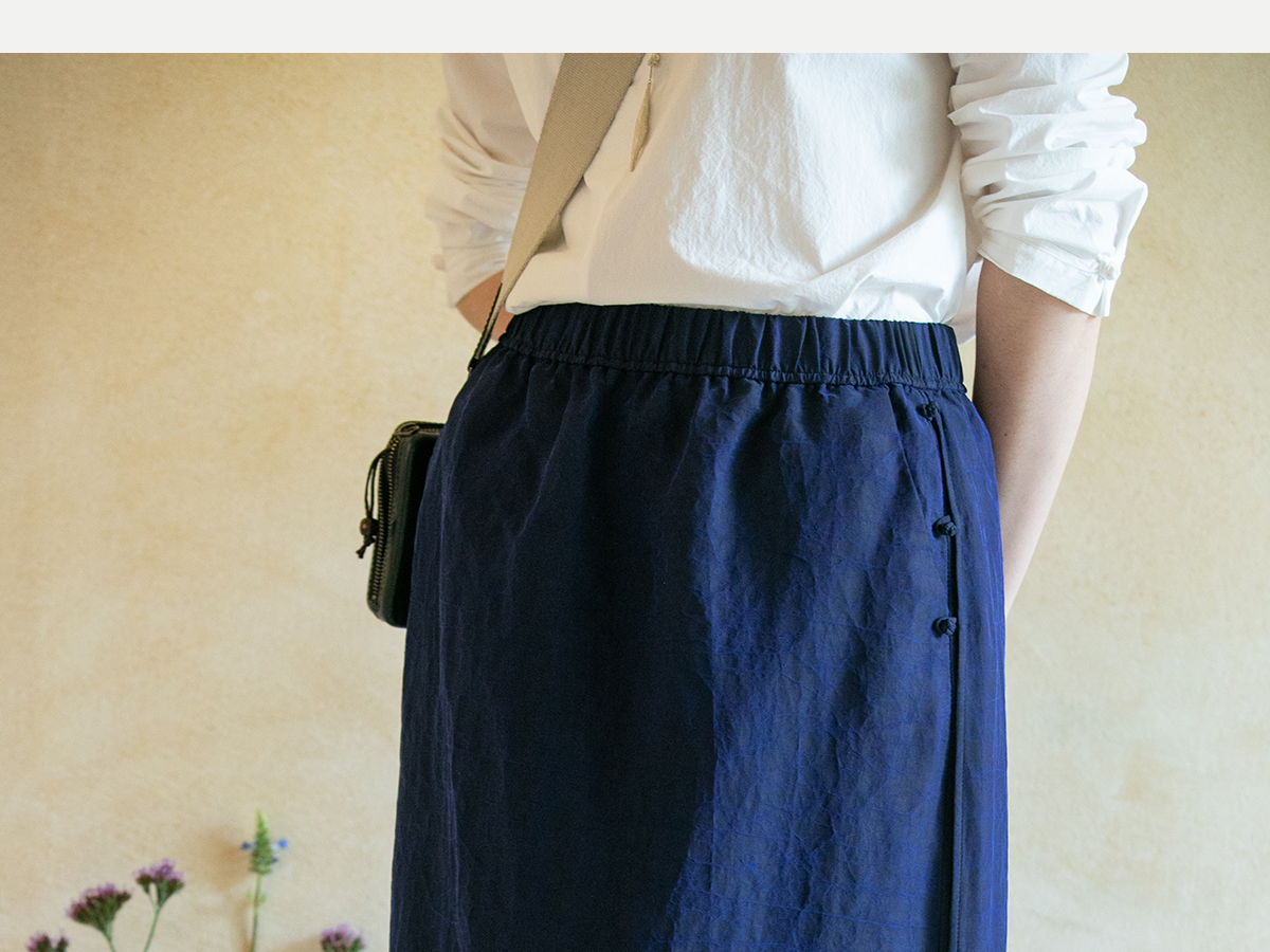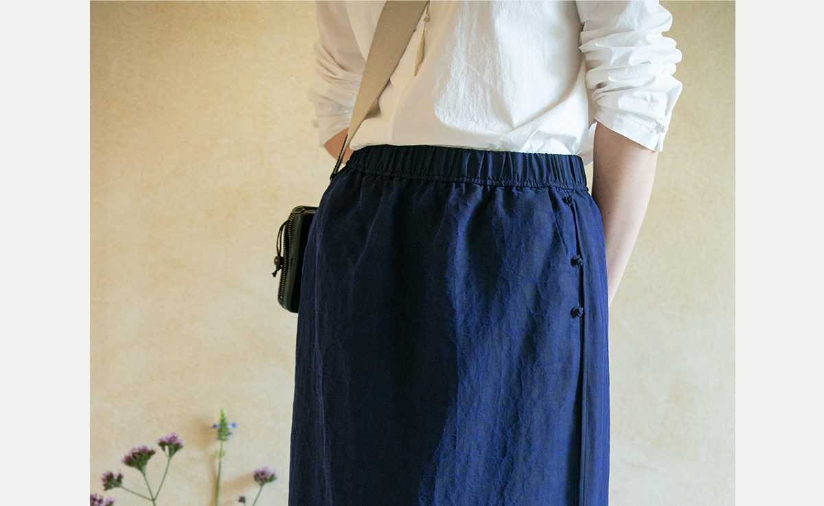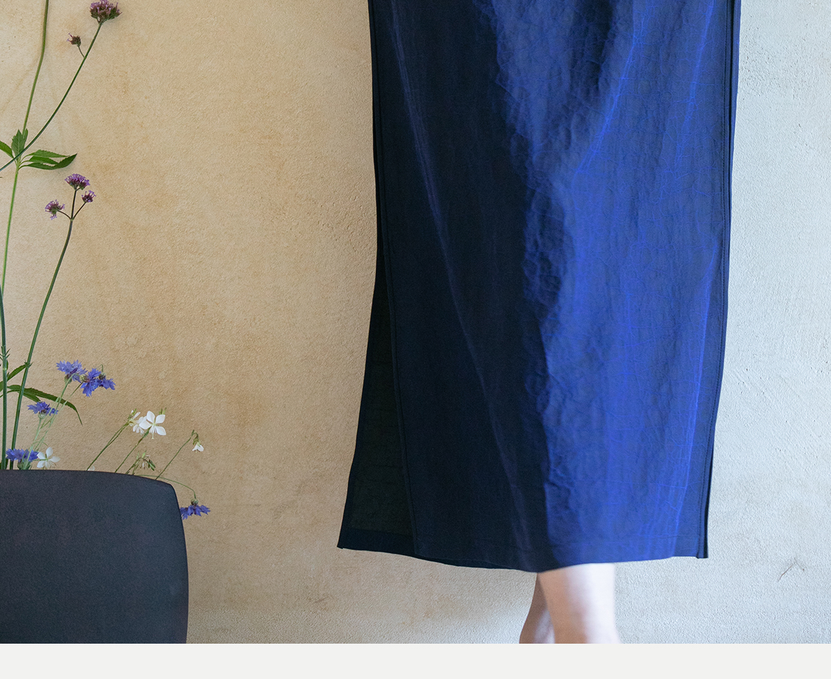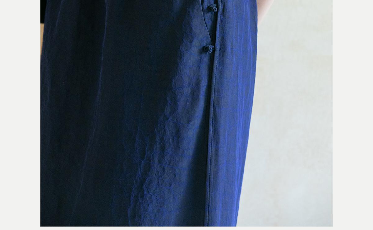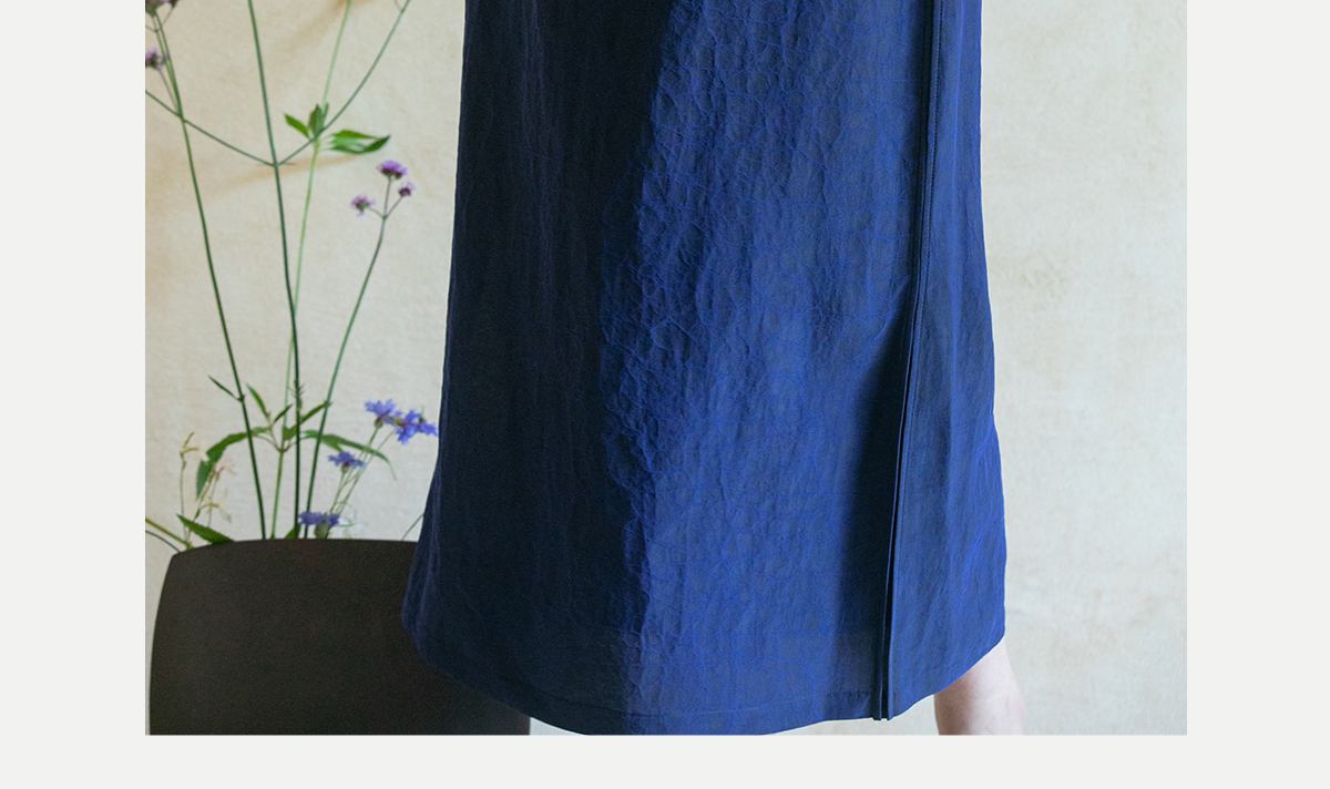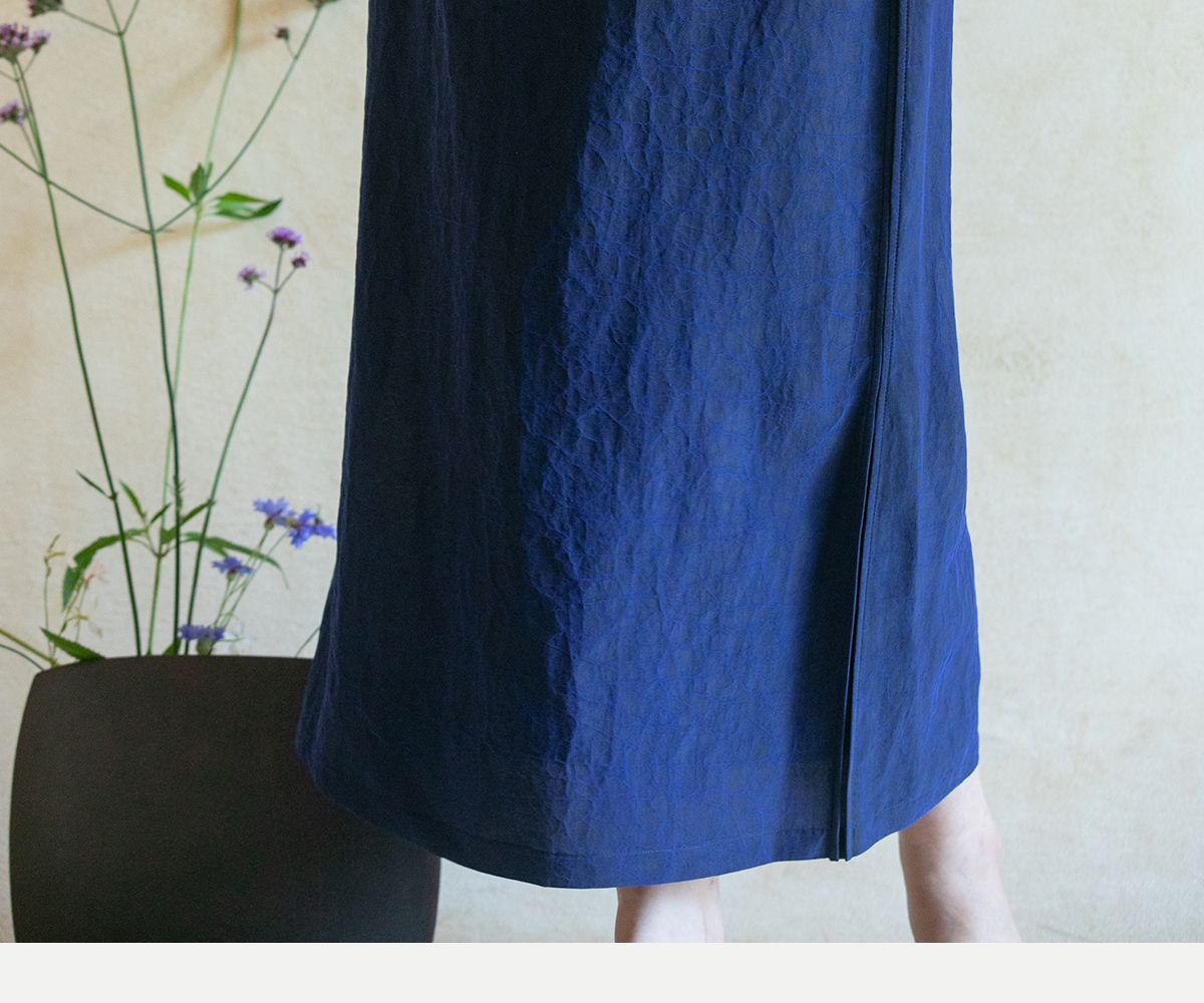 牧衣游原创 蓝龟裂纹香云纱半裙新款轻薄开叉复古百搭直筒裙 微雨