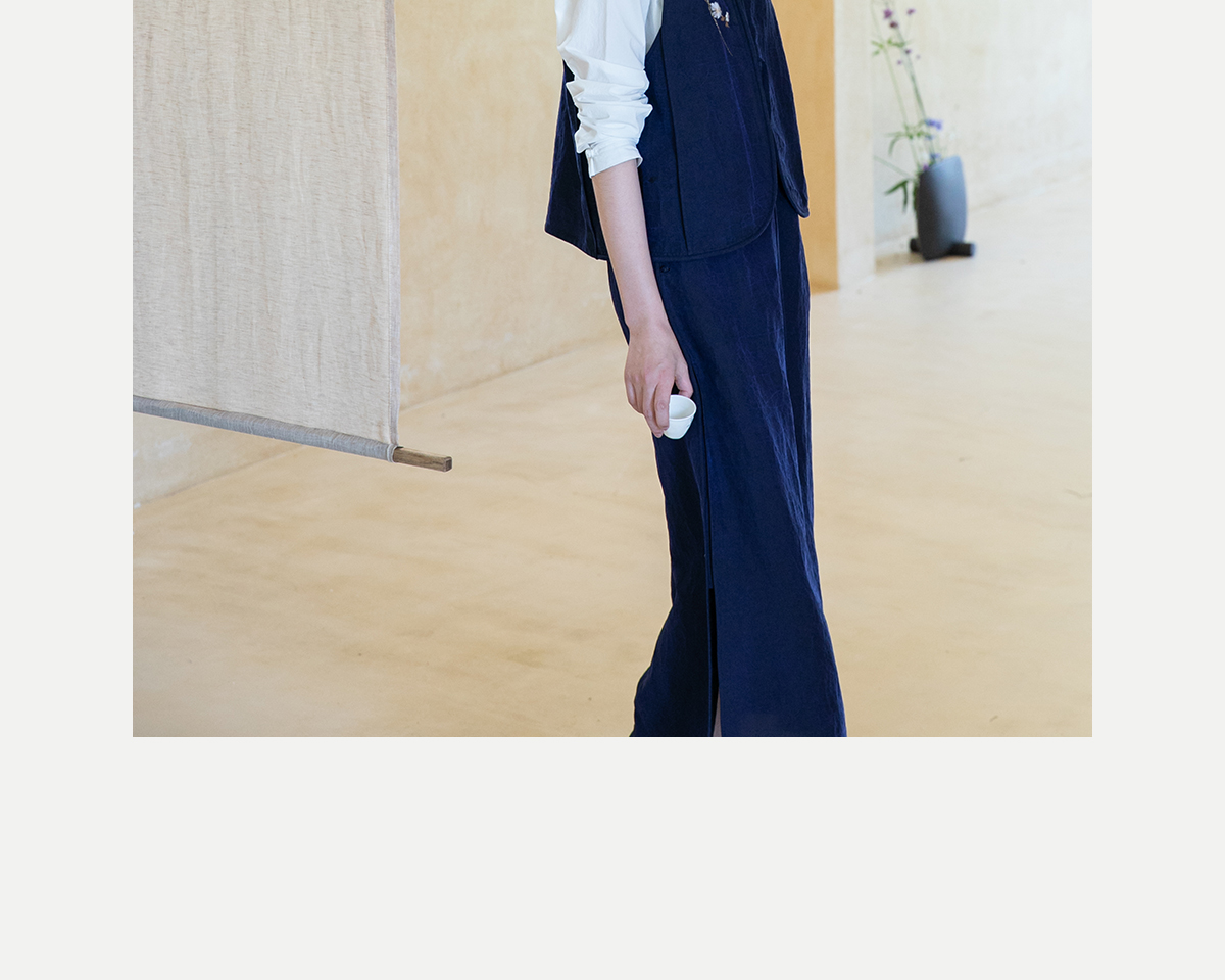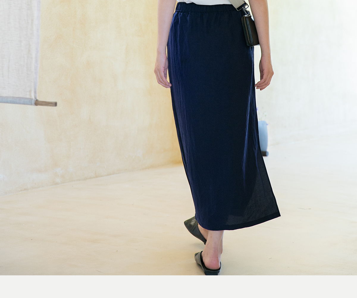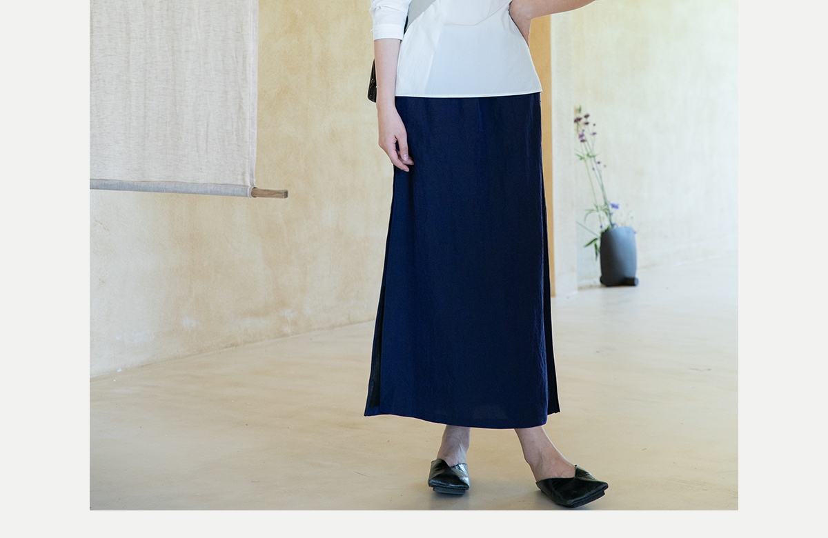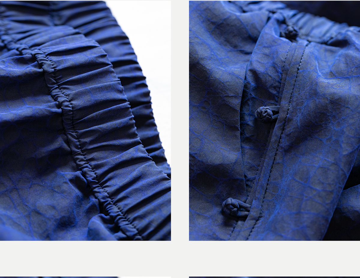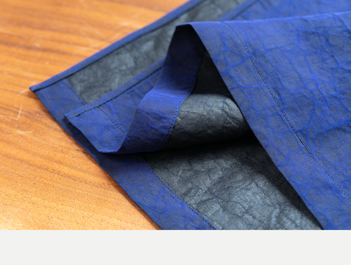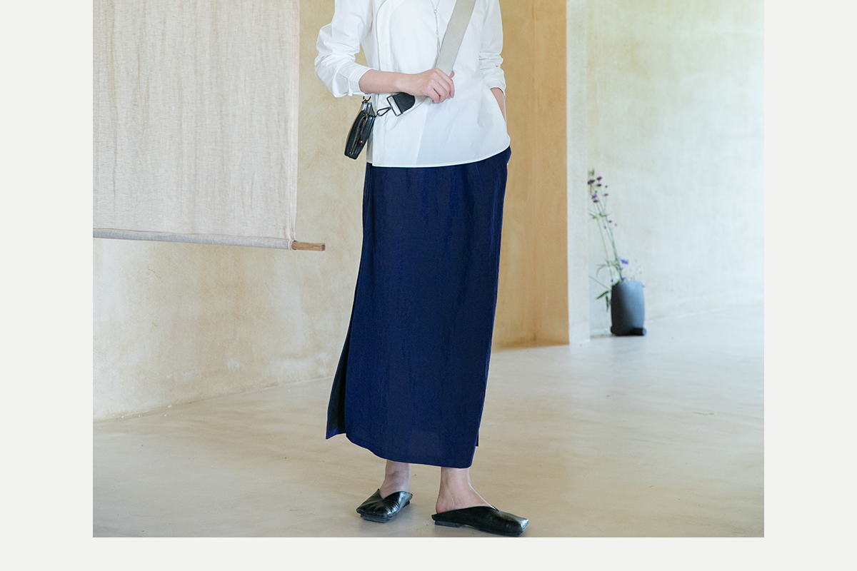 牧衣游原创 蓝龟裂纹香云纱半裙新款轻薄开叉复古百搭直筒裙 微雨