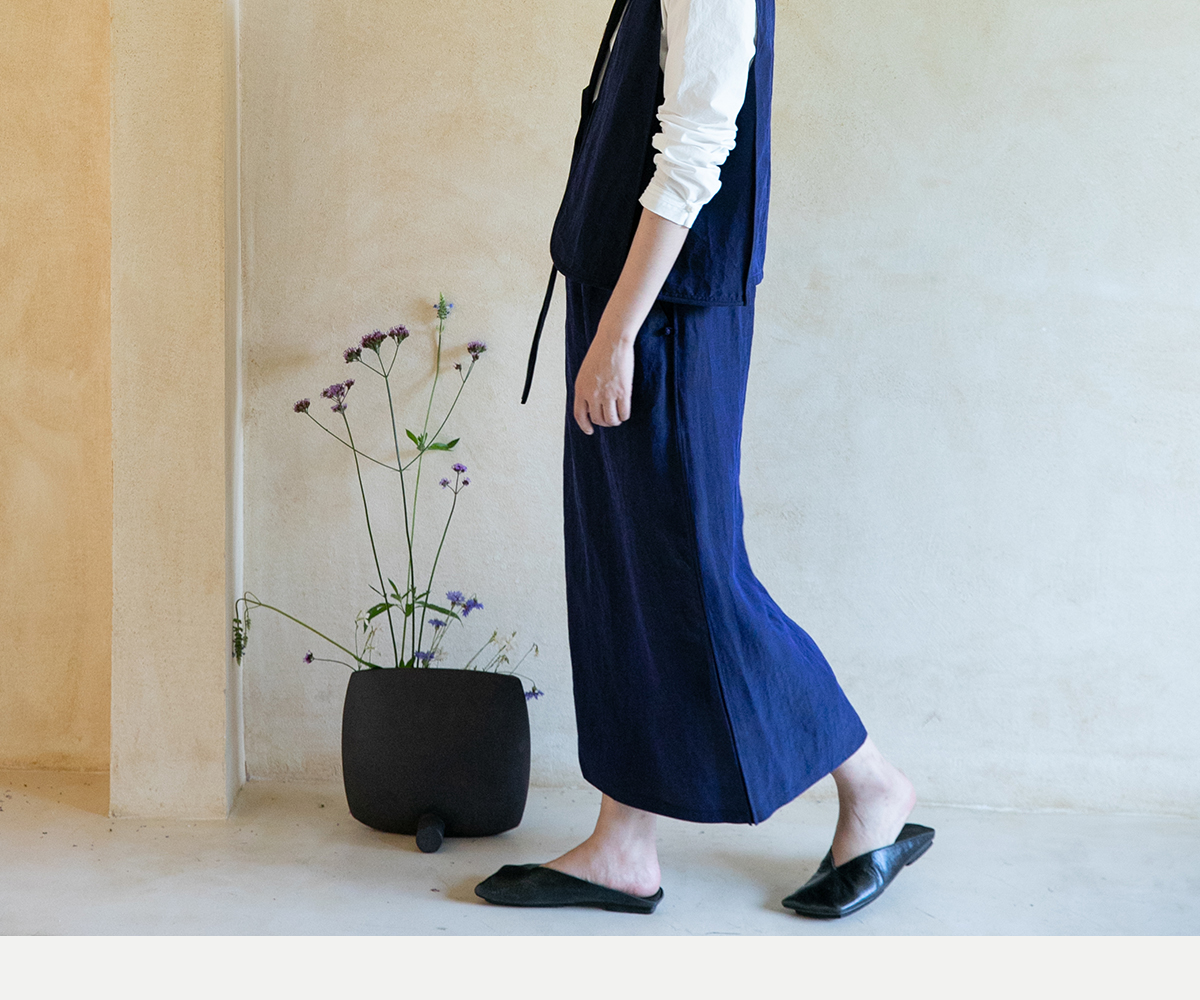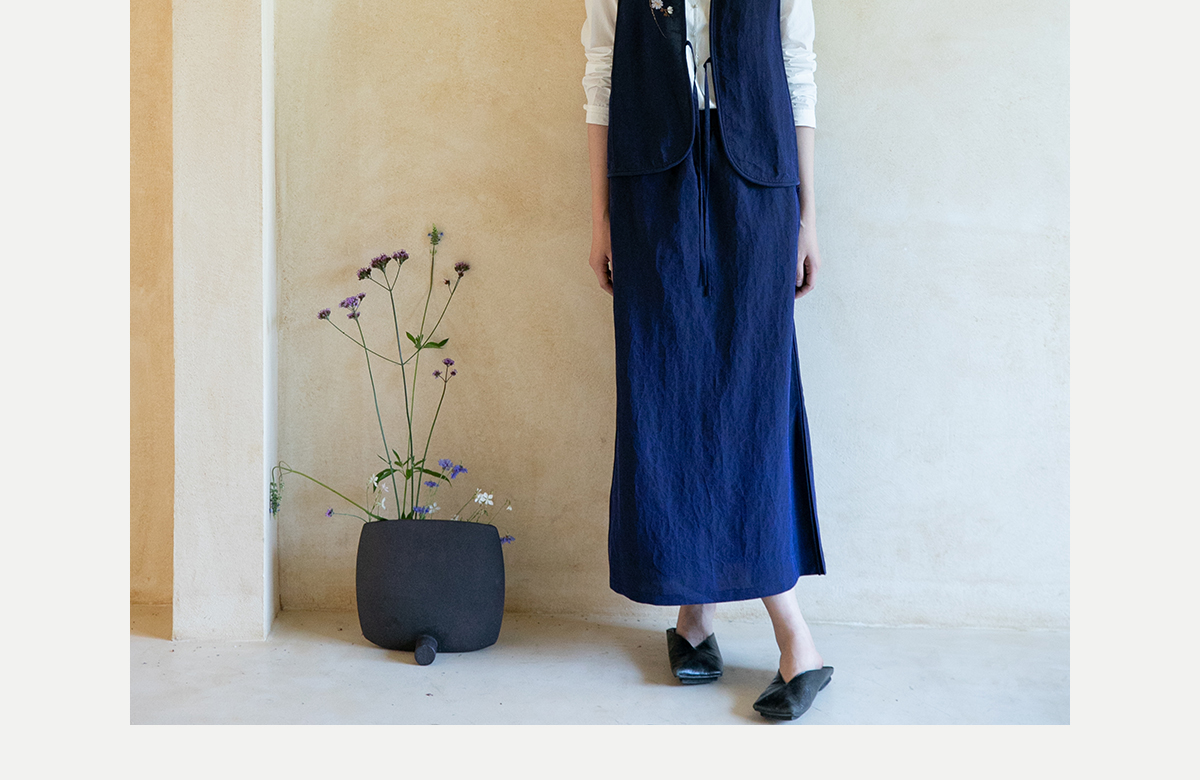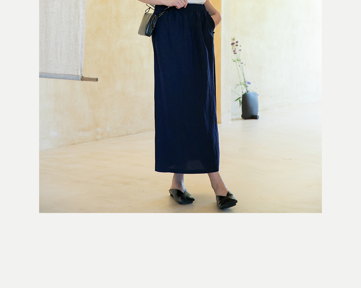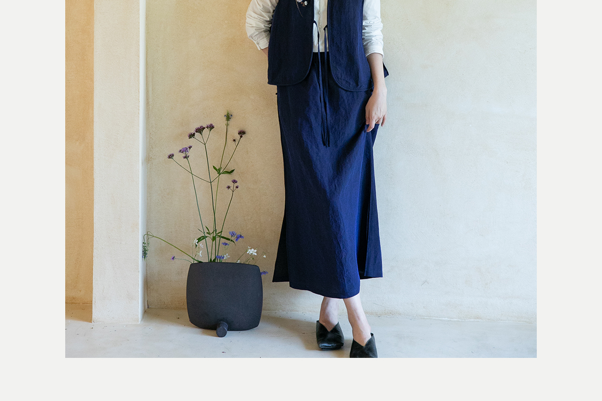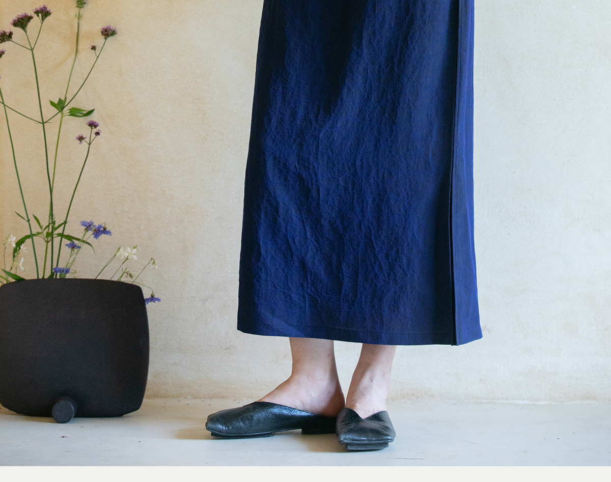 牧衣游原创 蓝龟裂纹香云纱半裙新款轻薄开叉复古百搭直筒裙 微雨