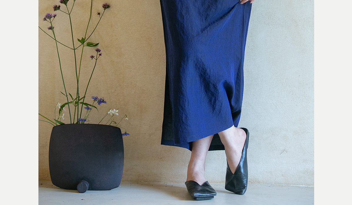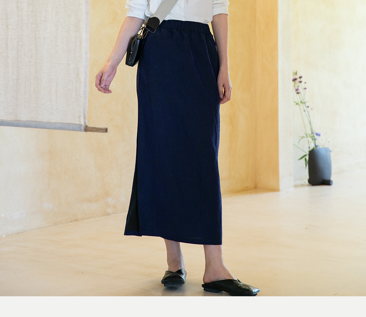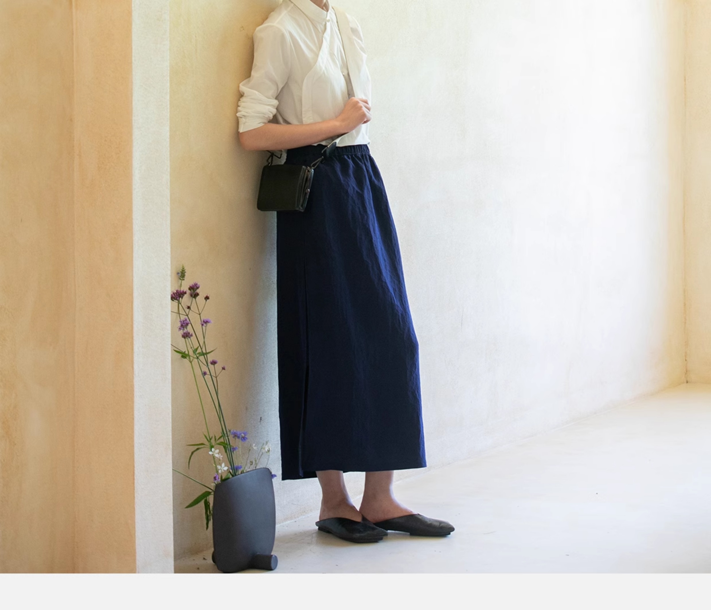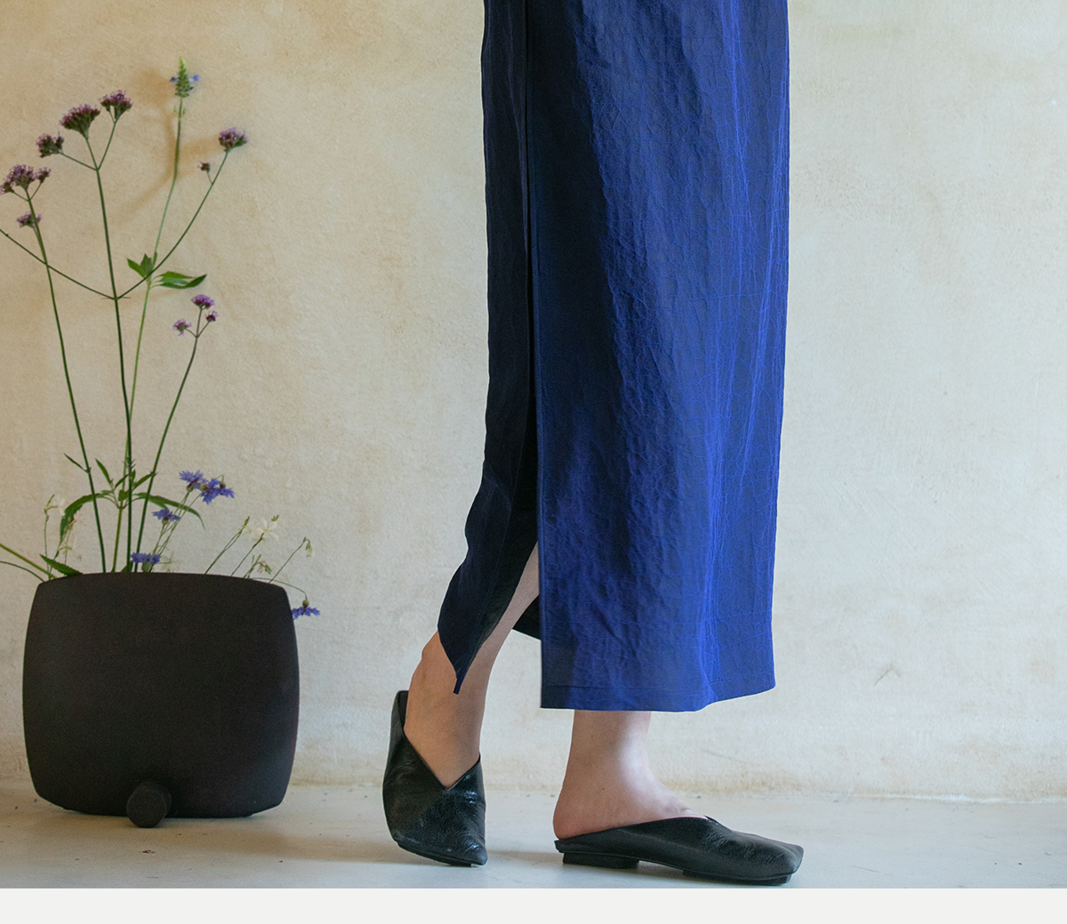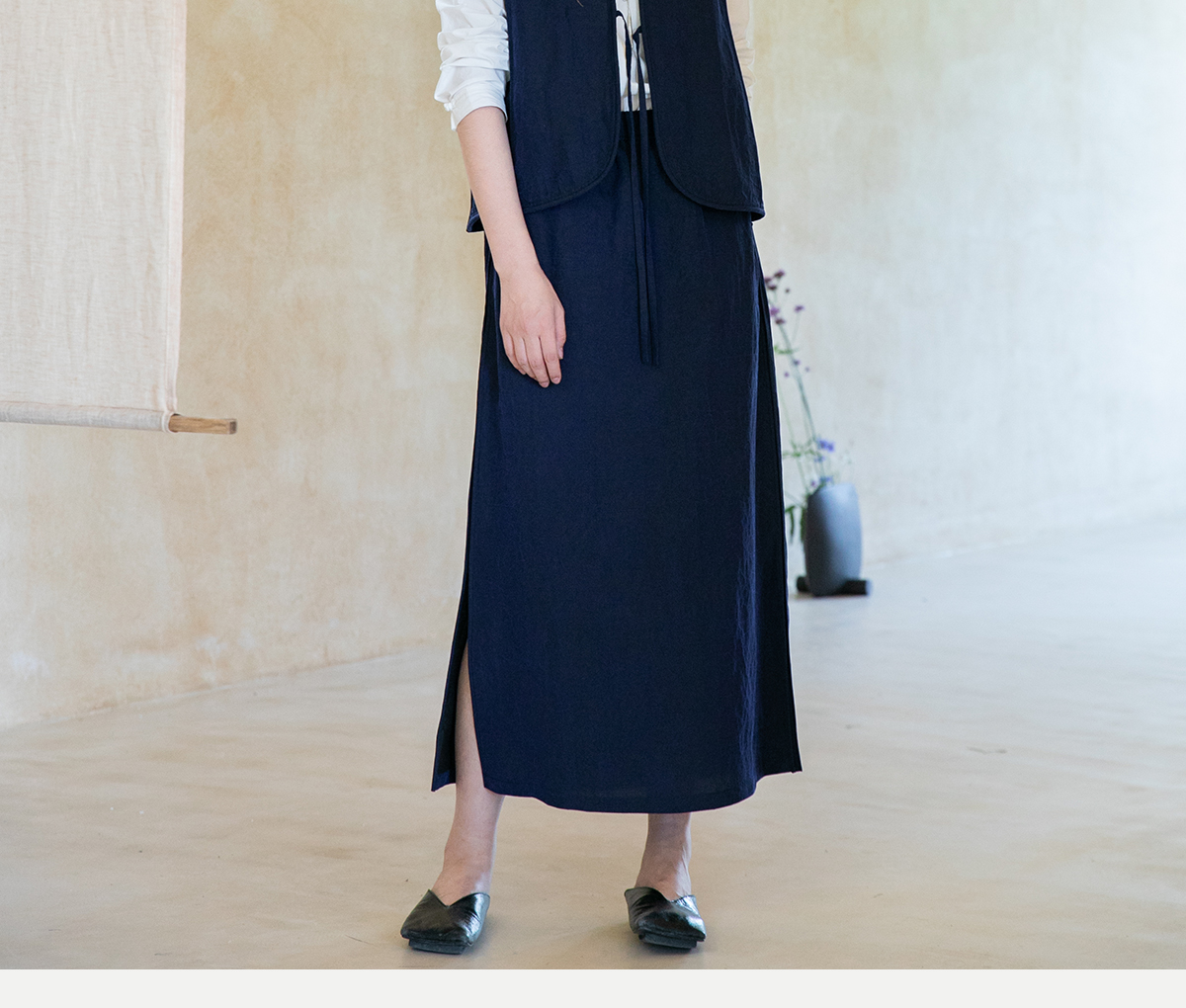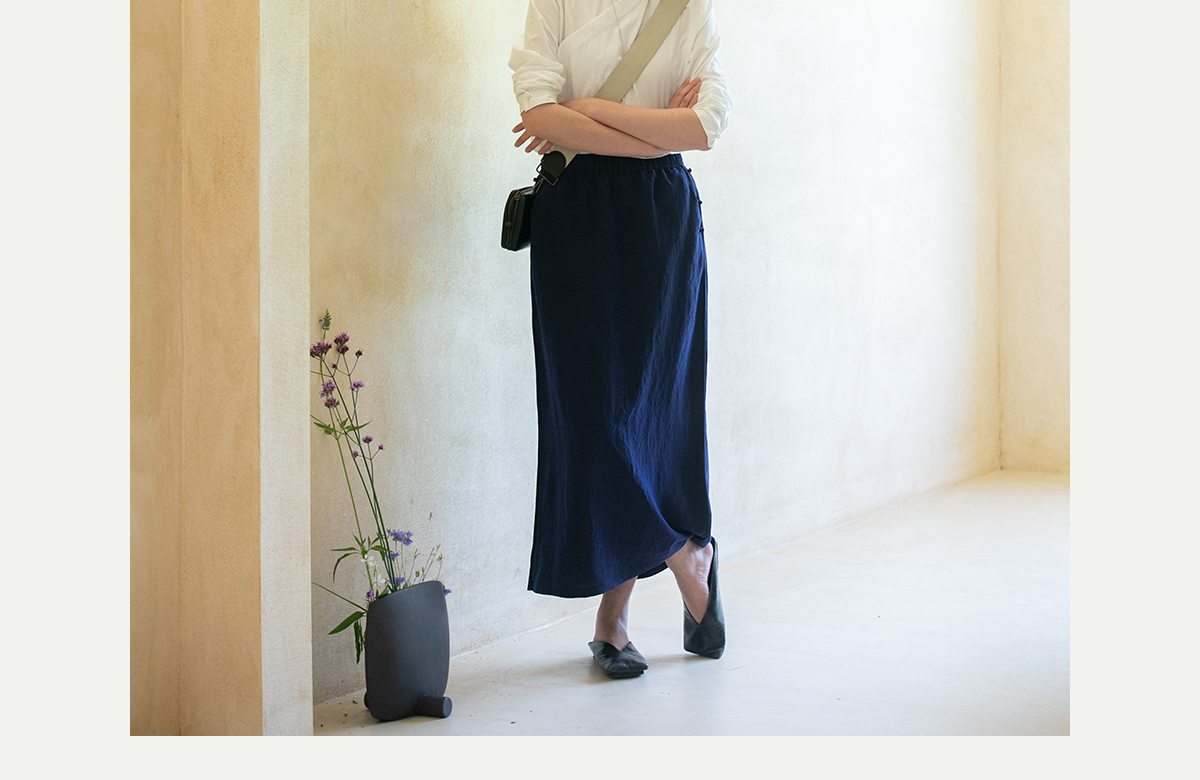 牧衣游原创 蓝龟裂纹香云纱半裙新款轻薄开叉复古百搭直筒裙 微雨
