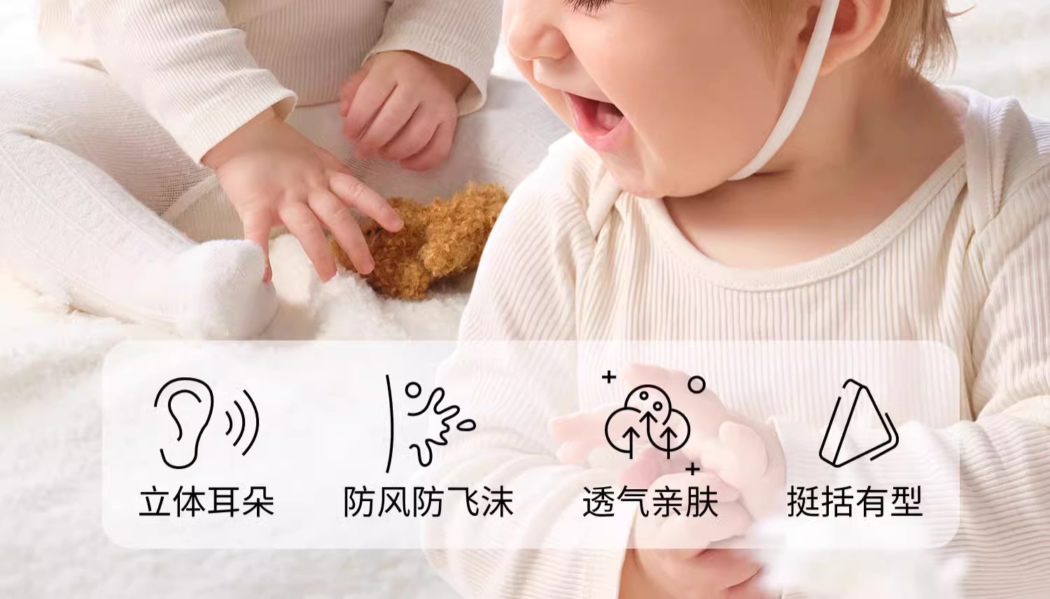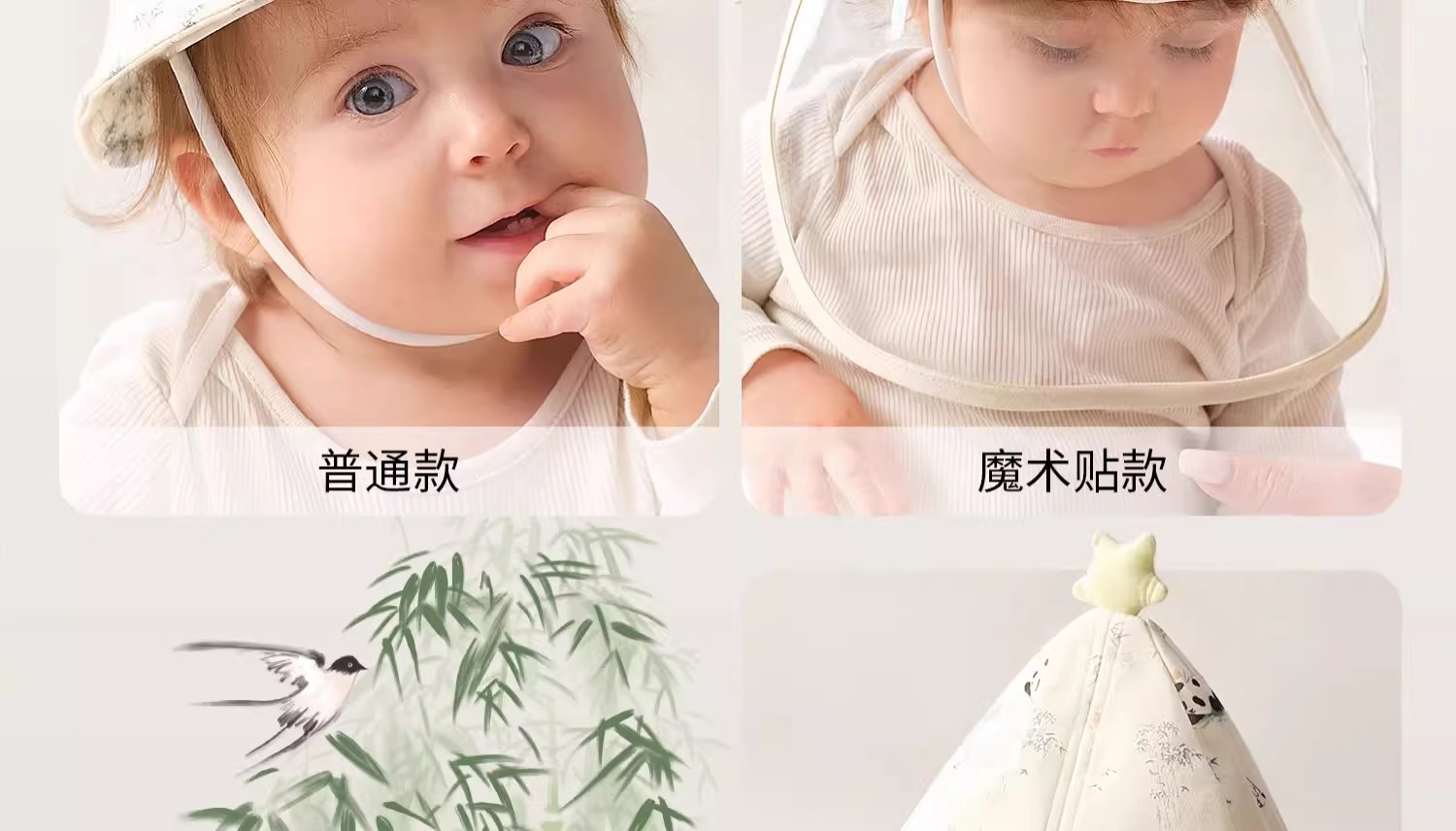 科巢新生婴儿0岁-1岁3月宝宝外出防护小月龄防疫面罩帽子口罩纯棉