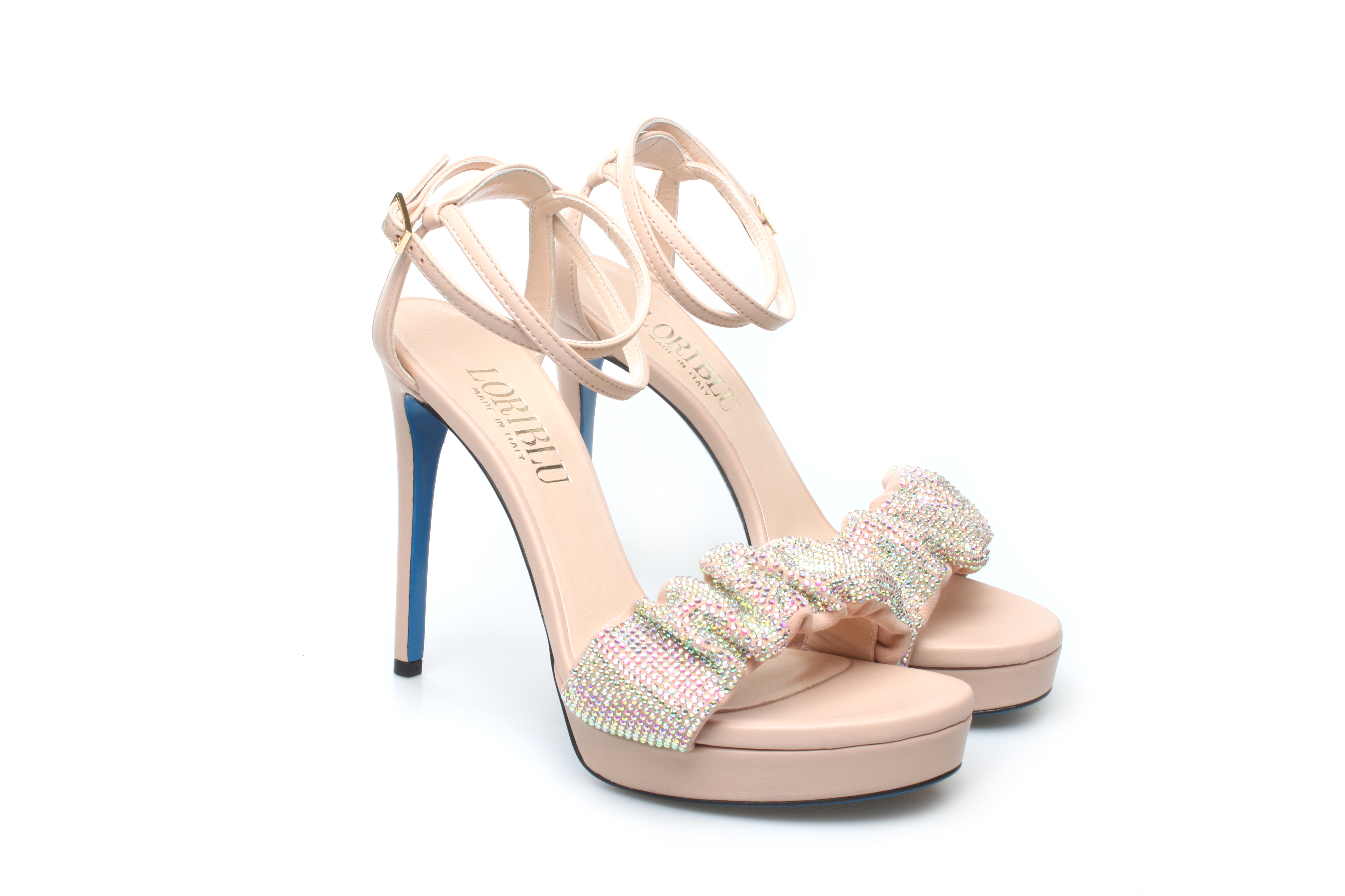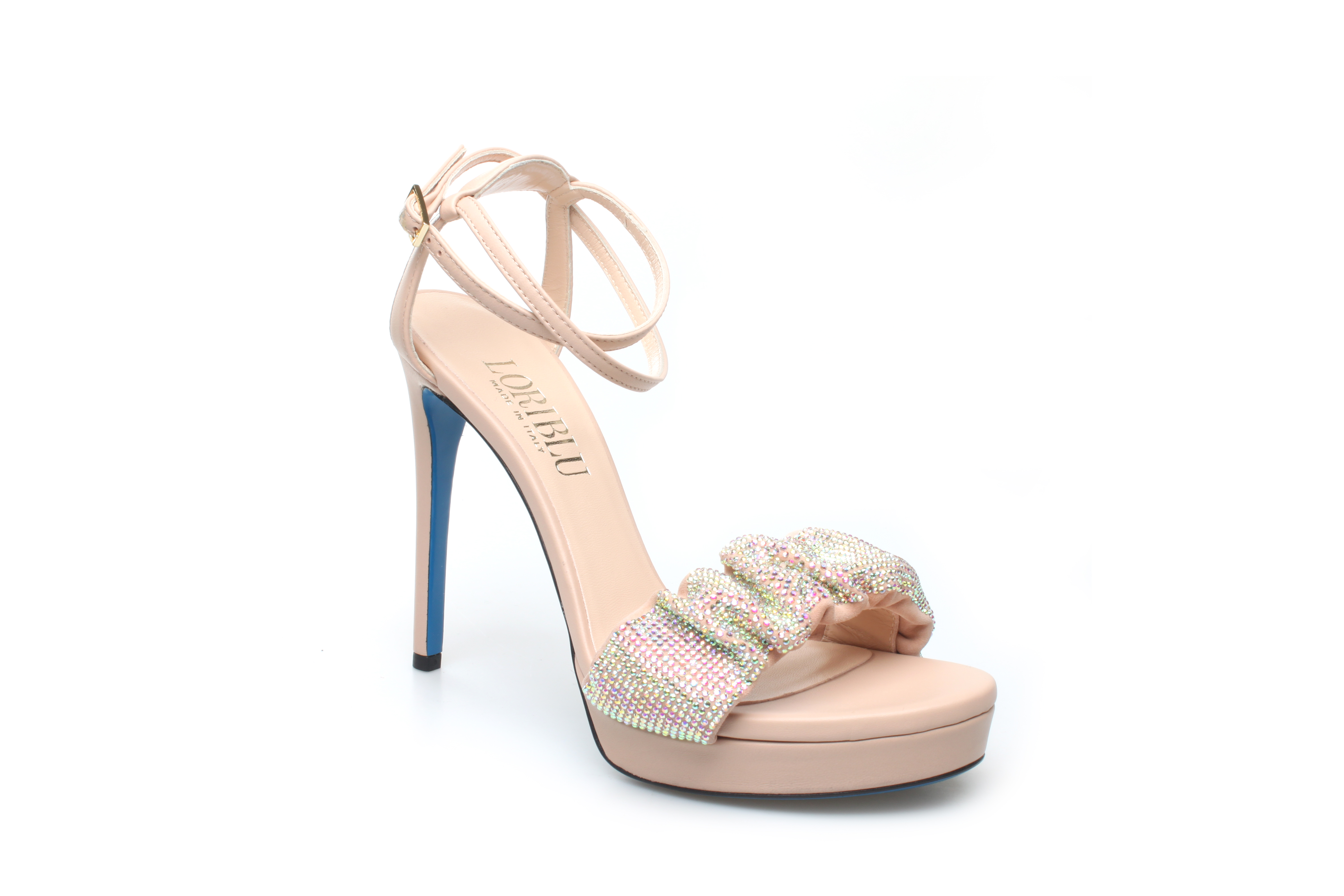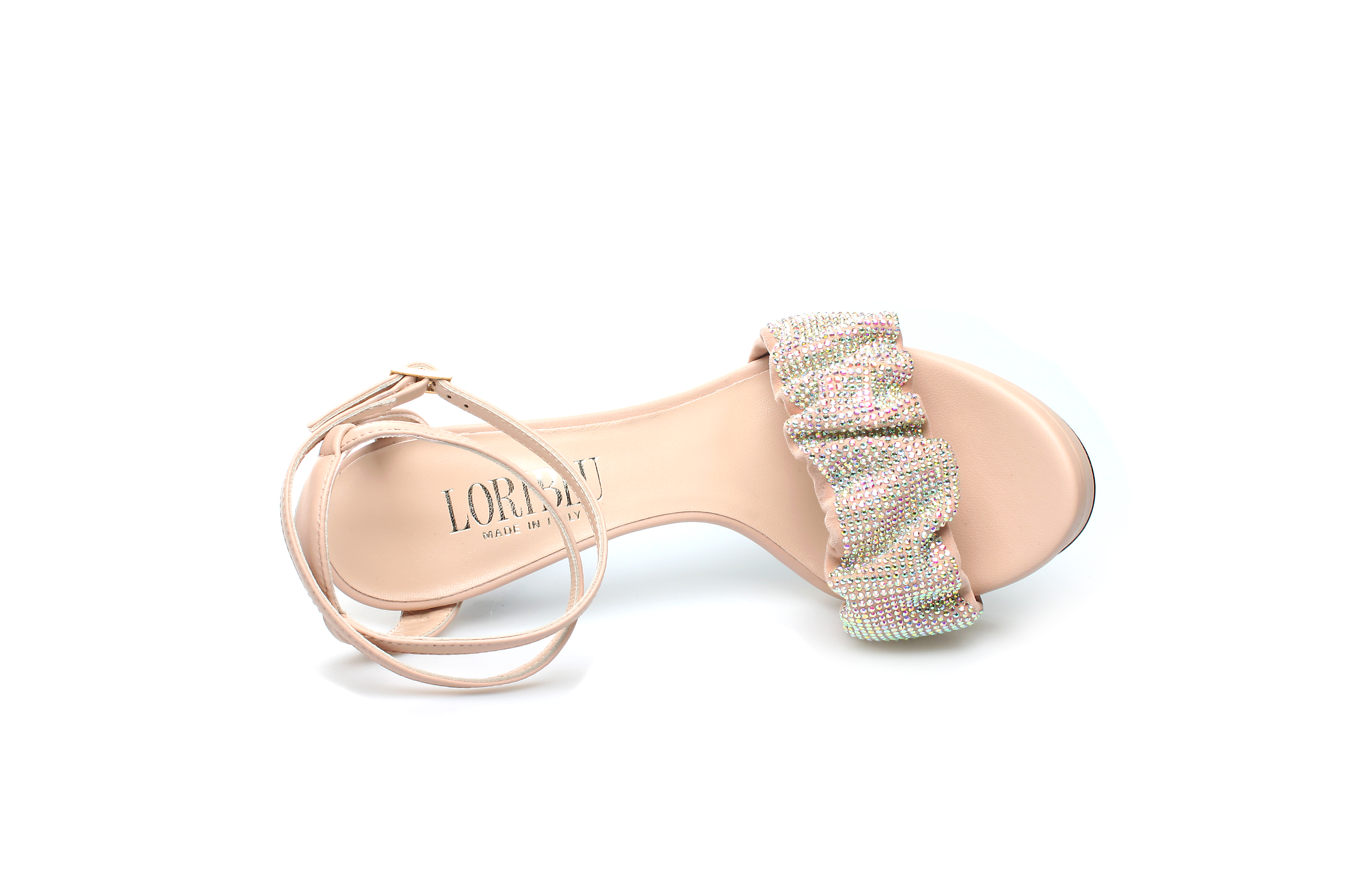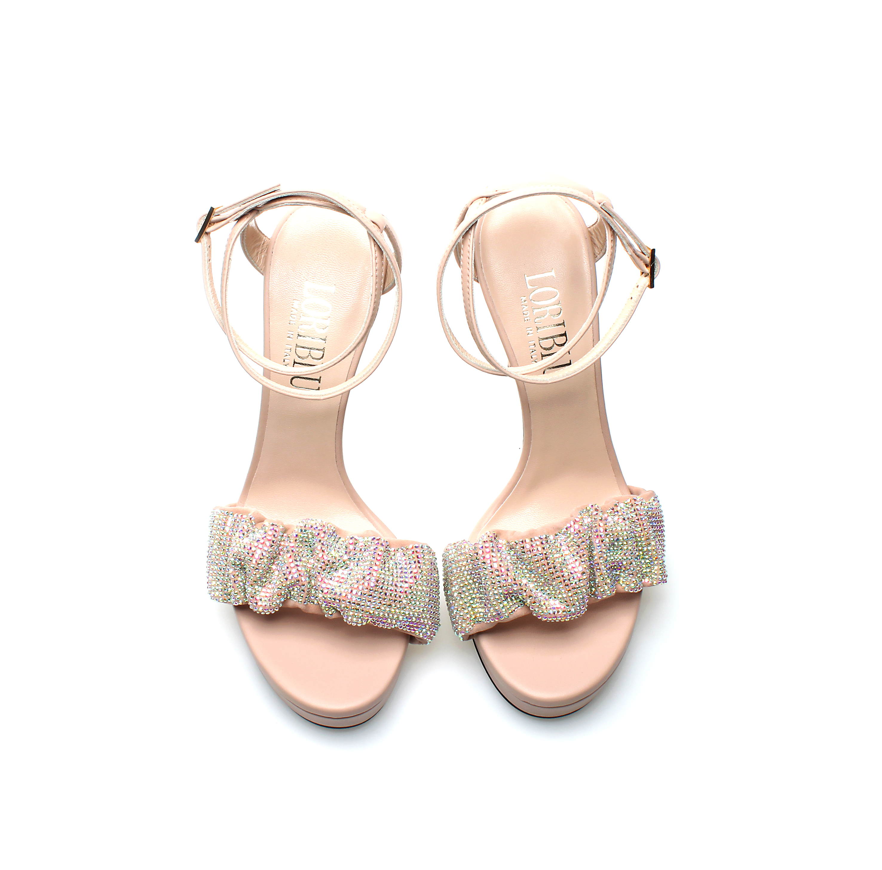 豪麟名鞋奥莱LORIBLU女鞋凉鞋羊皮革+施华洛世奇LR05202L杏色 原价6600元