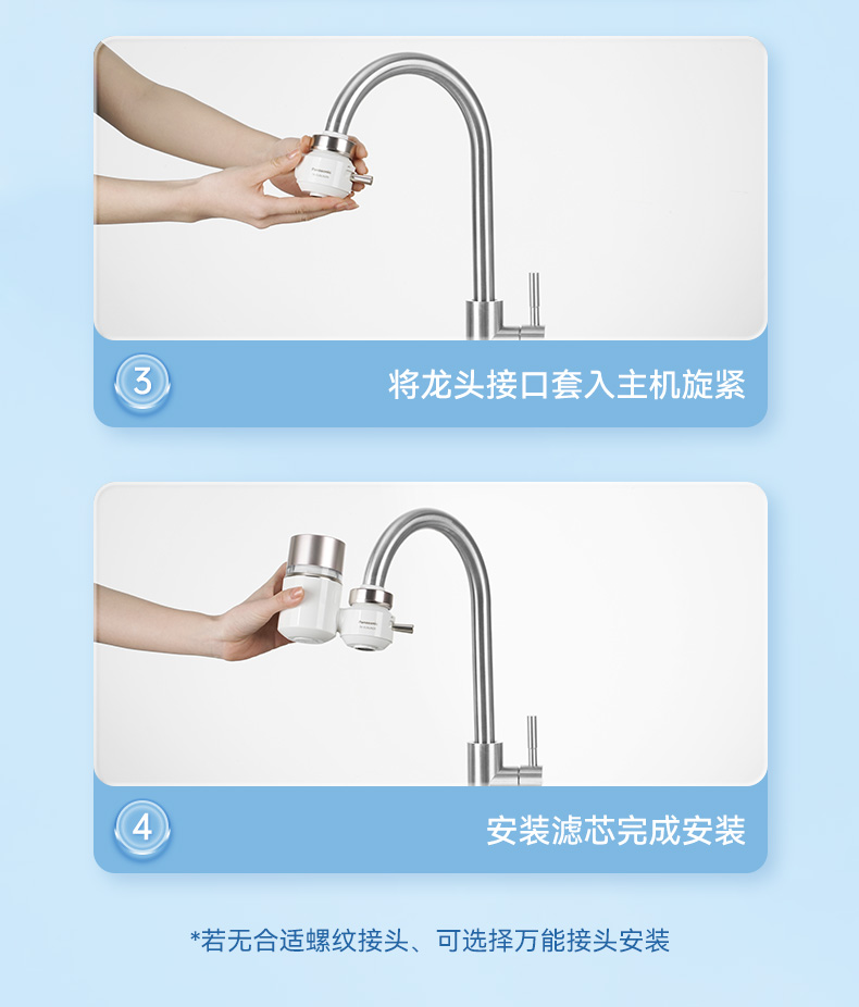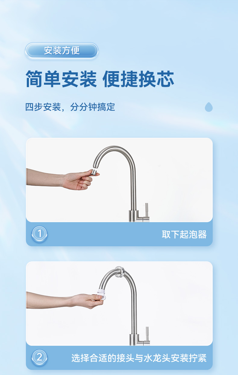 安装简单,适配绝大多数水龙头❗️如果不确定是否适配❗️一定先咨询下客服哈。