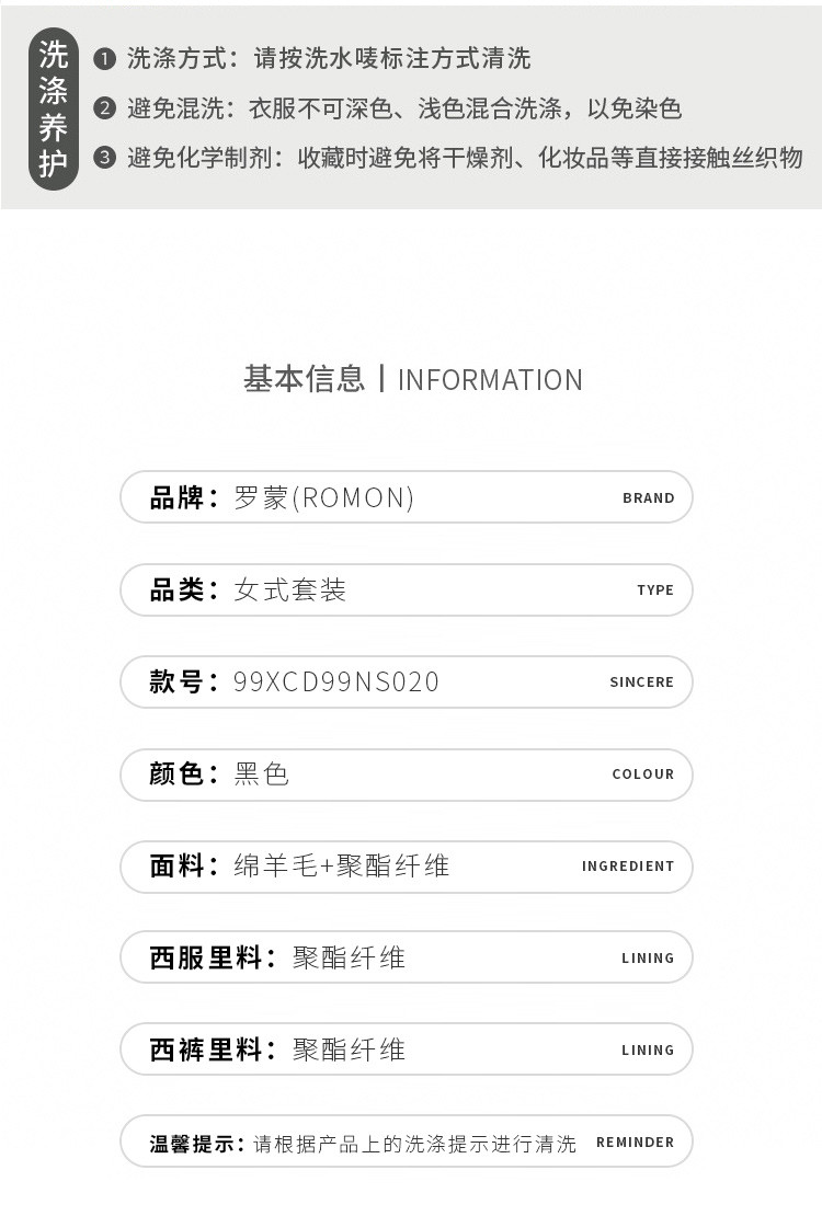 【西服上衣+裤子】罗蒙女士套装商务简约职业面试通勤套装两件套女