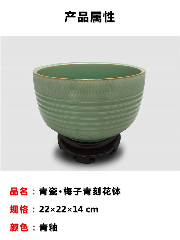 青瓷陈爱明《梅子青刻花钵》