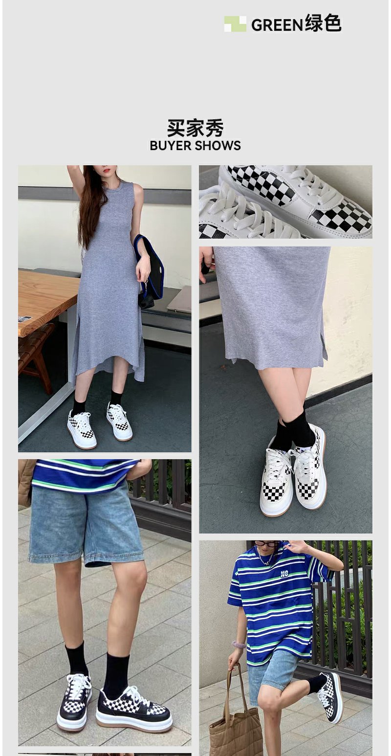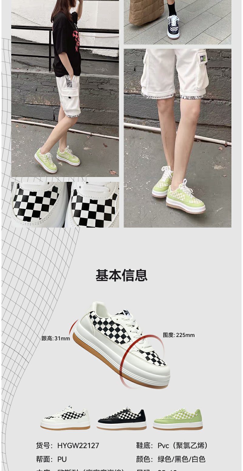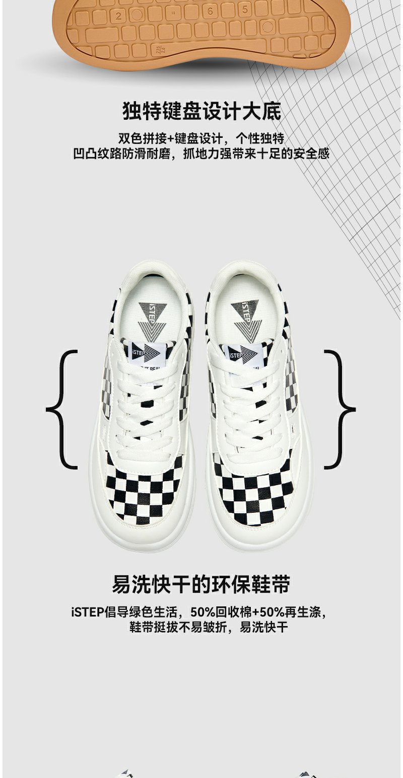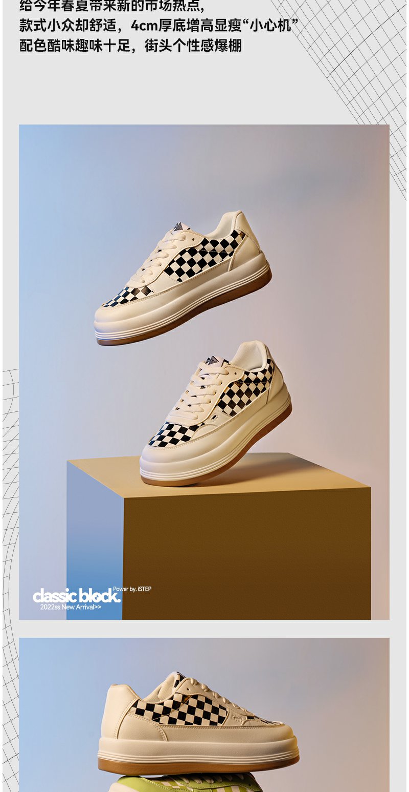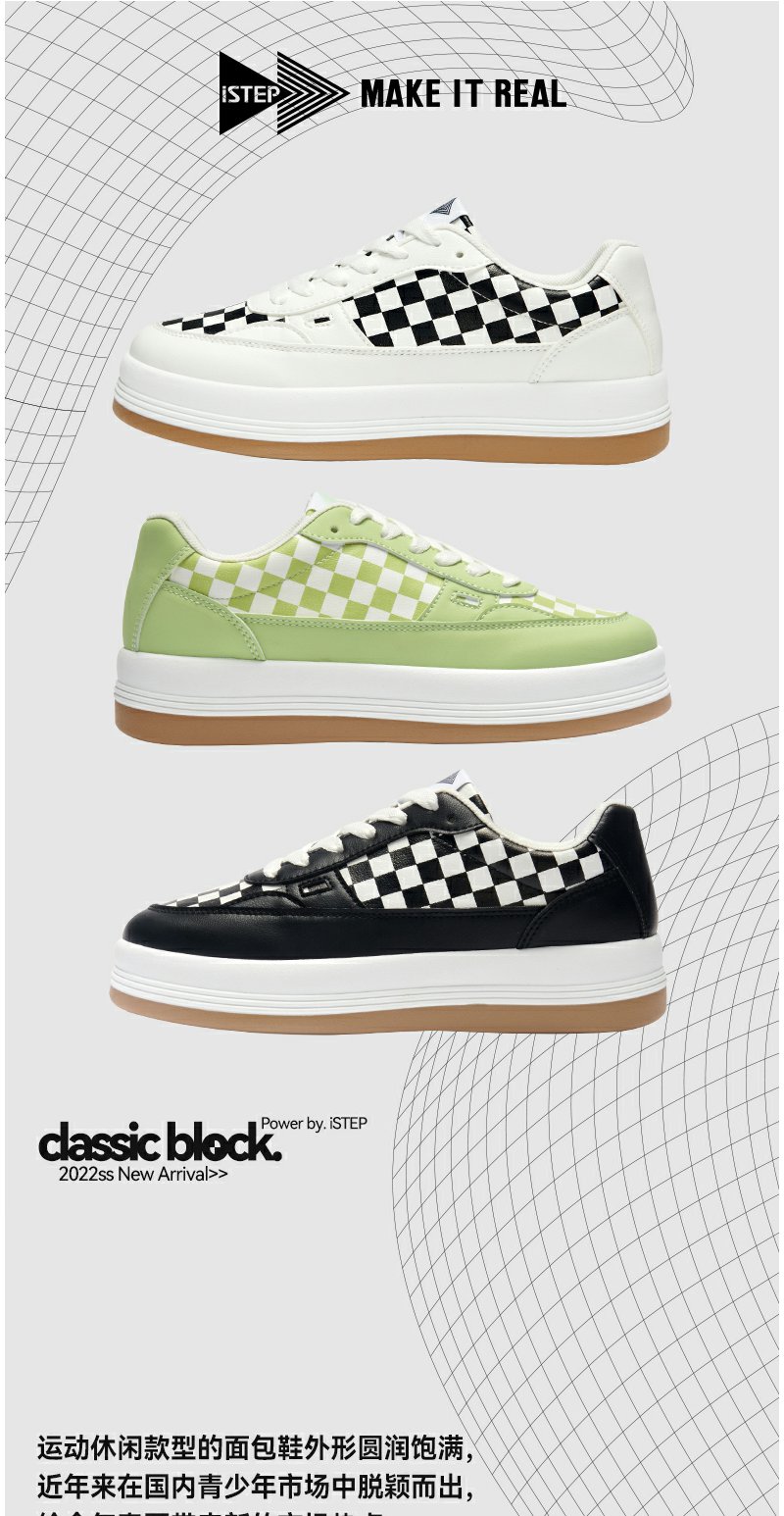iSTEP新品厚底棋盘格面包鞋