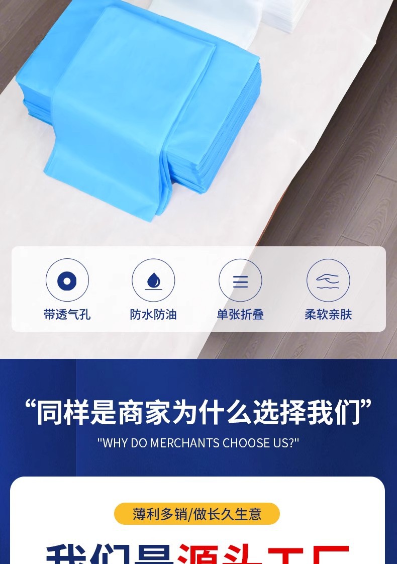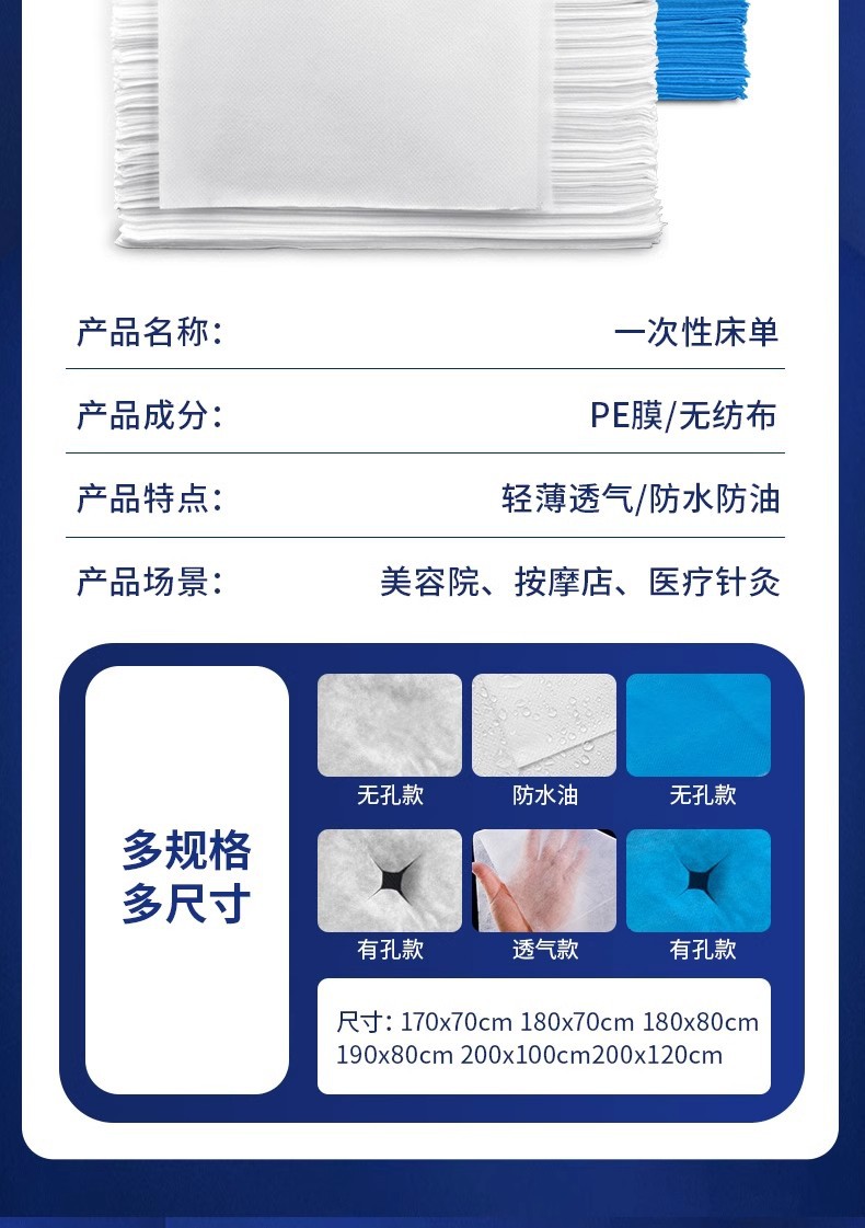 一次性床单美容院专用加厚防水防油透气按摩床单带洞无纺布100张