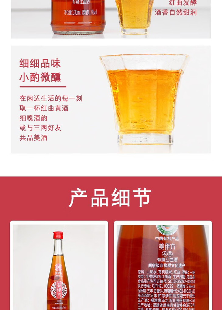 惠泽龙有机银标红曲黄酒五年7度半甜型黄酒小甜水一盒赠送米酒