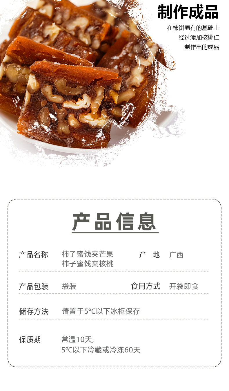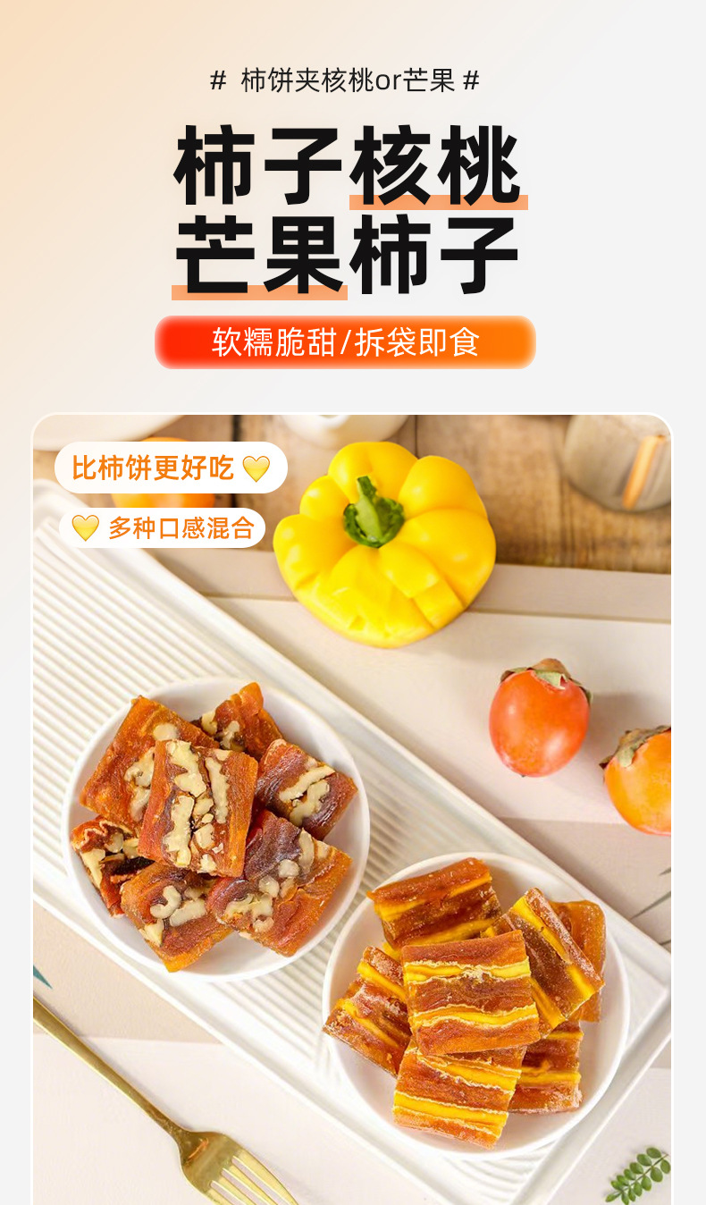 【一口两“味”❗️广西柿饼夹核桃仁】甄选品质原料制作,软糯脆甜/拆袋即食,中和两种美食,给您带来不一样的感觉,独立包装柿饼卷核桃仁糕切片,柿子芒果干下午茶零食L