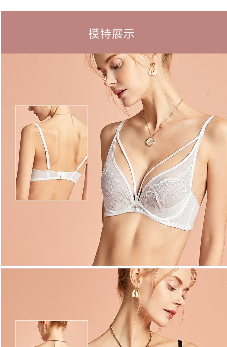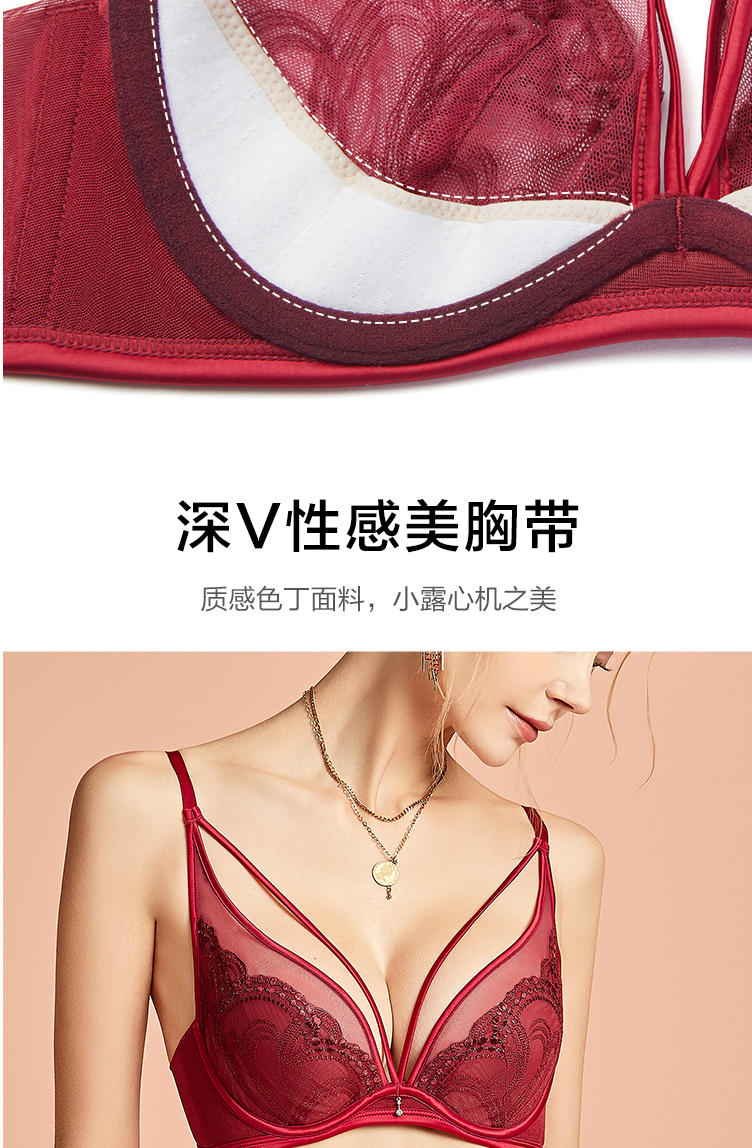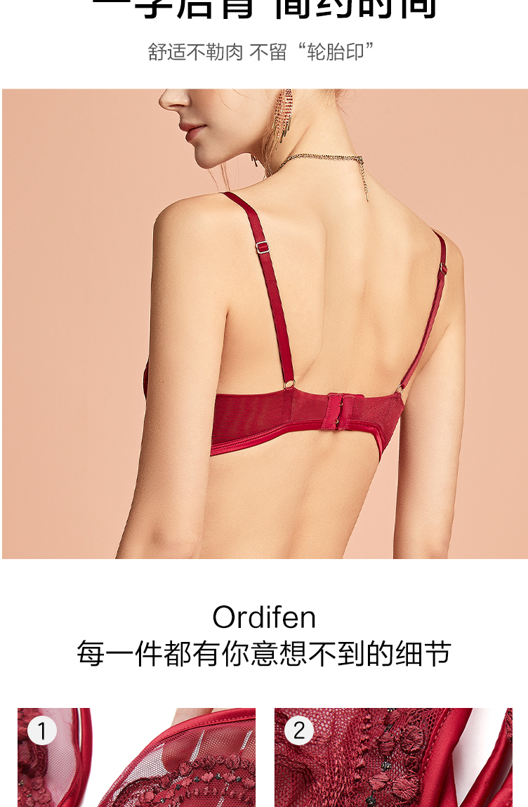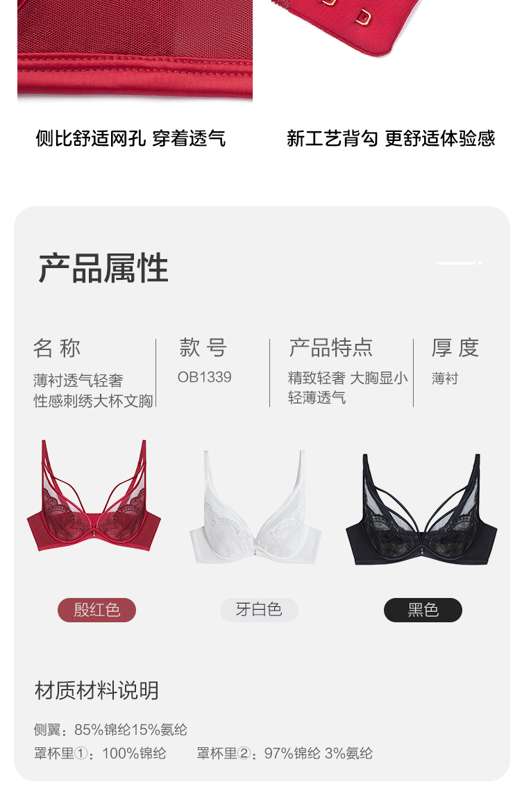 欧迪芬内衣女大胸显小胸罩性感深V聚拢上托防下垂蕾丝文胸OB1339