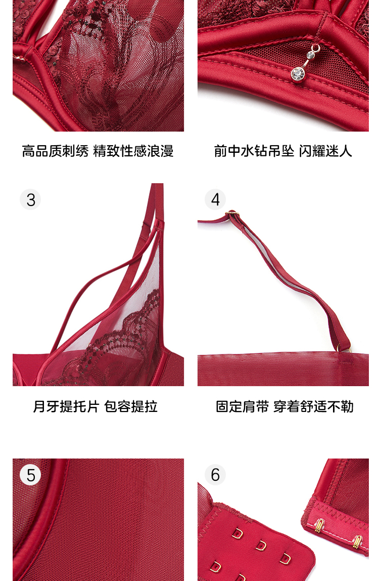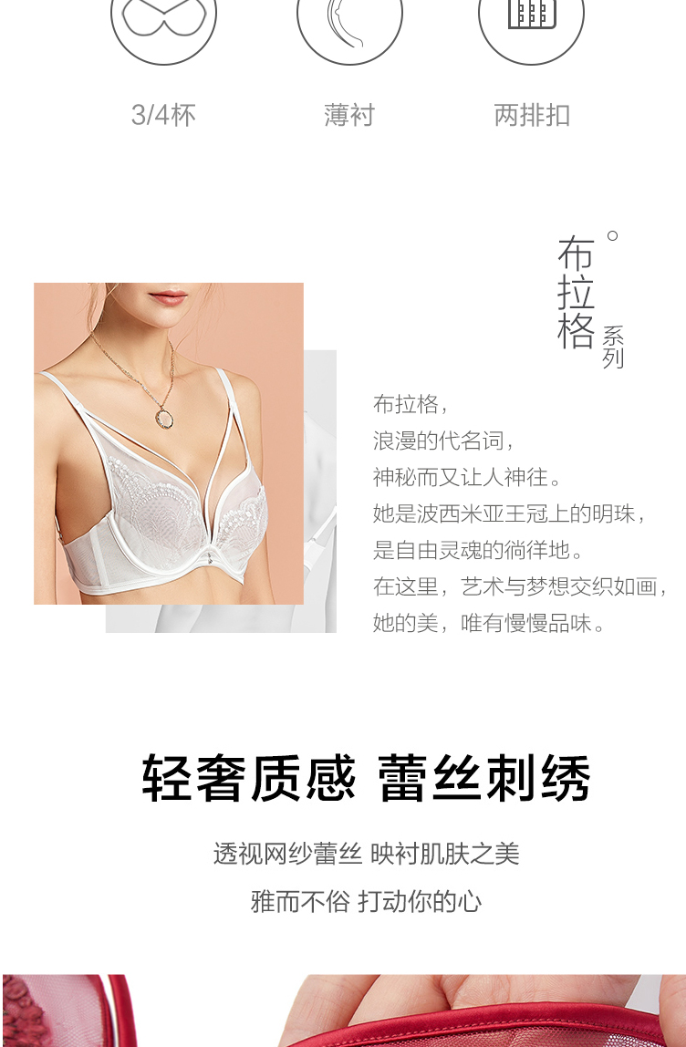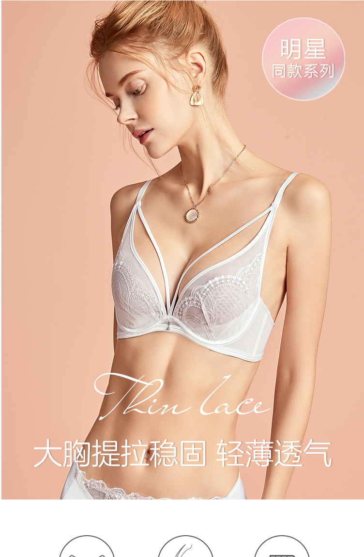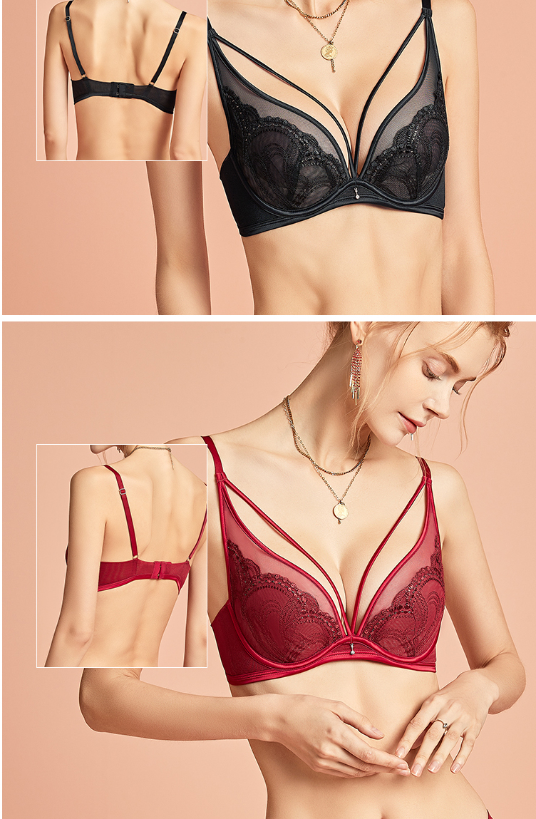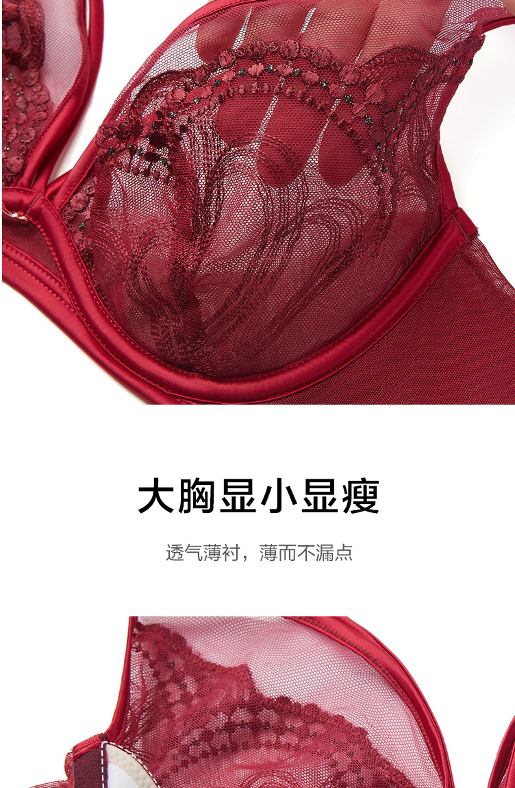 欧迪芬内衣女大胸显小胸罩性感深V聚拢上托防下垂蕾丝文胸OB1339