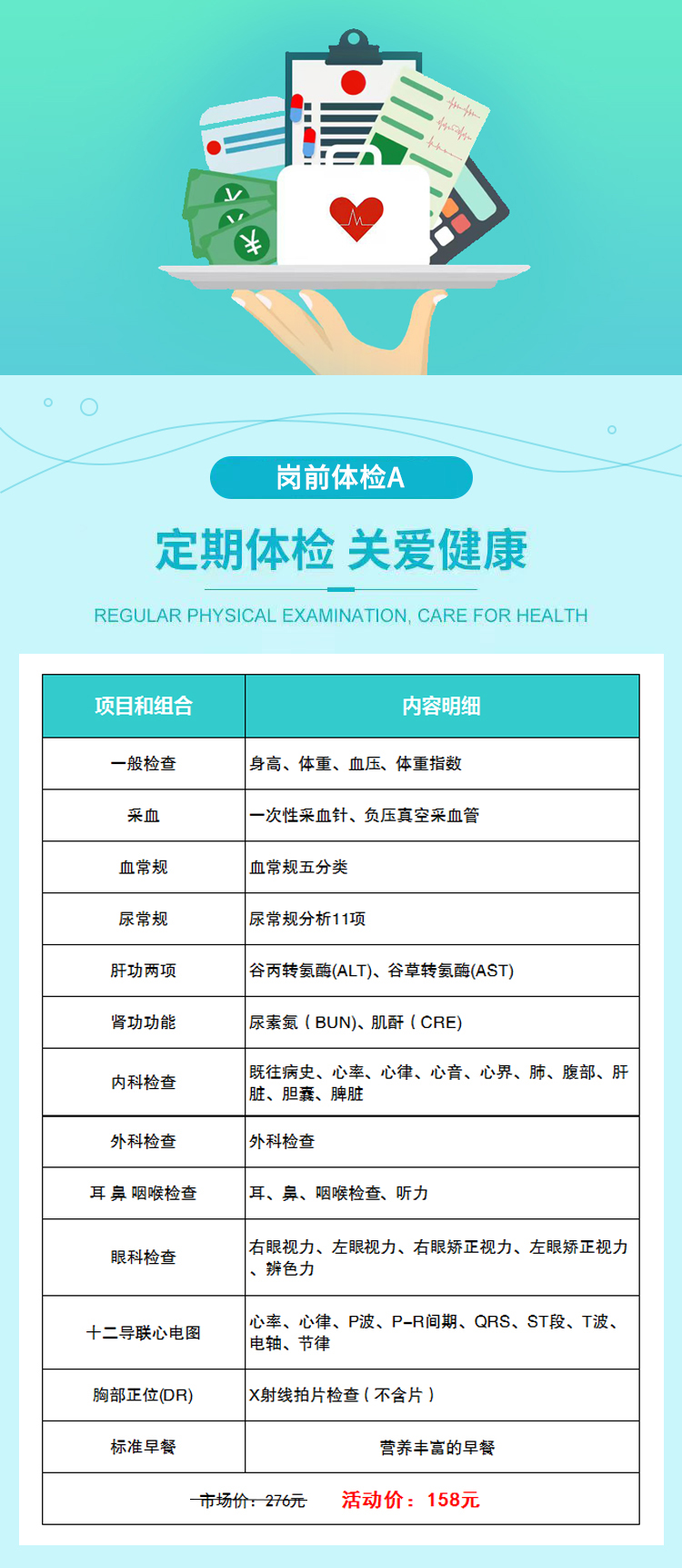 【岗前体检套餐A】 轻松入职体检套餐 血尿常规 肝肾功能 多项检查 门店通用卡劵核销