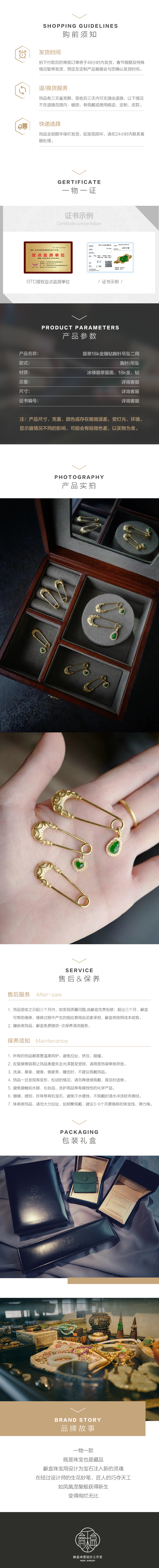 龢盒原创 18k金镶钻翡翠别针吊坠二用 4款