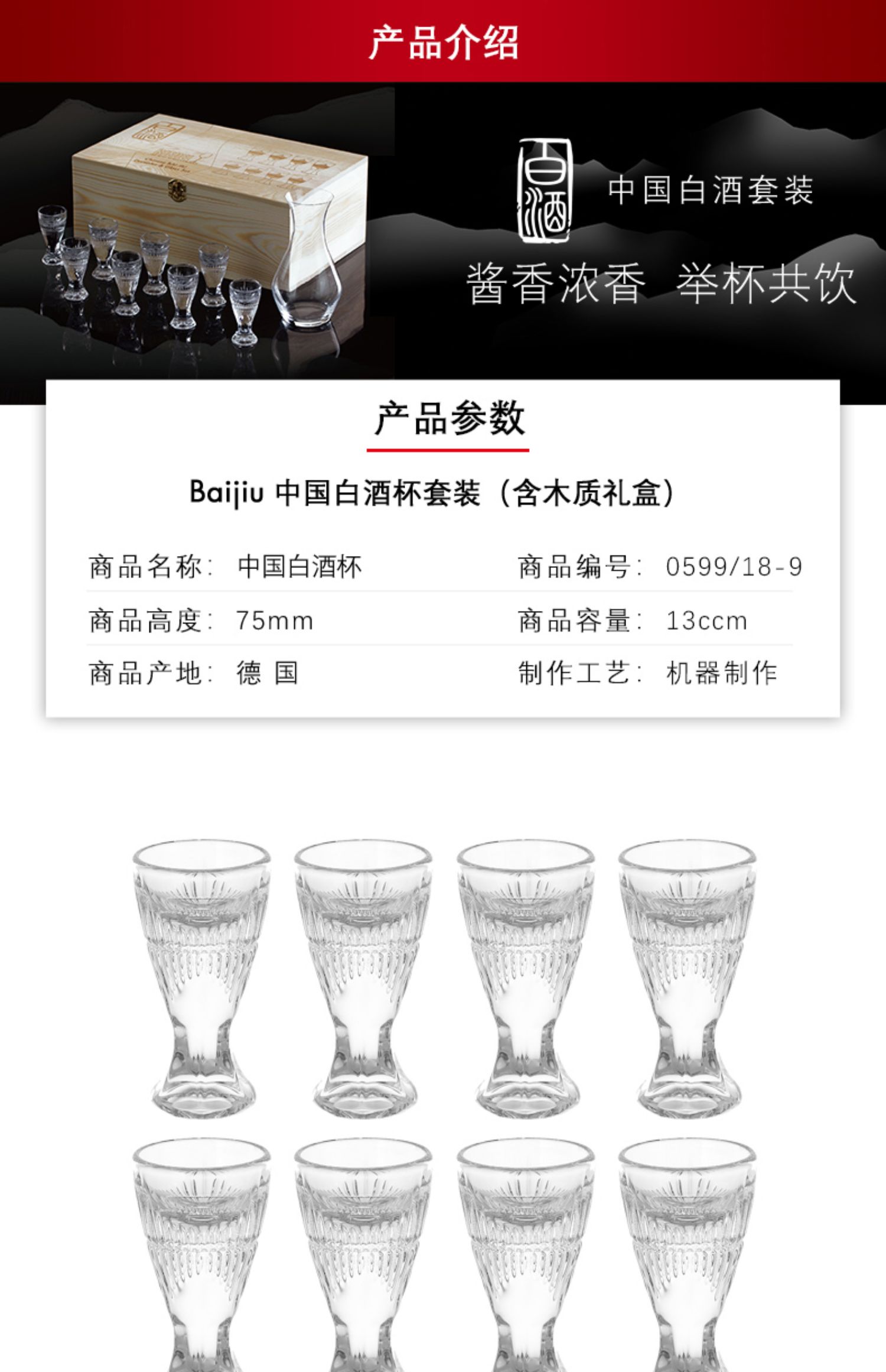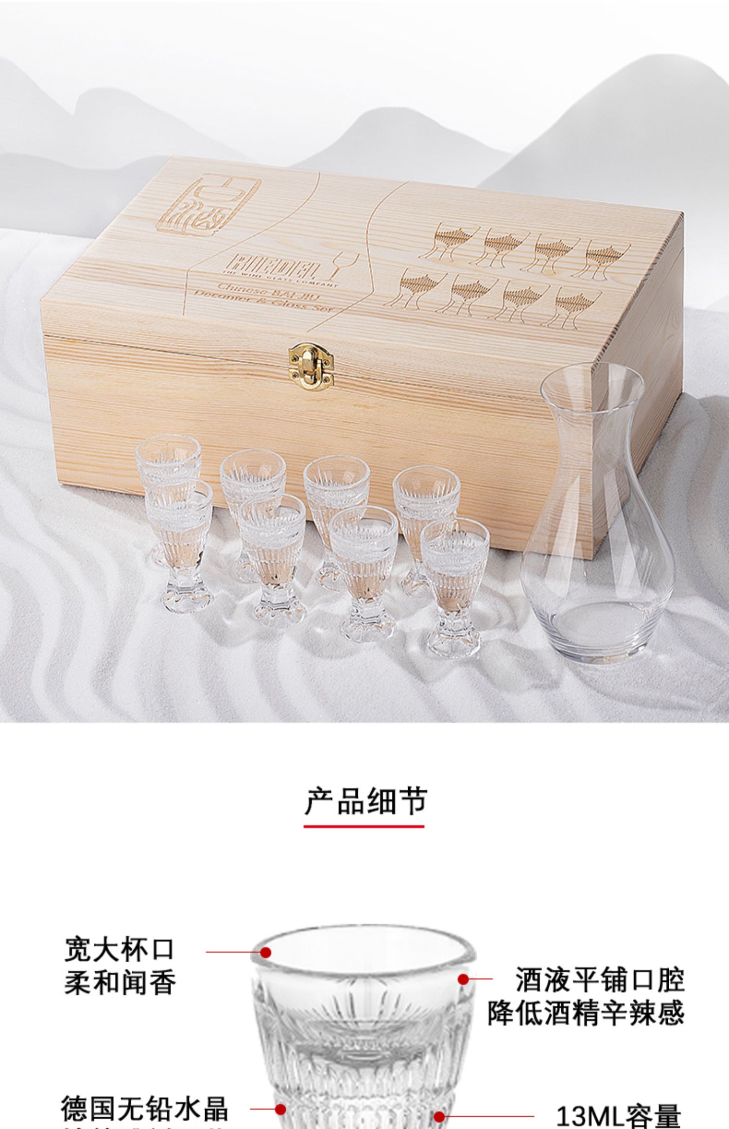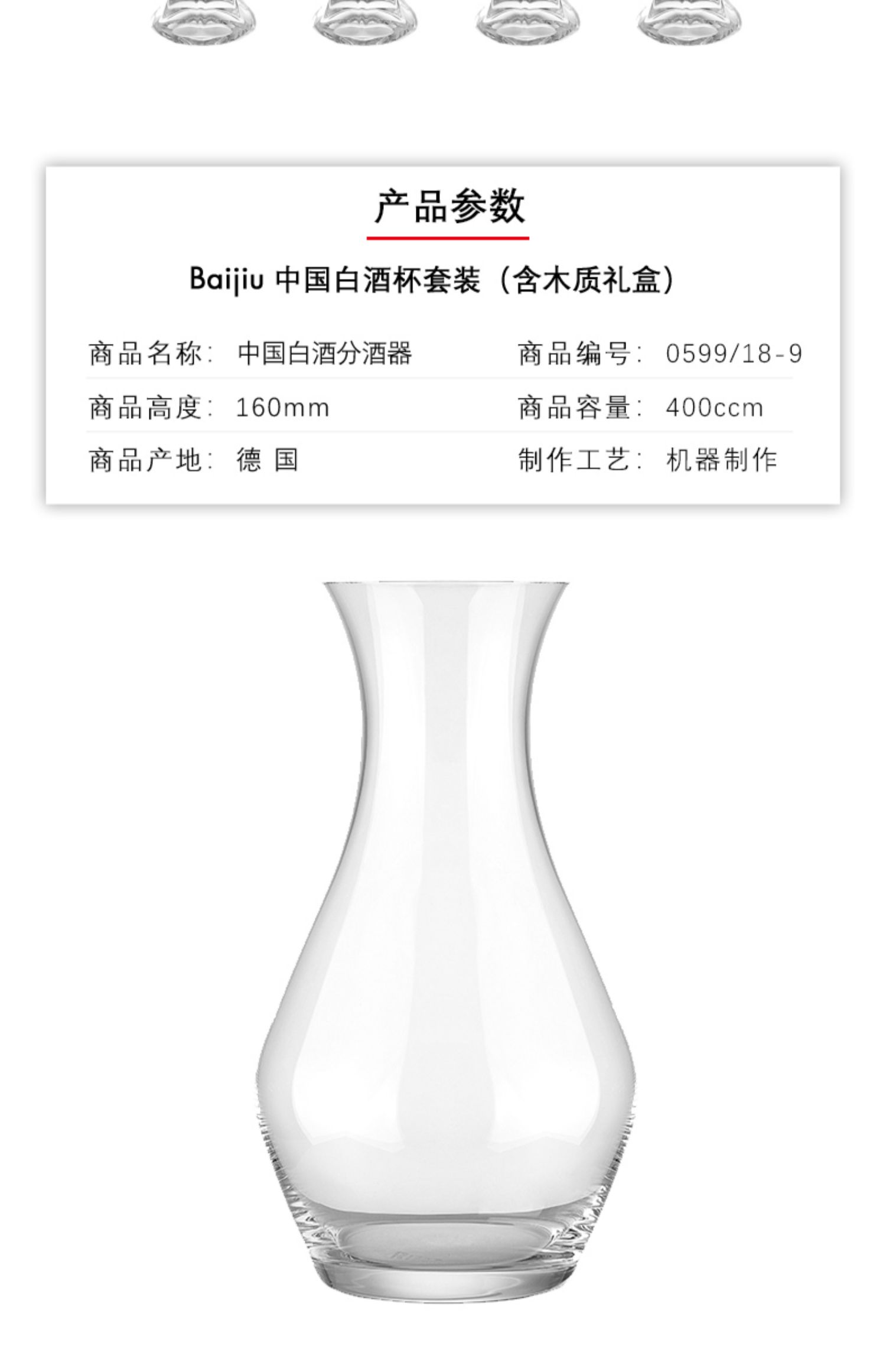 【样品特惠4折,仅1套,无货退款】奥地利RIEDEL白酒杯套装家用分酒器小烈口杯套装 8支白酒杯+分酒壶套装