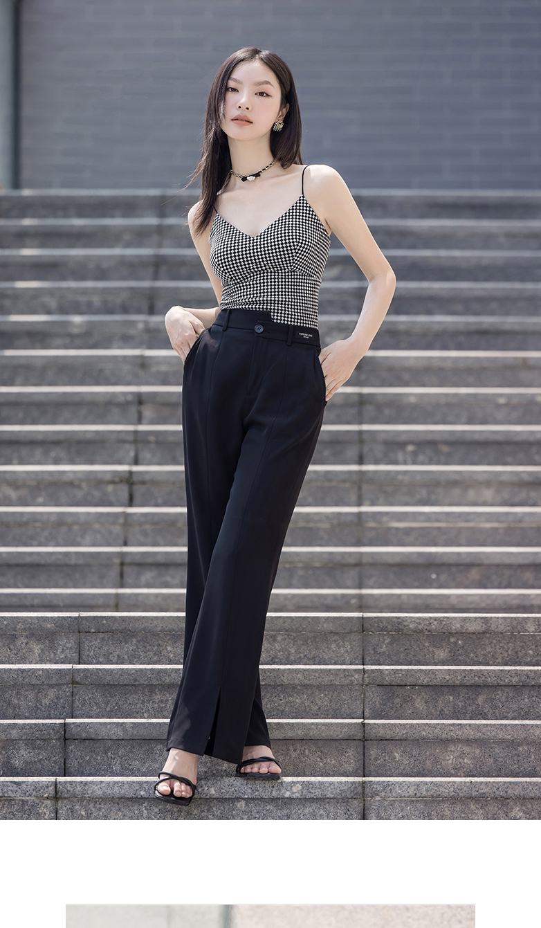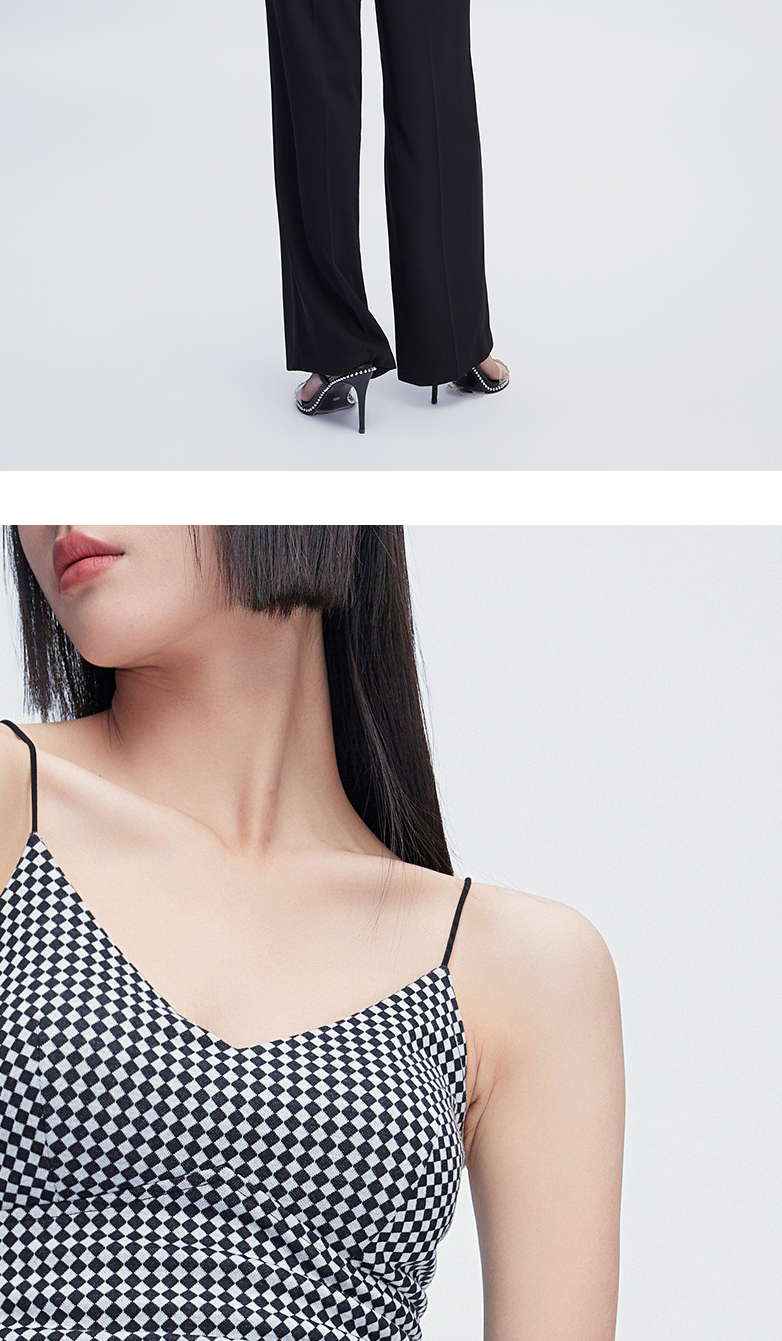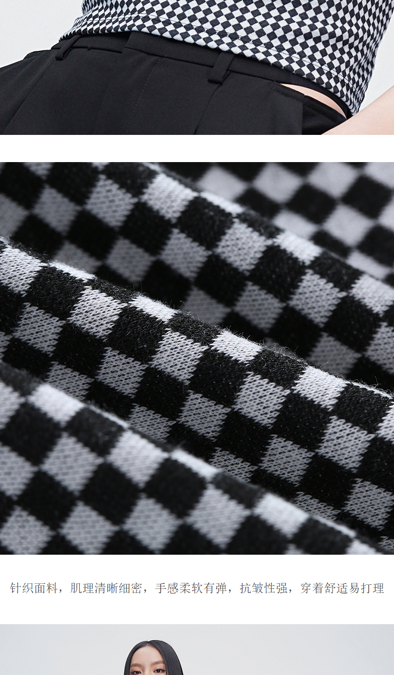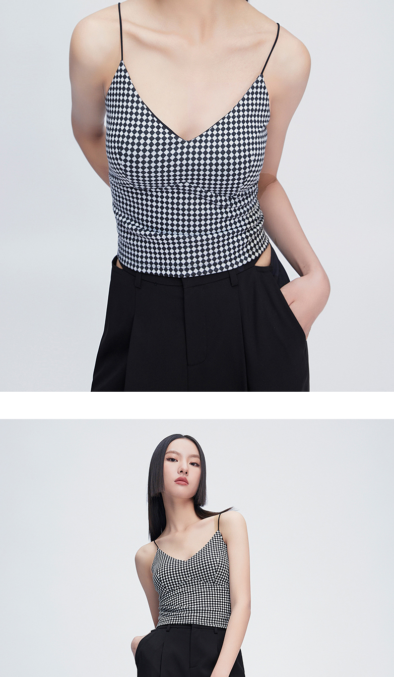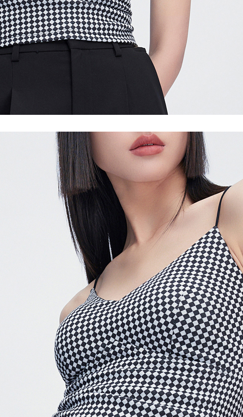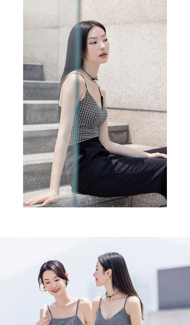 FIVE PLUS2022新款女夏装复古格纹针织背心女修身内搭小众吊带衫2WN2014370
