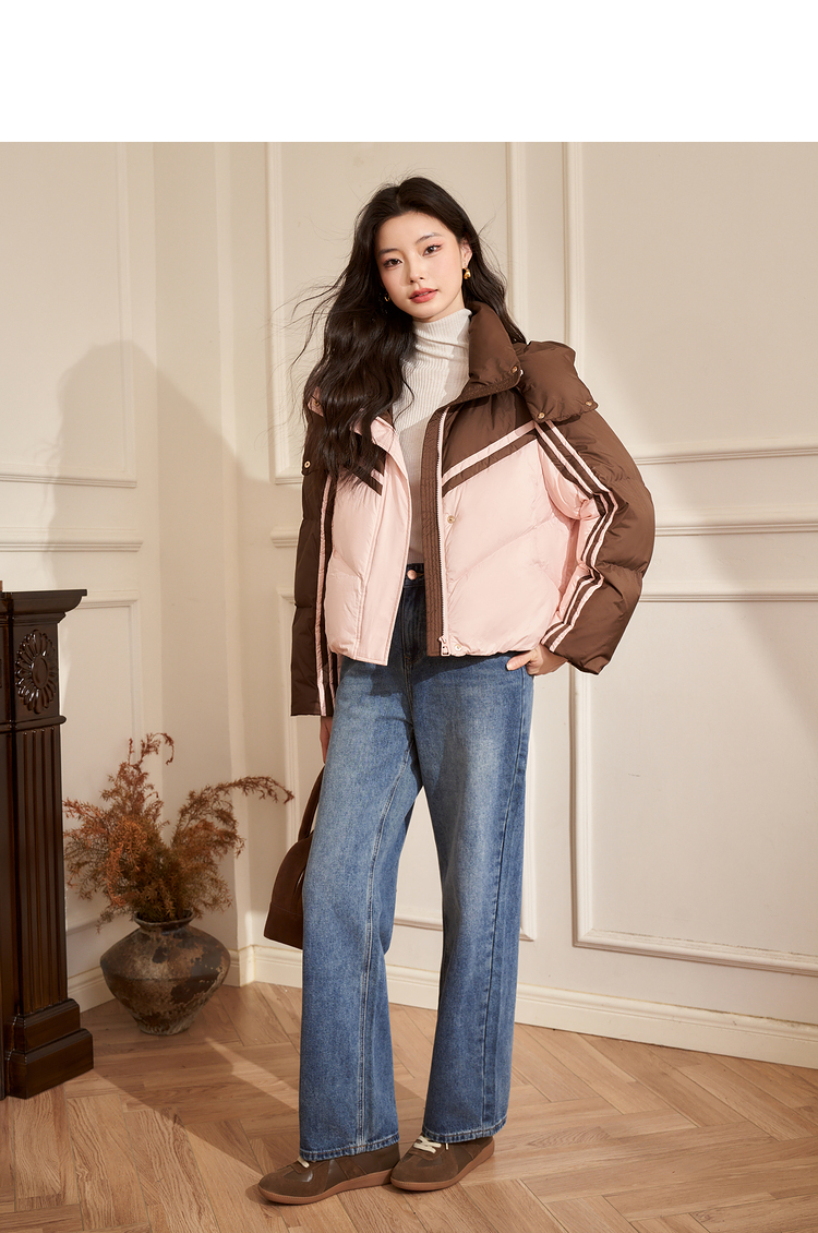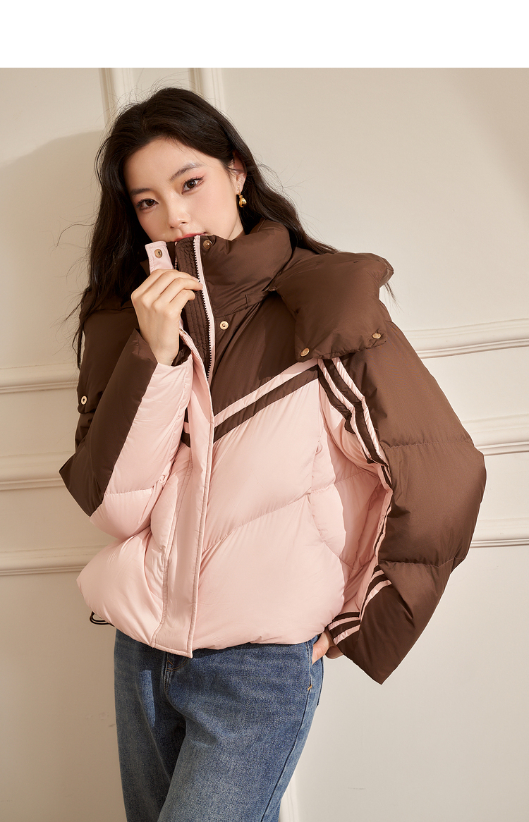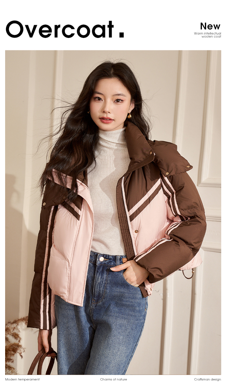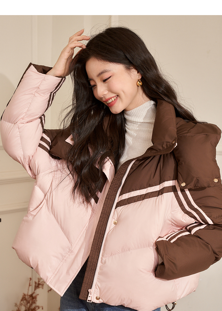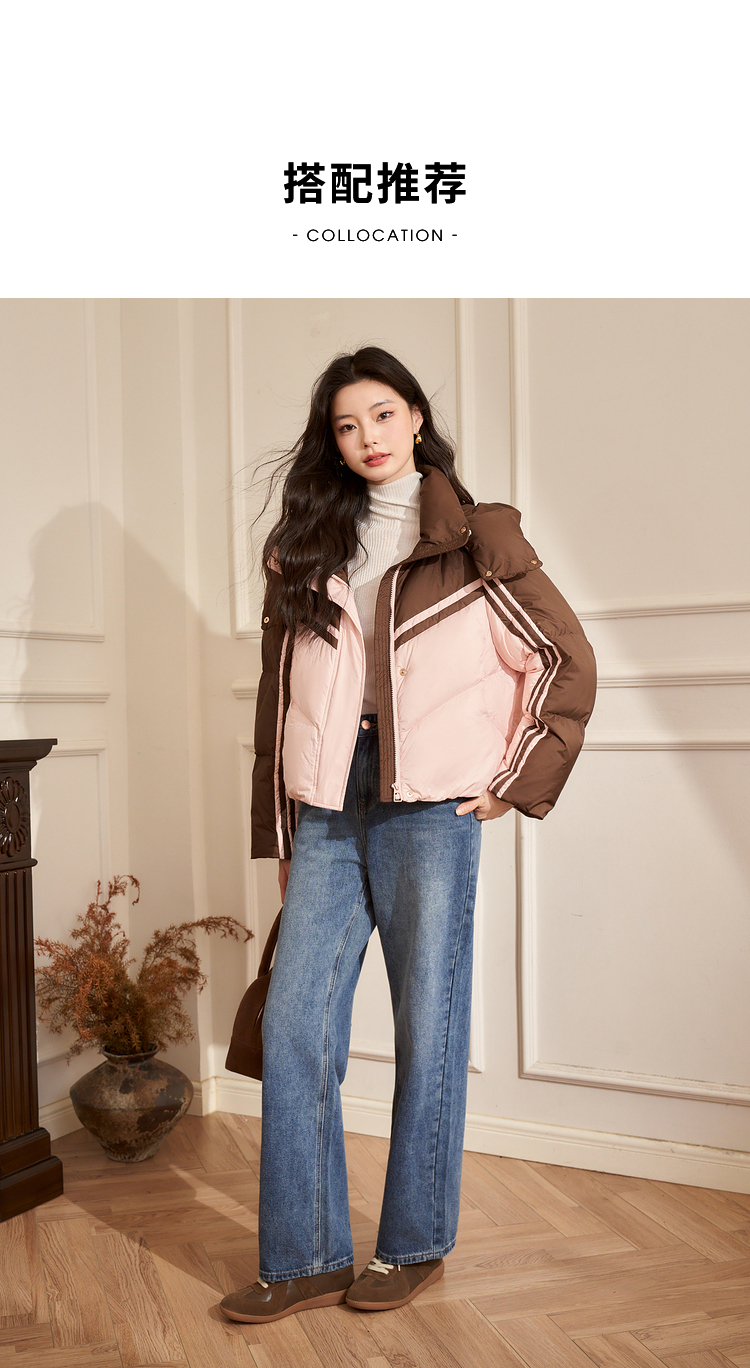 美拉德撞色羽绒服女秋冬新款立领加厚保暖短款外套小个子V2438482