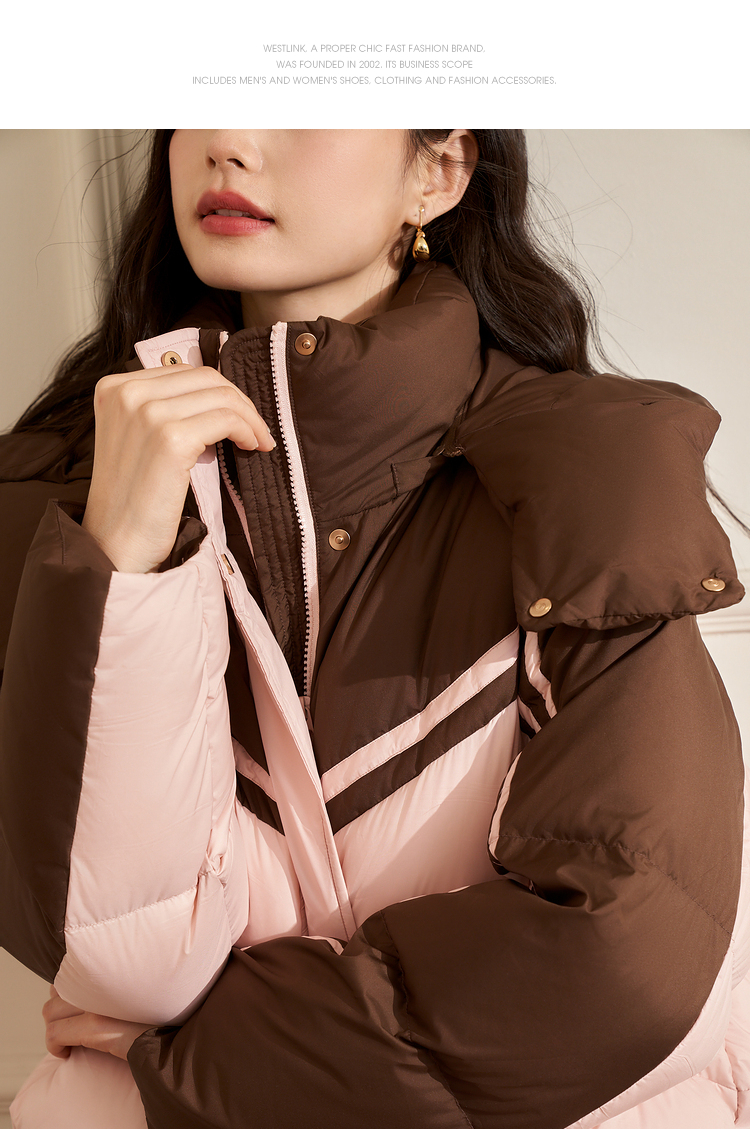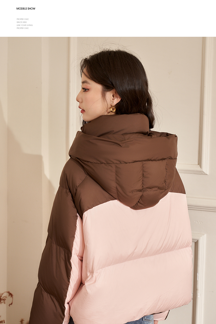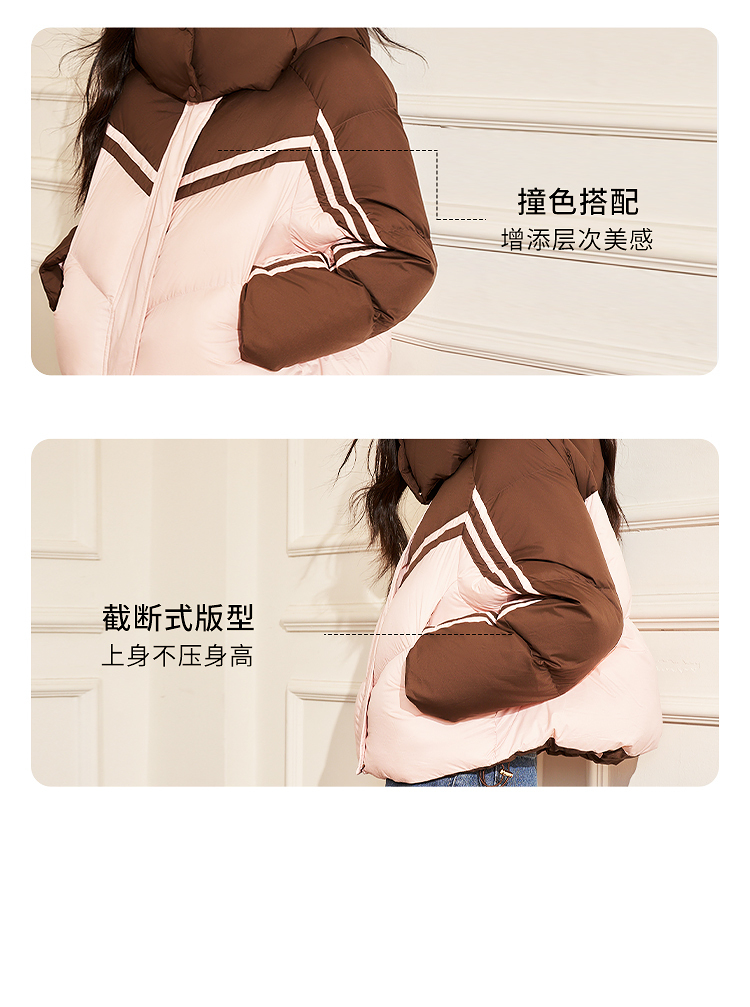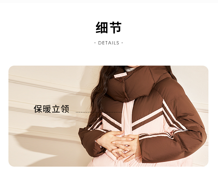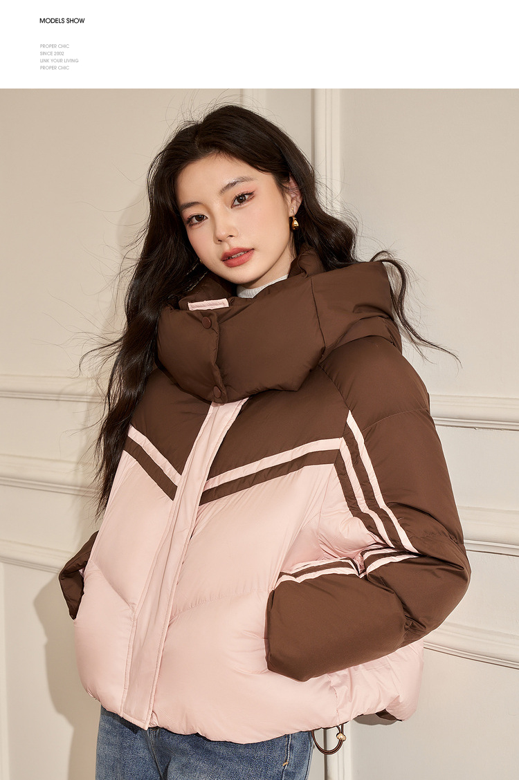 美拉德撞色羽绒服女秋冬新款立领加厚保暖短款外套小个子V2438482