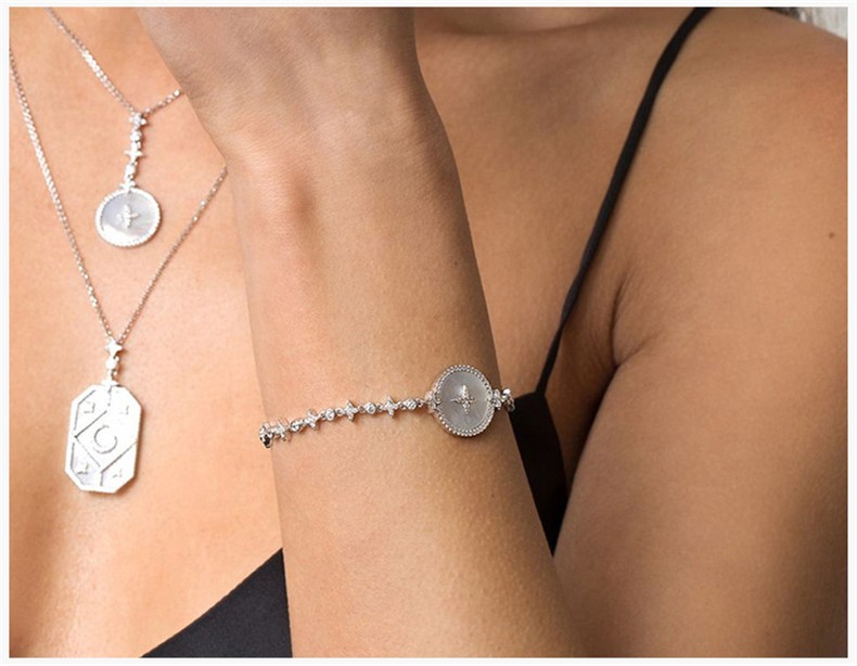 APM MONACO 女士银镶晶钻星星艺术手链配母贝 AB3582XNA 摩纳哥
