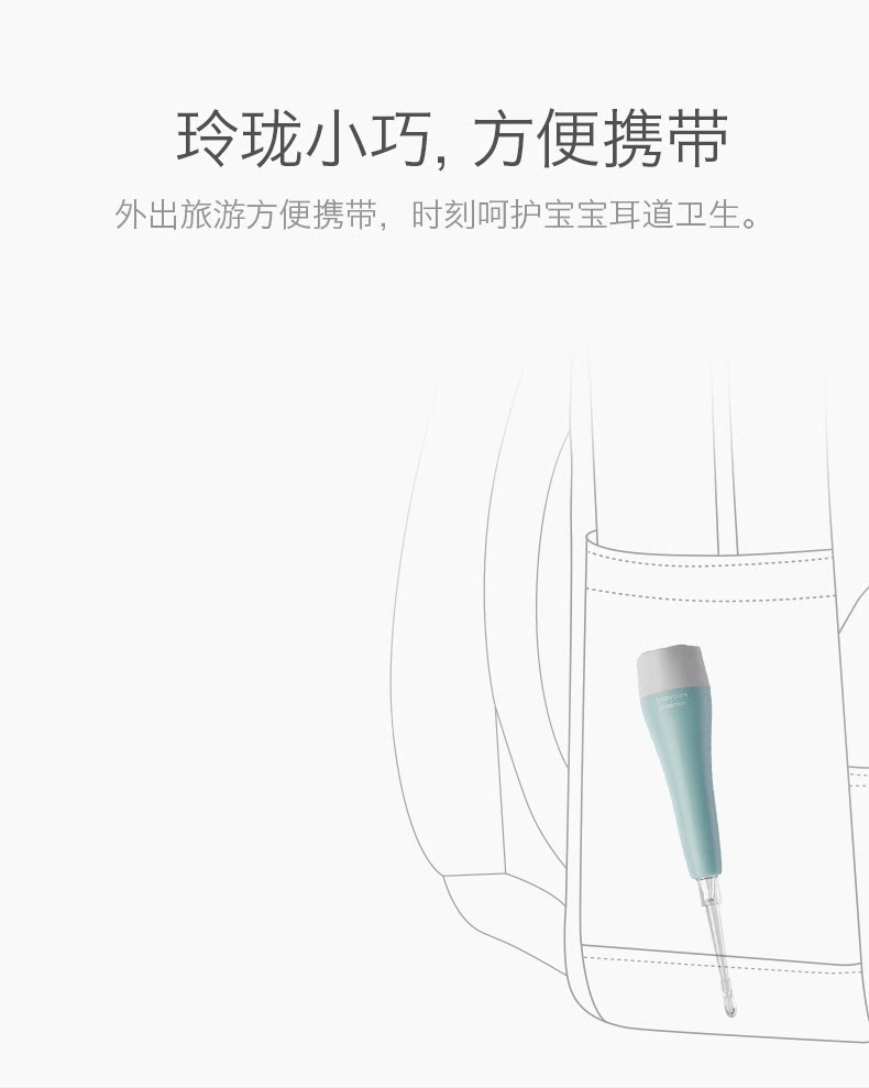 babycare婴儿发光带灯挖耳勺儿童掏耳朵勺宝宝安全软头挖耳器绿色