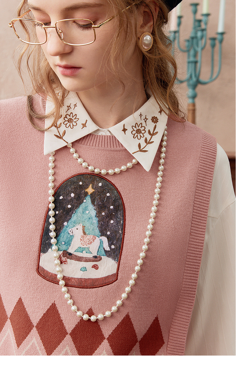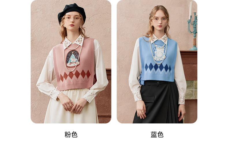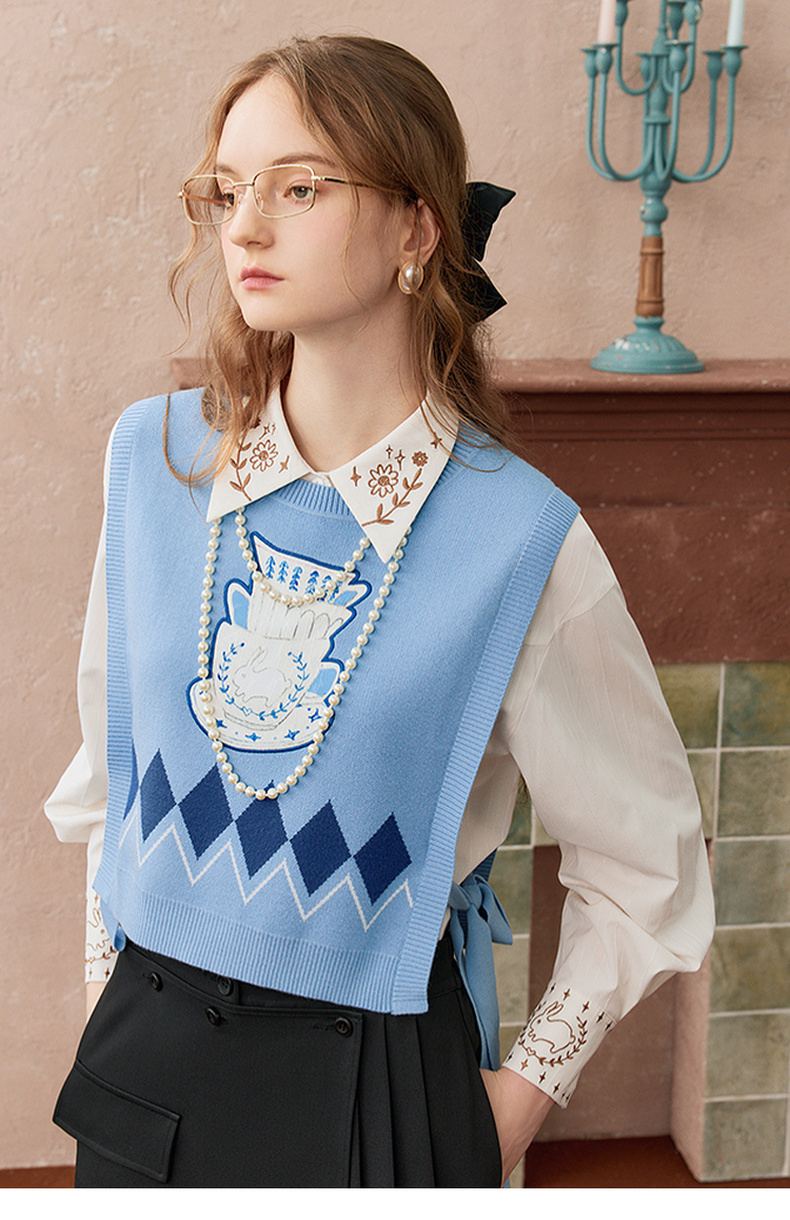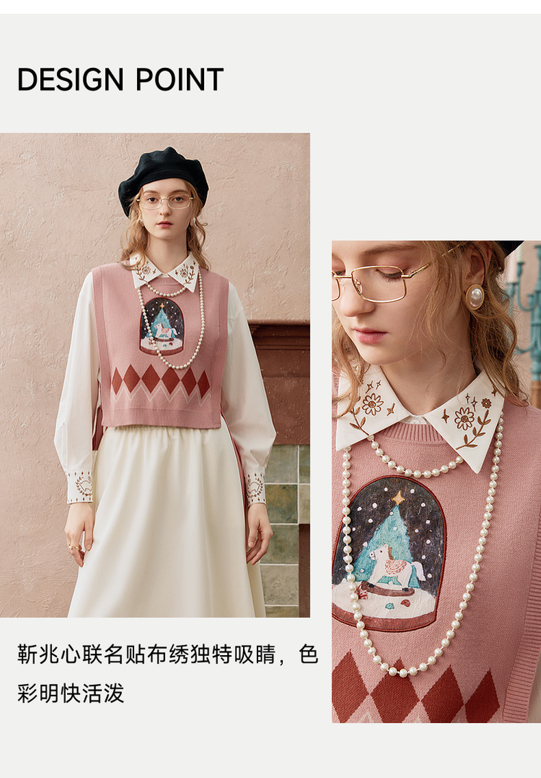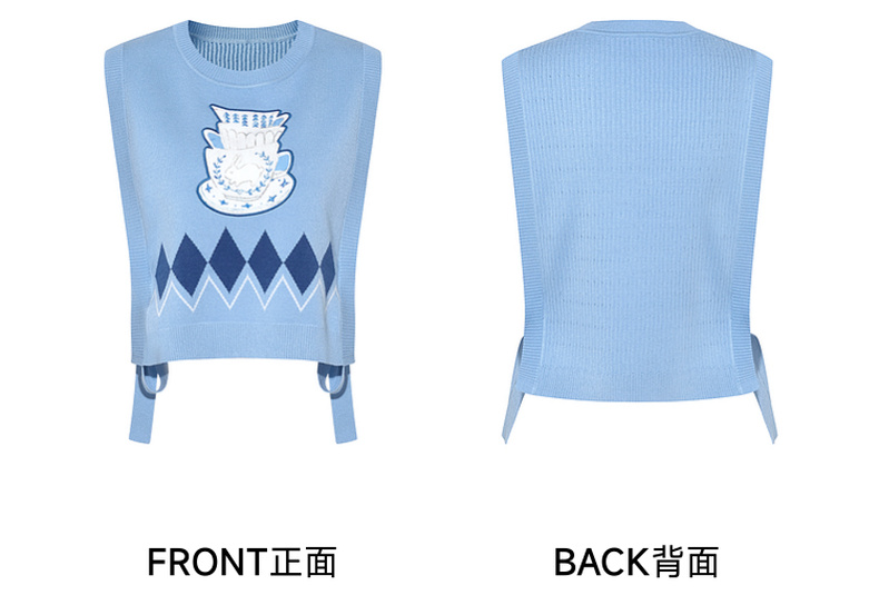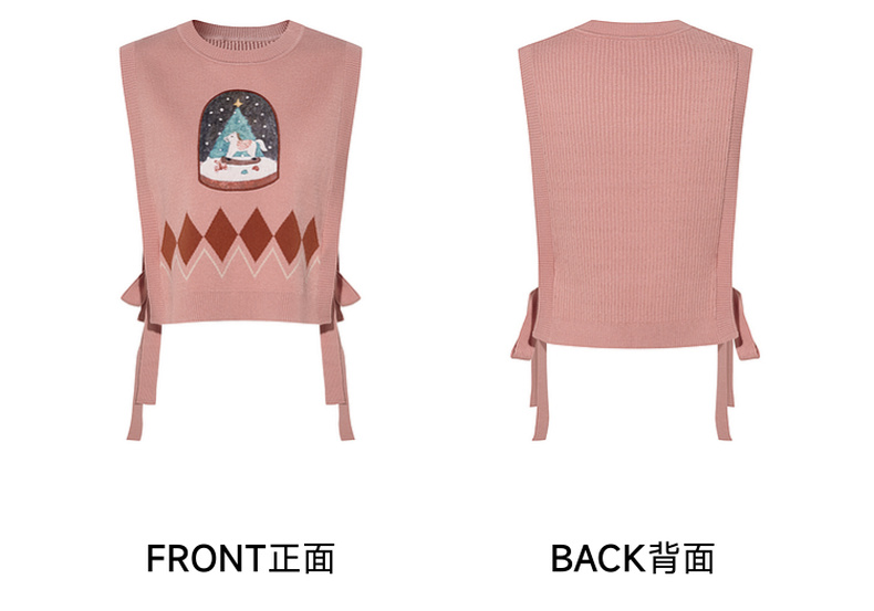两三事 摇梦糖霜 2025秋季新款复古贴布绣绑带短款无袖针织衫女